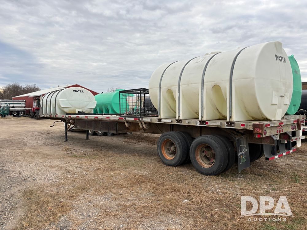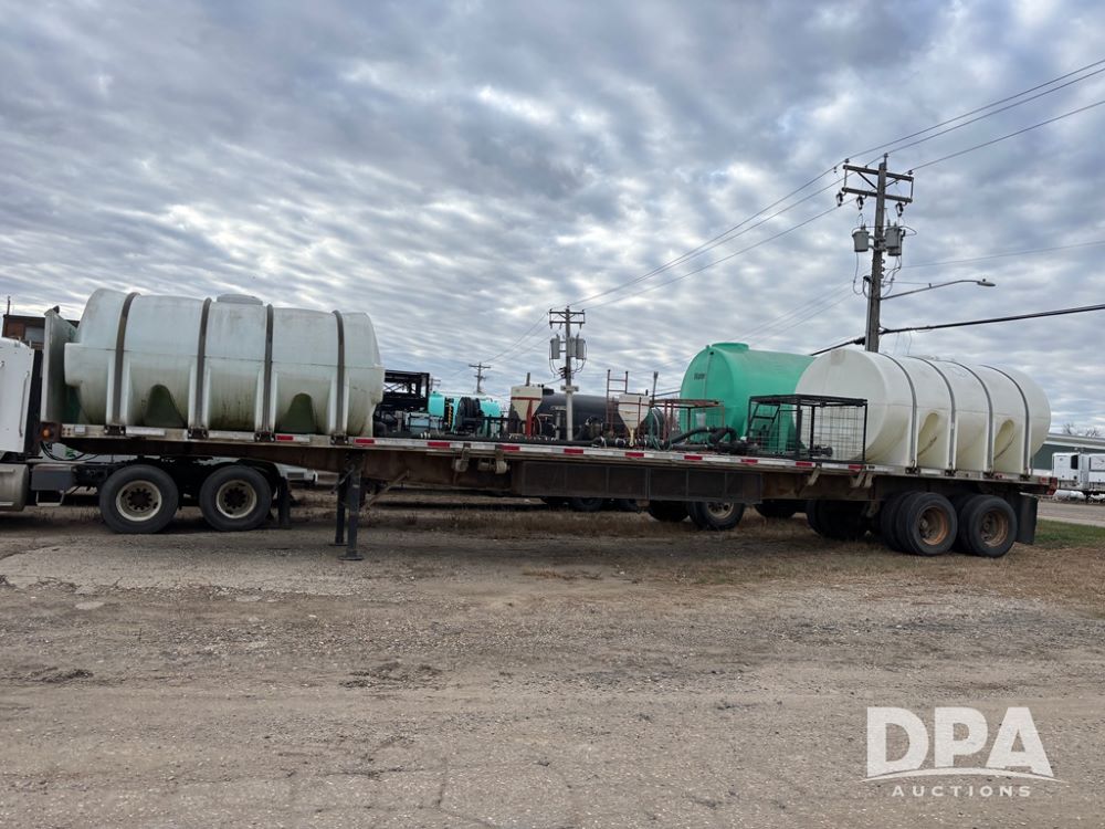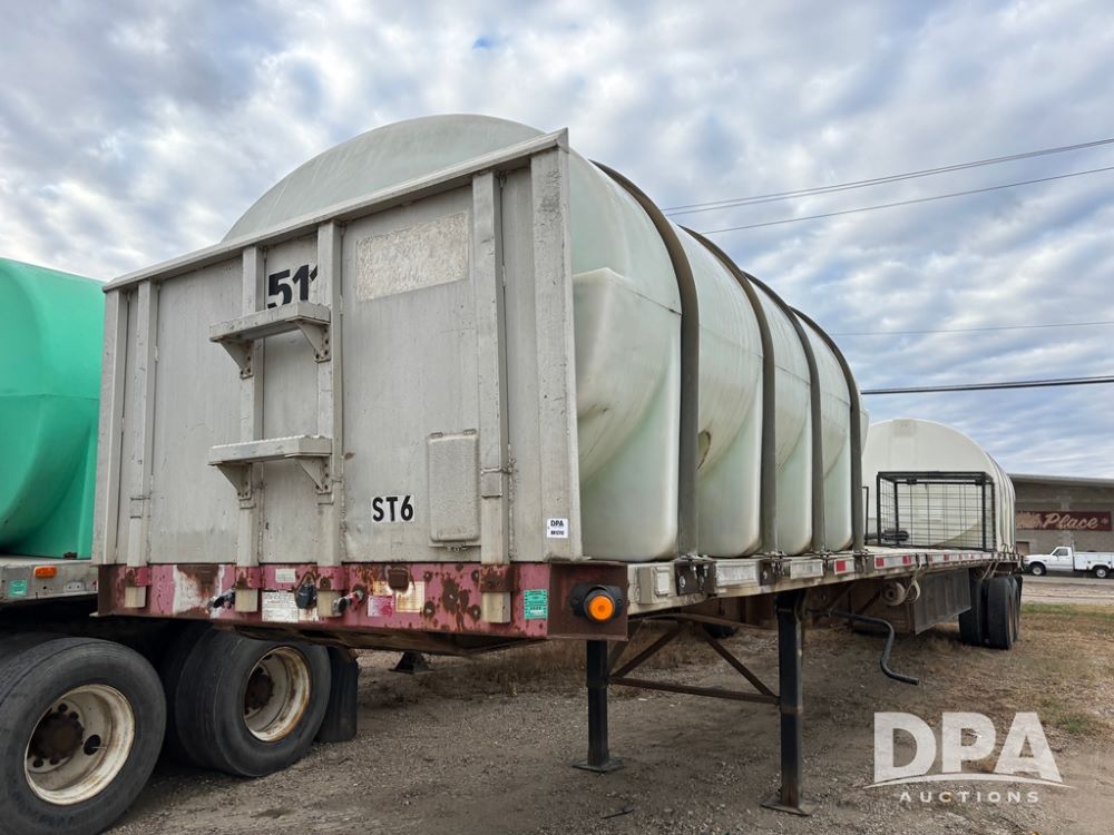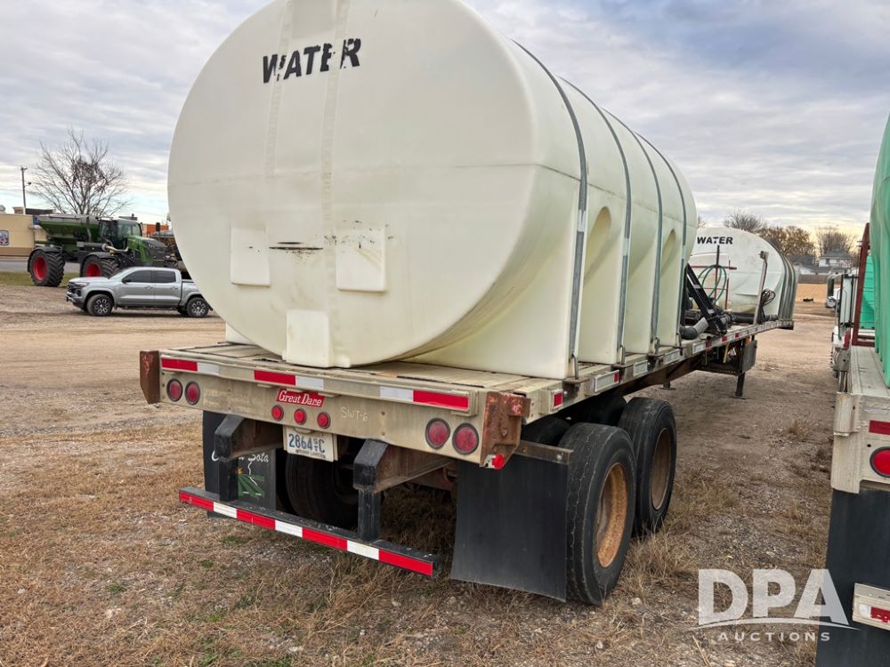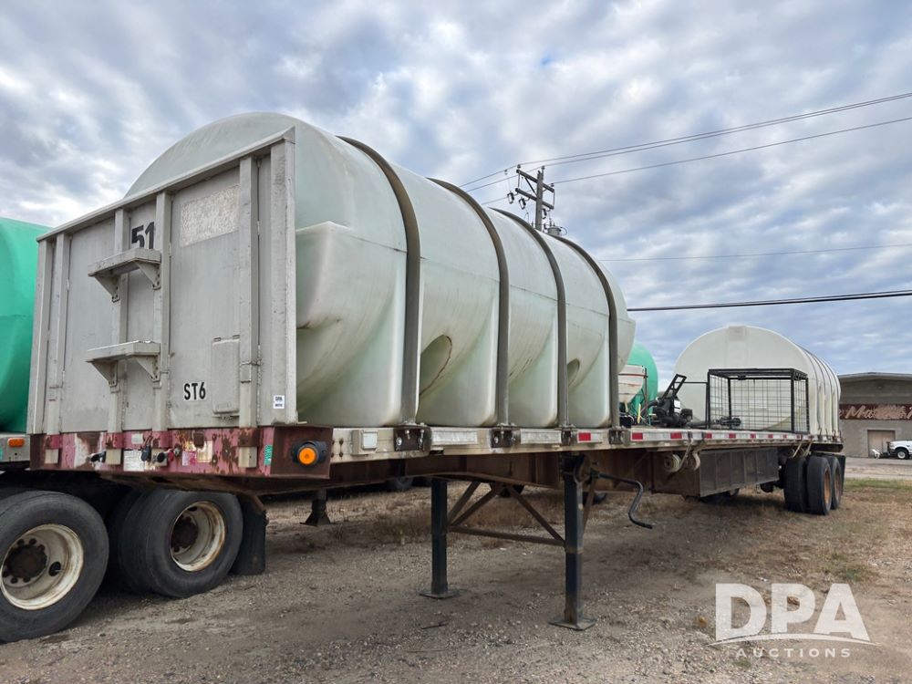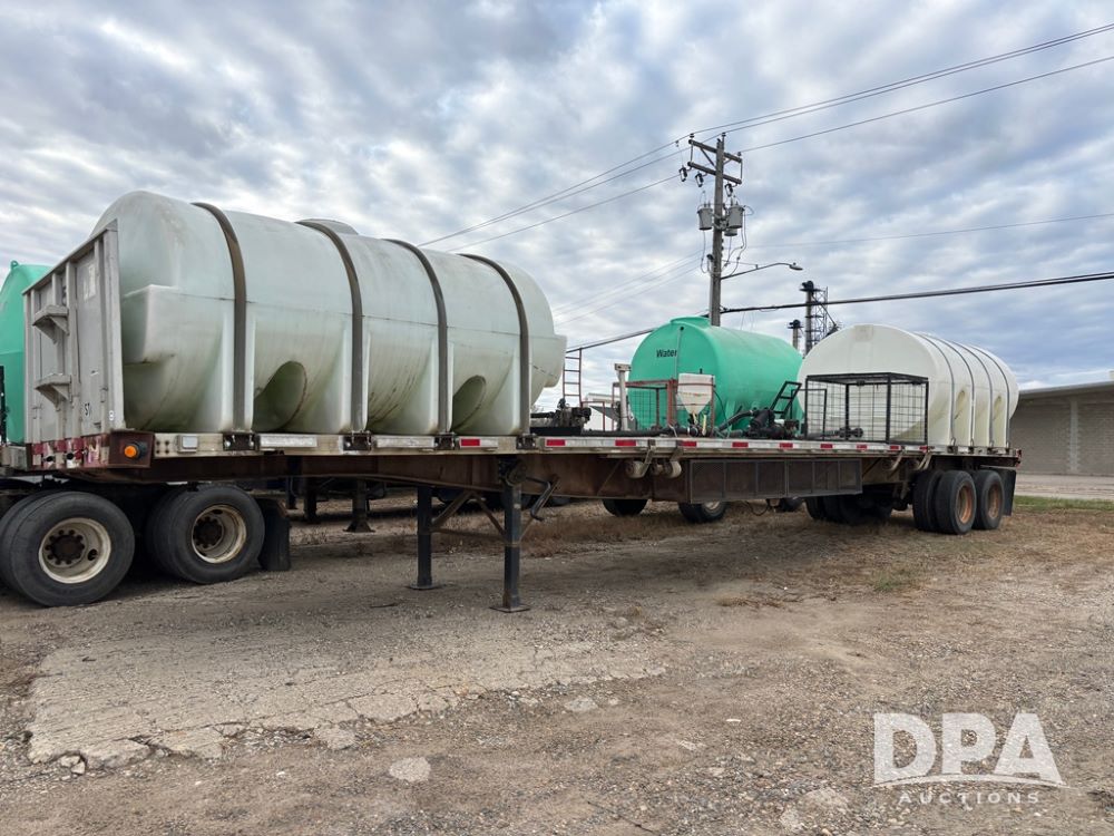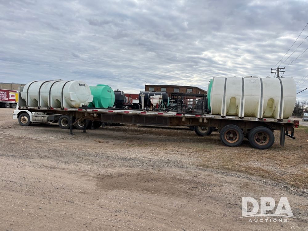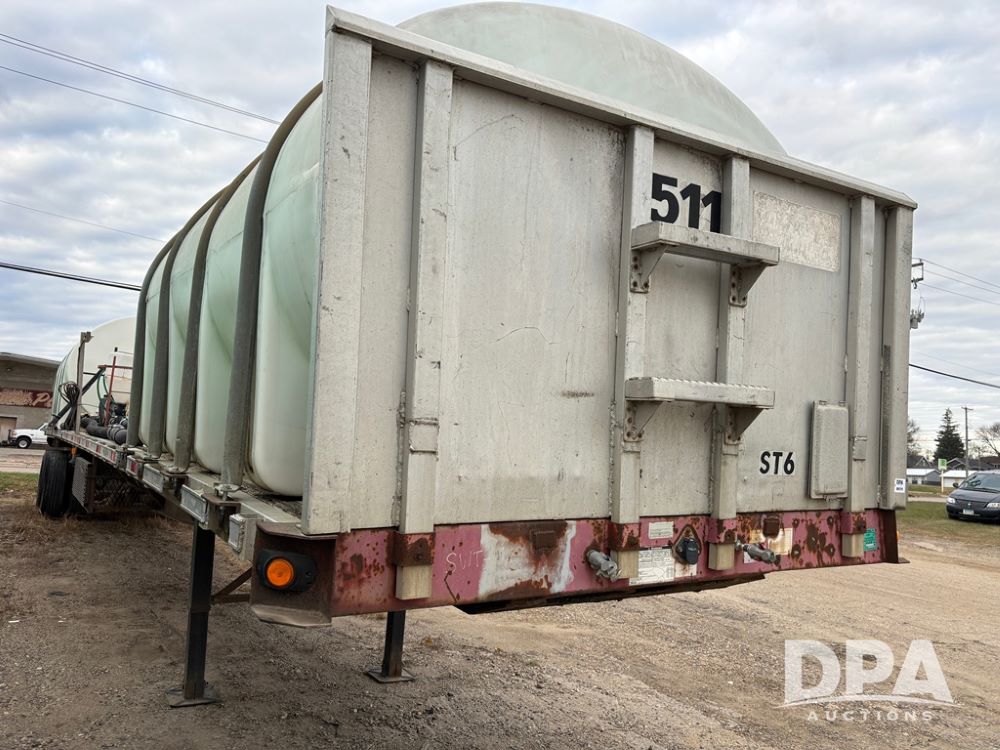 1994 Great Dane Liquid Trailer (DR12712 Unit ST6), 48' flatbed trailer, dual 3200 gallon crown poly liquid tanks, 3'' outlets, Honda gas engine and liquid pump, mounted tie down winch boxes, tandem axle, spring suspension, 22.5 tires on Dayton wheels.