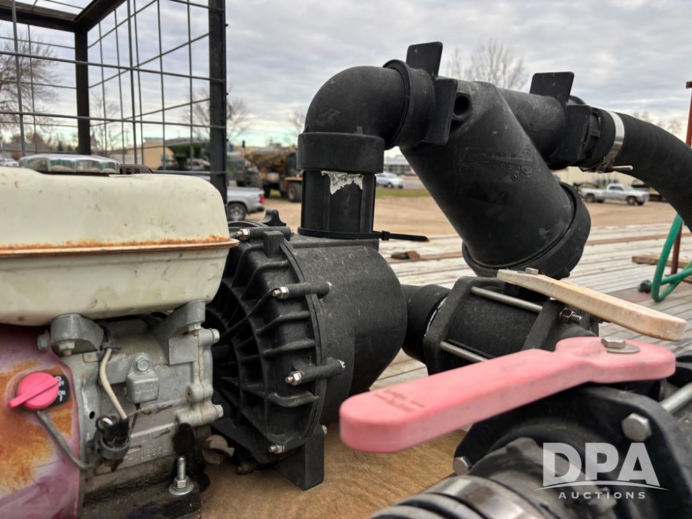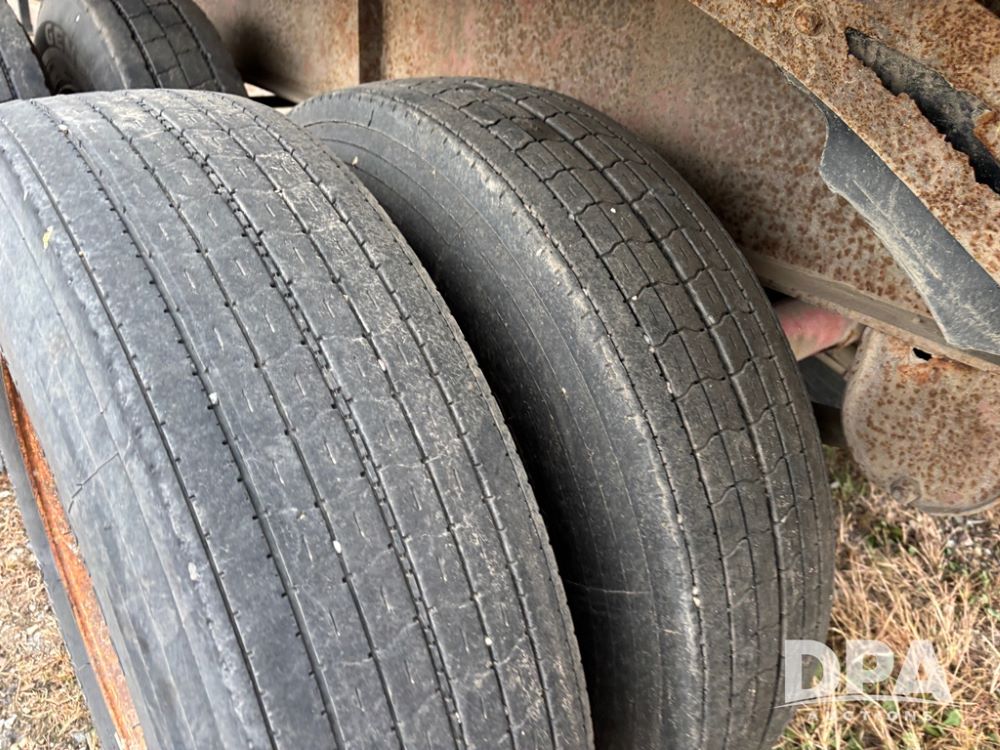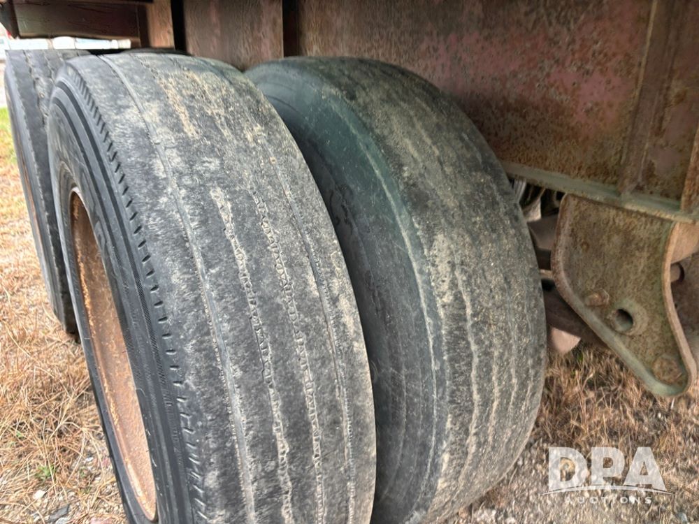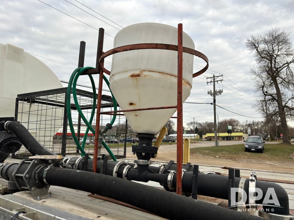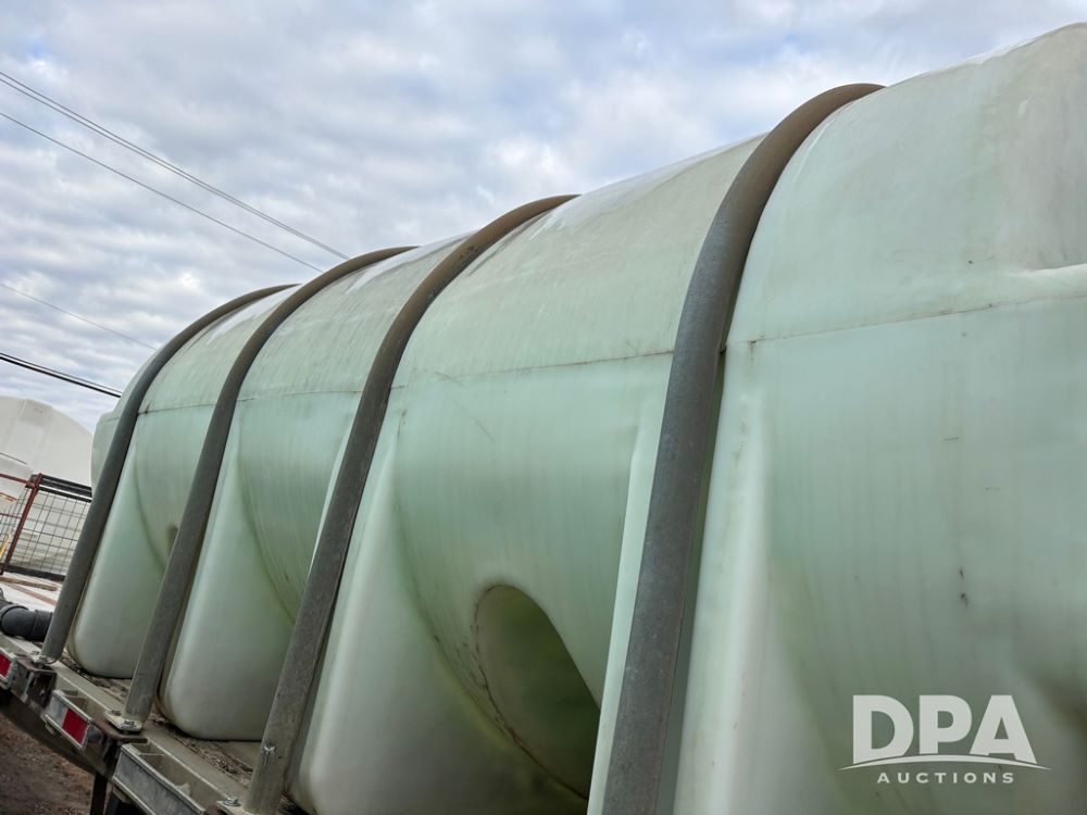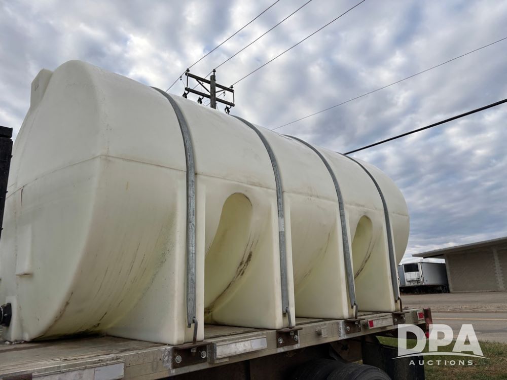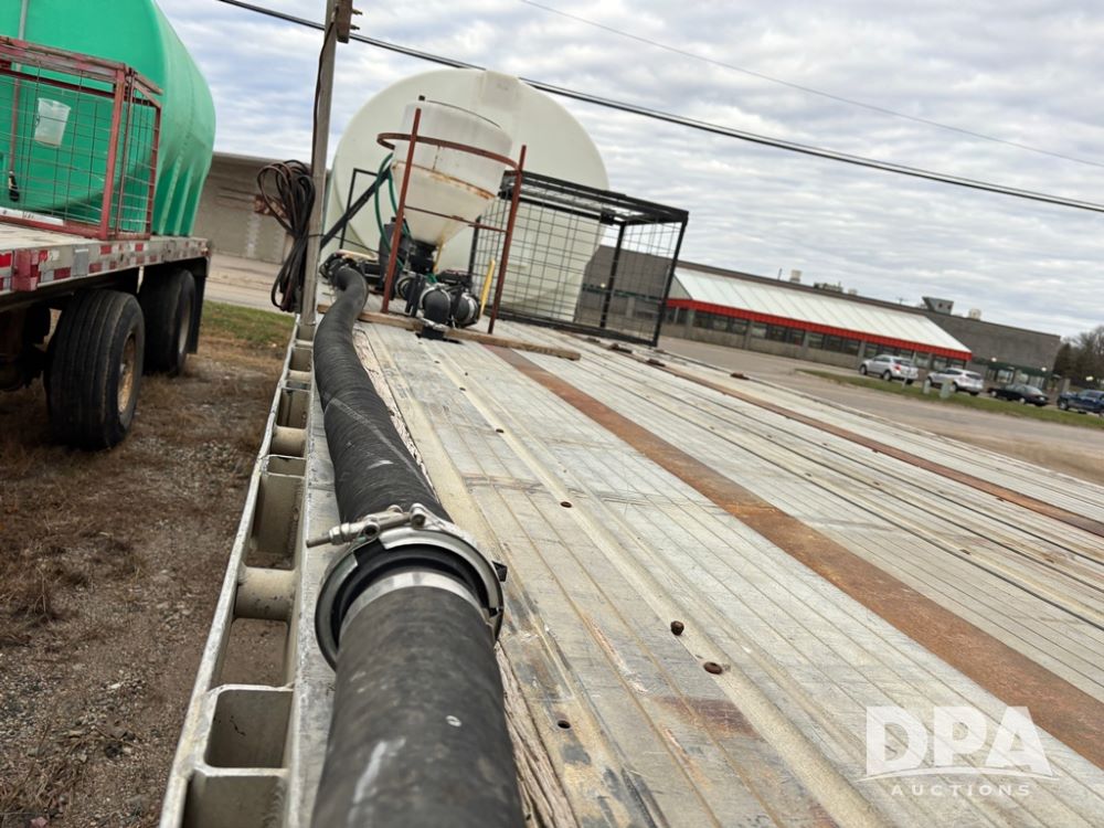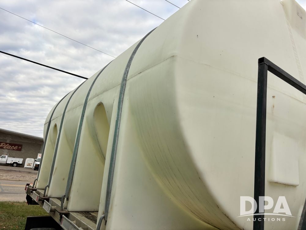 1994 Great Dane Liquid Trailer (DR12712 Unit ST6), 48' flatbed trailer, dual 3200 gallon crown poly liquid tanks, 3'' outlets, Honda gas engine and liquid pump, mounted tie down winch boxes, tandem axle, spring suspension, 22.5 tires on Dayton wheels.