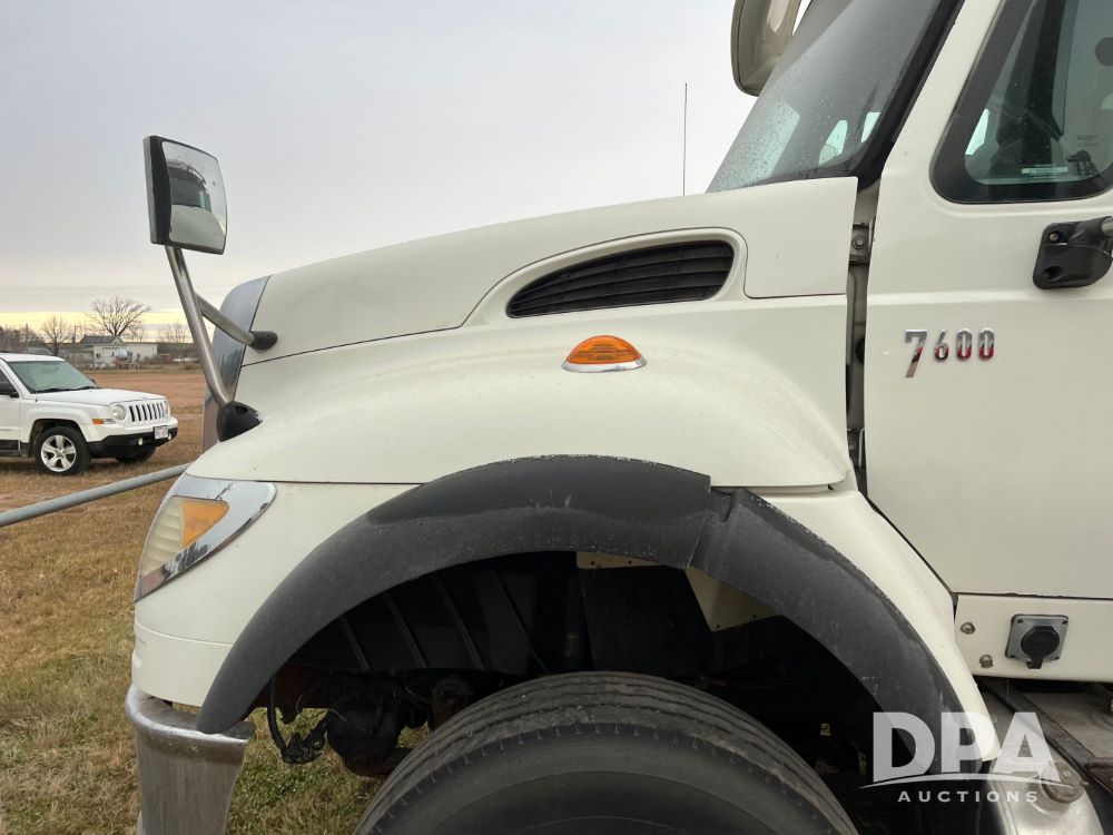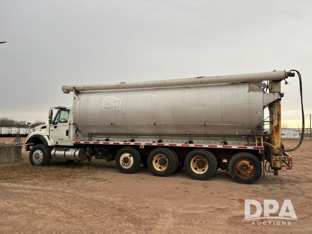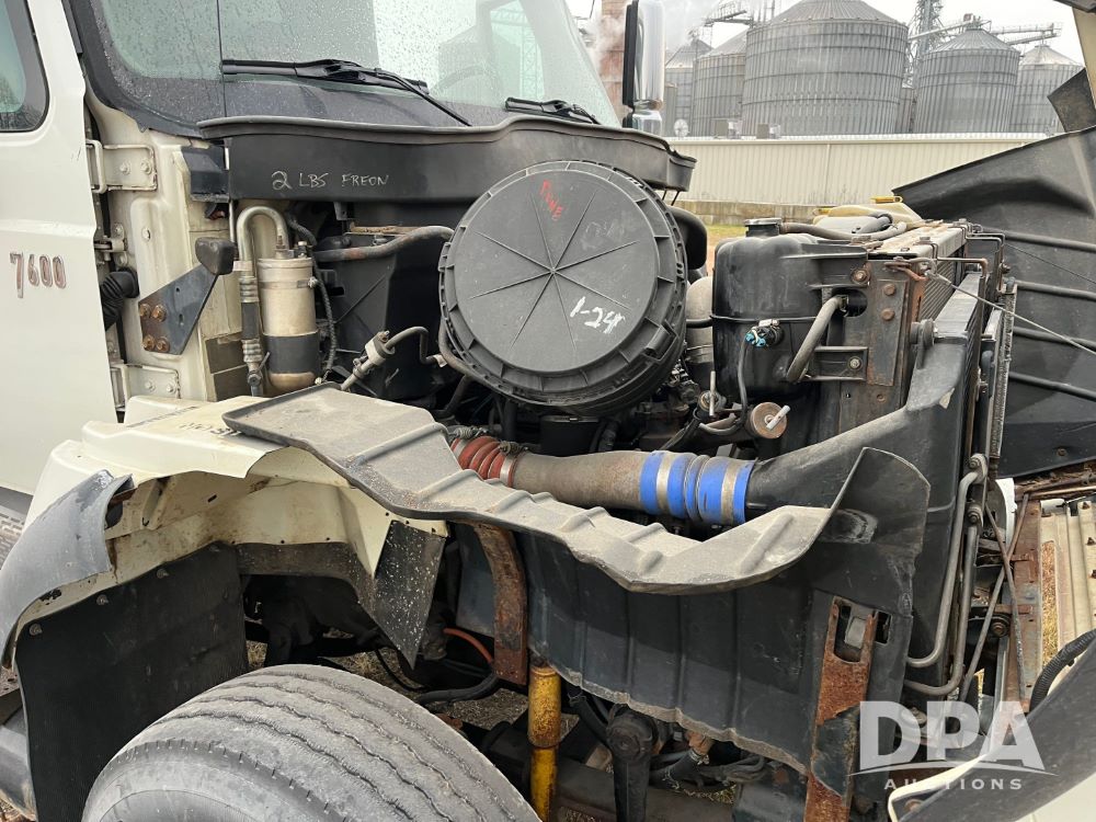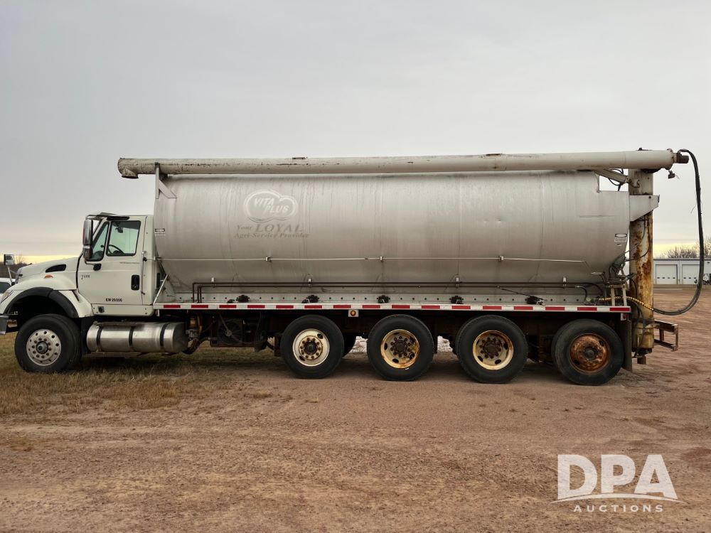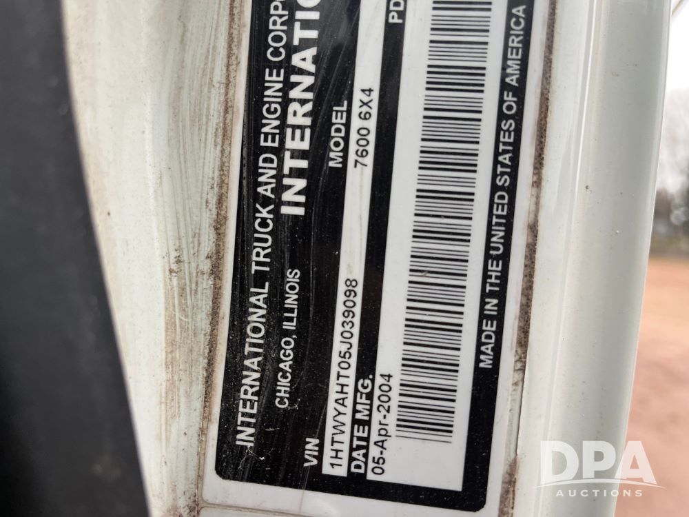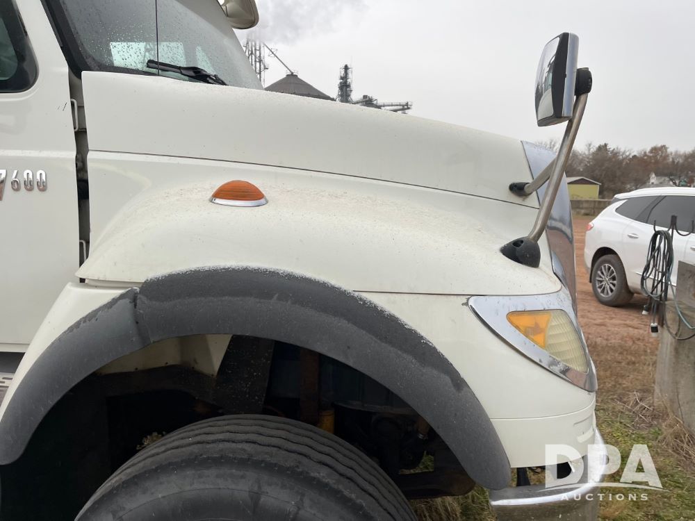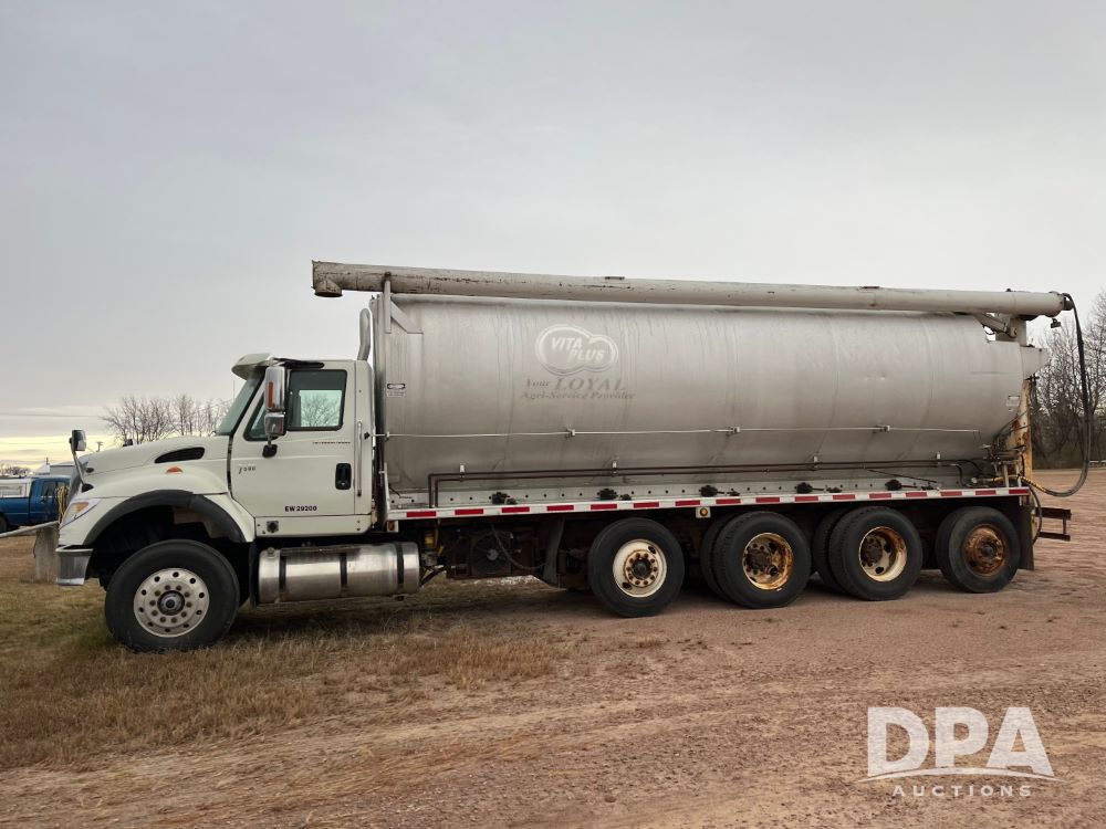 2005 International 7600 Feed Truck (JN3425, Unit 4003), diesel engine, Eaton Fuller manual transmission, heat, Am/Fm radio, tandem axle, air ride suspension, tag axle and pusher axle, feed body, 5 compartment, overhead auger, hydraulic, single fuel tank, single exhaust, engine heater, 315/80R22.5 front tires, 11R22.5 tandem tires.