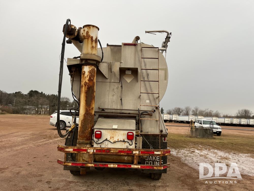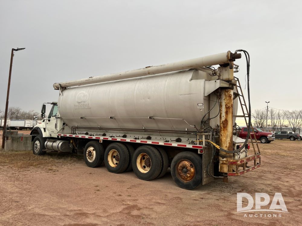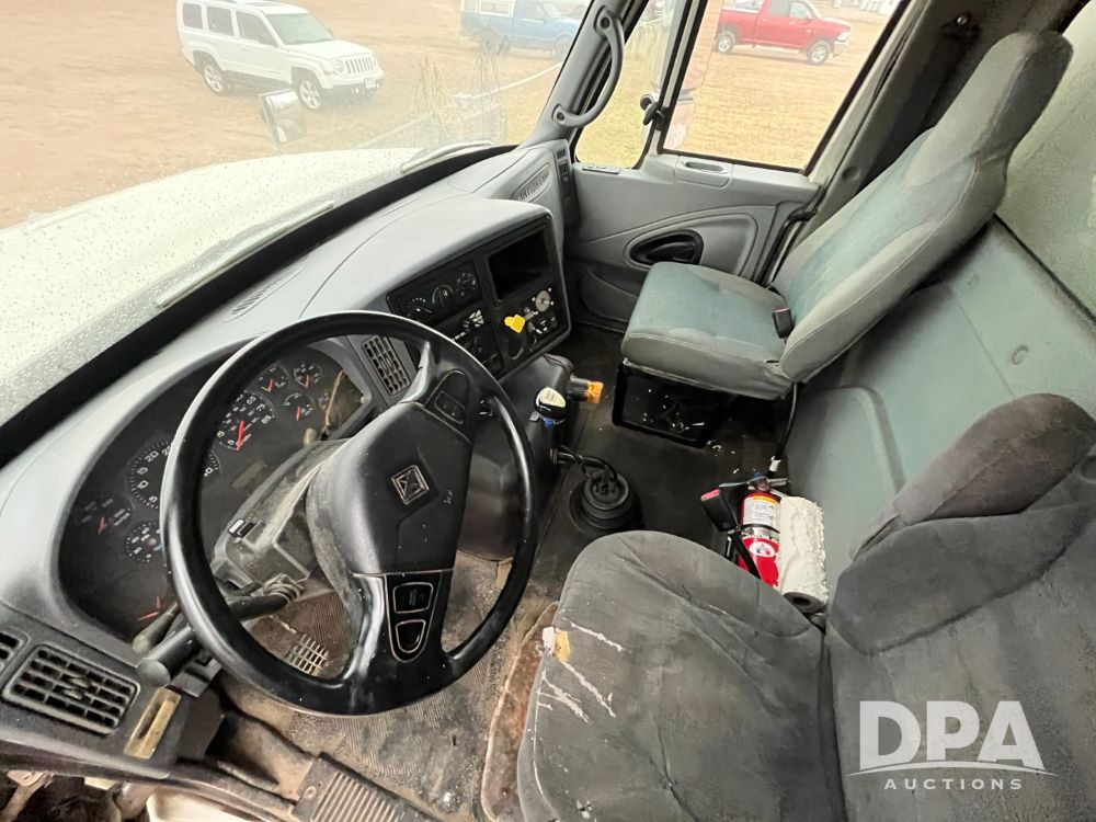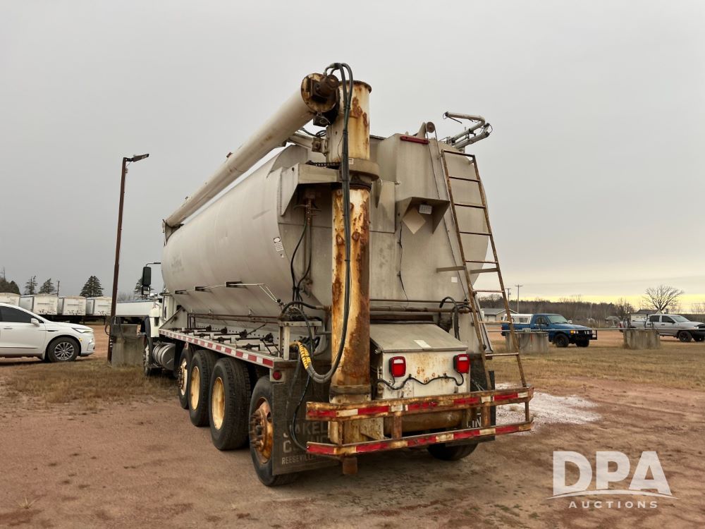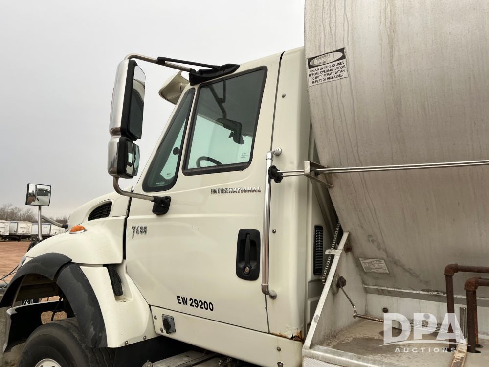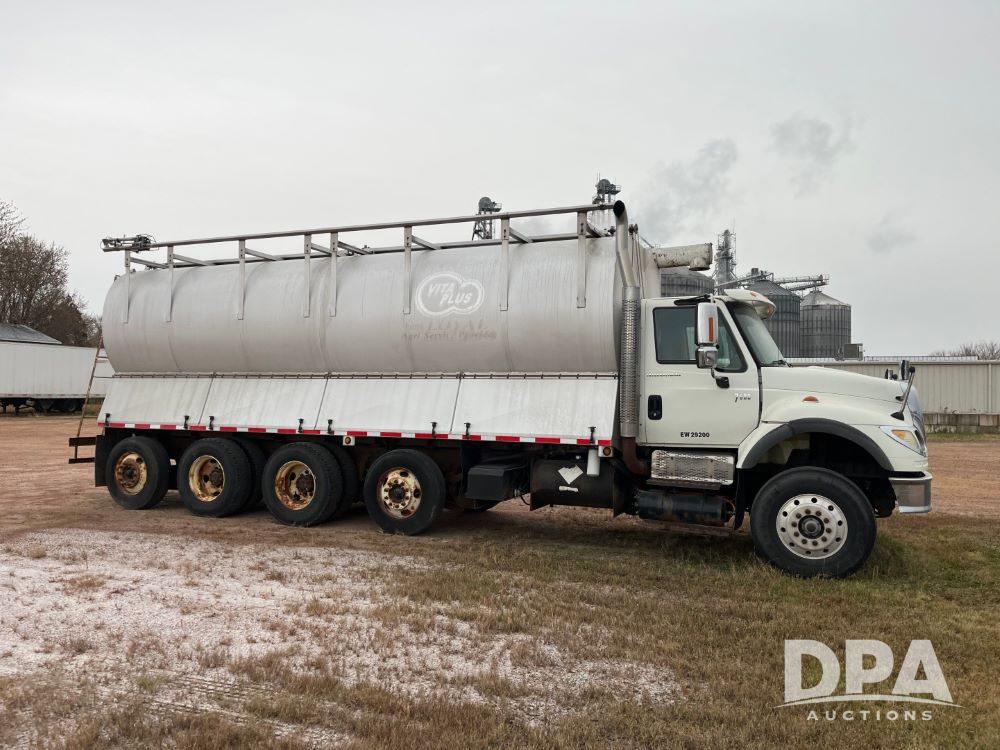 2005 International 7600 Feed Truck (JN3425, Unit 4003), diesel engine, Eaton Fuller manual transmission, heat, Am/Fm radio, tandem axle, air ride suspension, tag axle and pusher axle, feed body, 5 compartment, overhead auger, hydraulic, single fuel tank, single exhaust, engine heater, 315/80R22.5 front tires, 11R22.5 tandem tires.