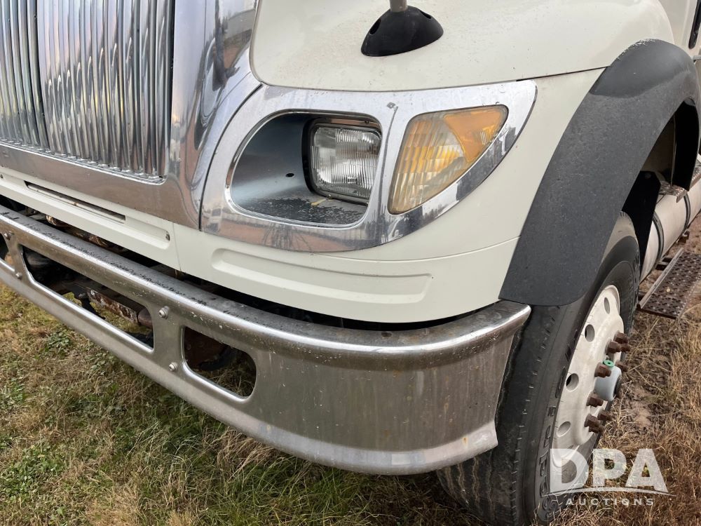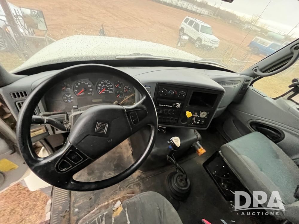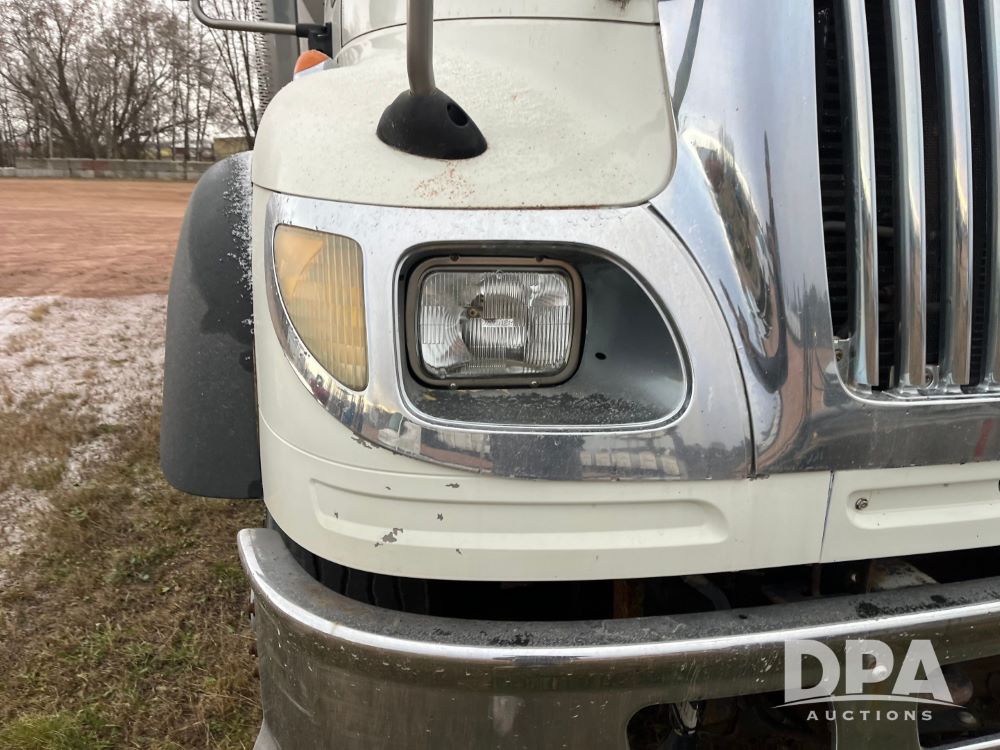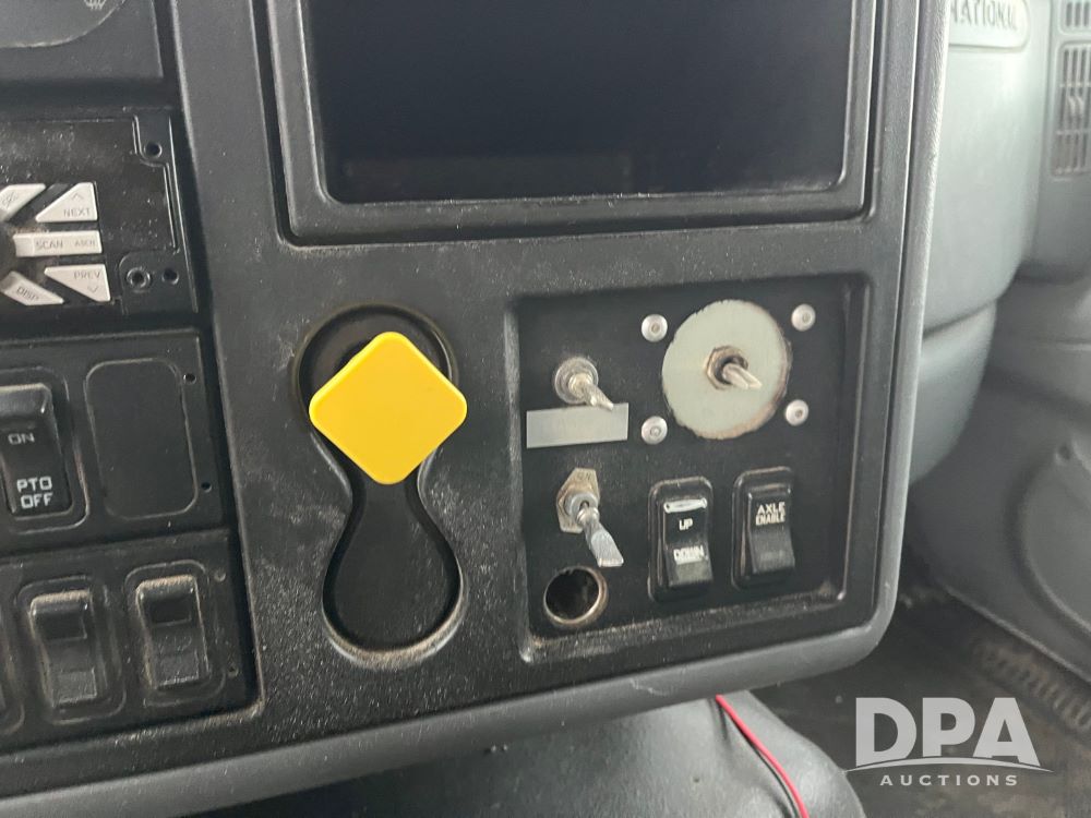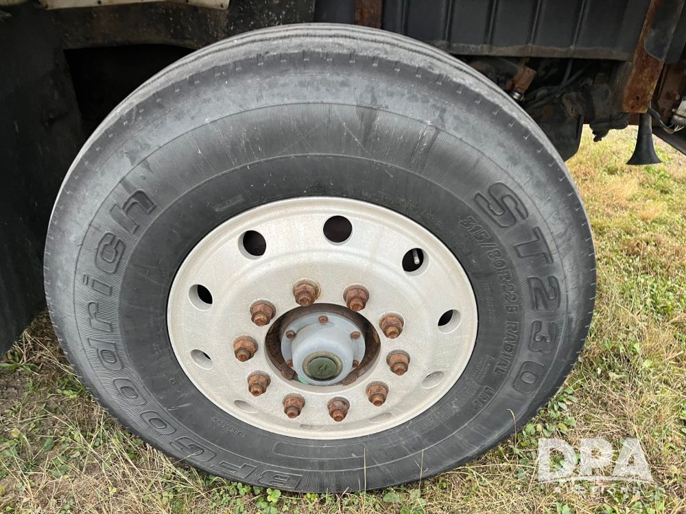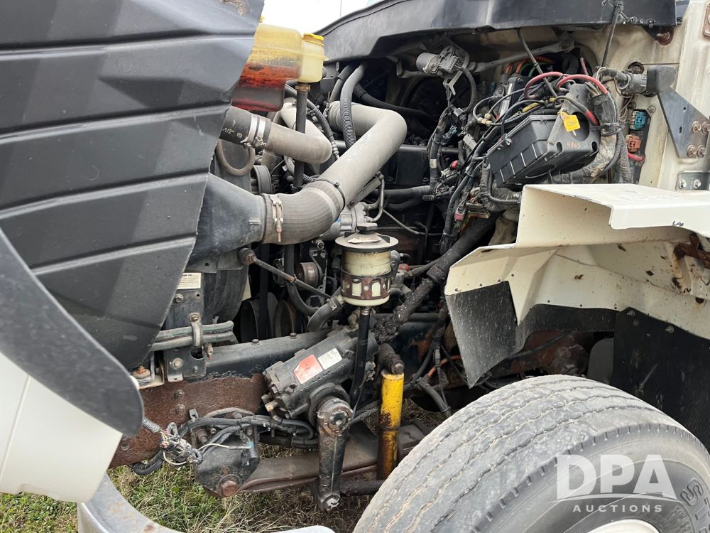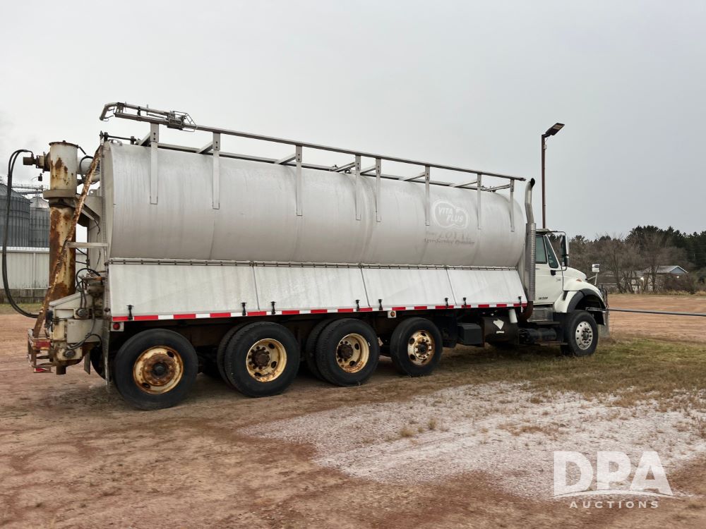2005 International 7600 Feed Truck (JN3425, Unit 4003), diesel engine, Eaton Fuller manual transmission, heat, Am/Fm radio, tandem axle, air ride suspension, tag axle and pusher axle, feed body, 5 compartment, overhead auger, hydraulic, single fuel tank, single exhaust, engine heater, 315/80R22.5 front tires, 11R22.5 tandem tires.