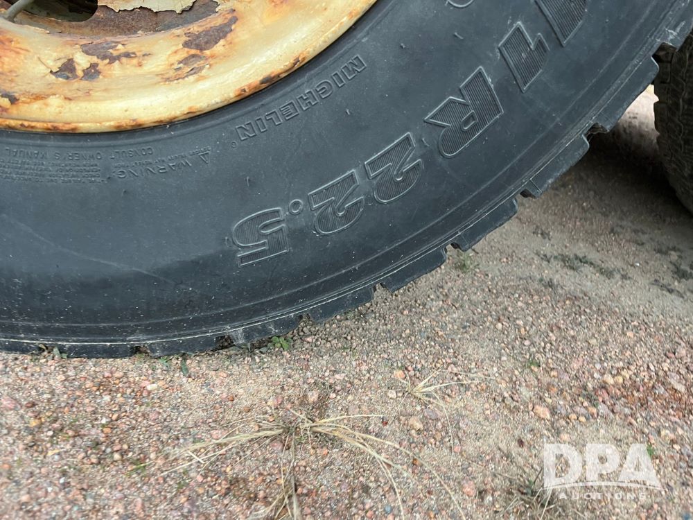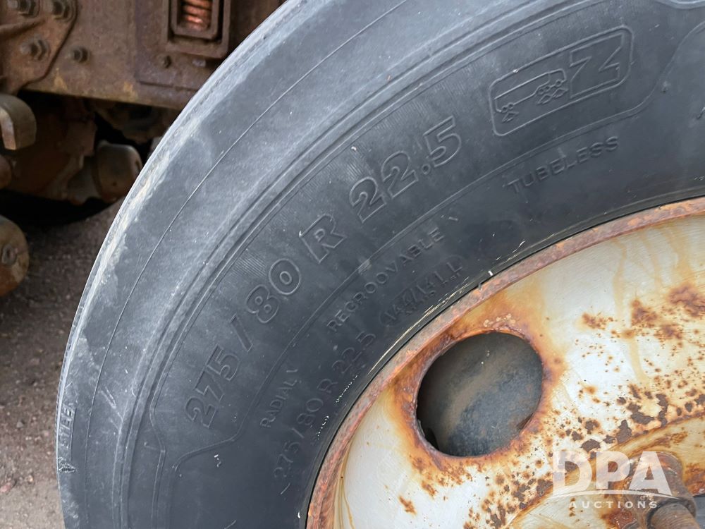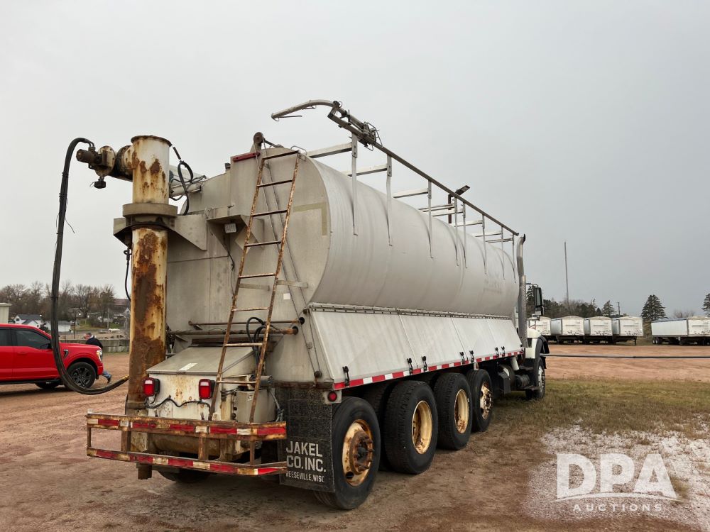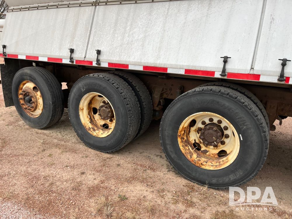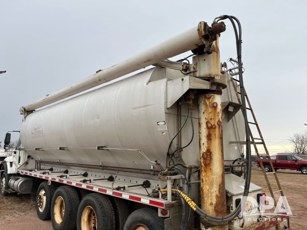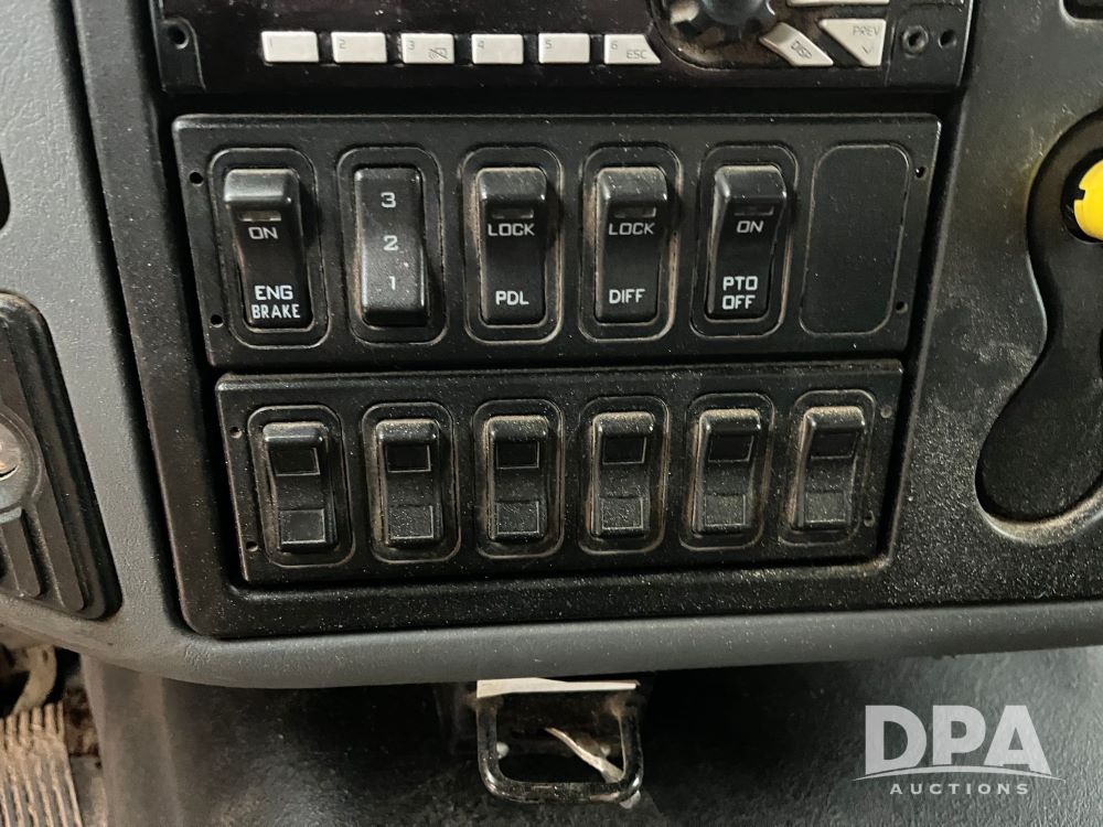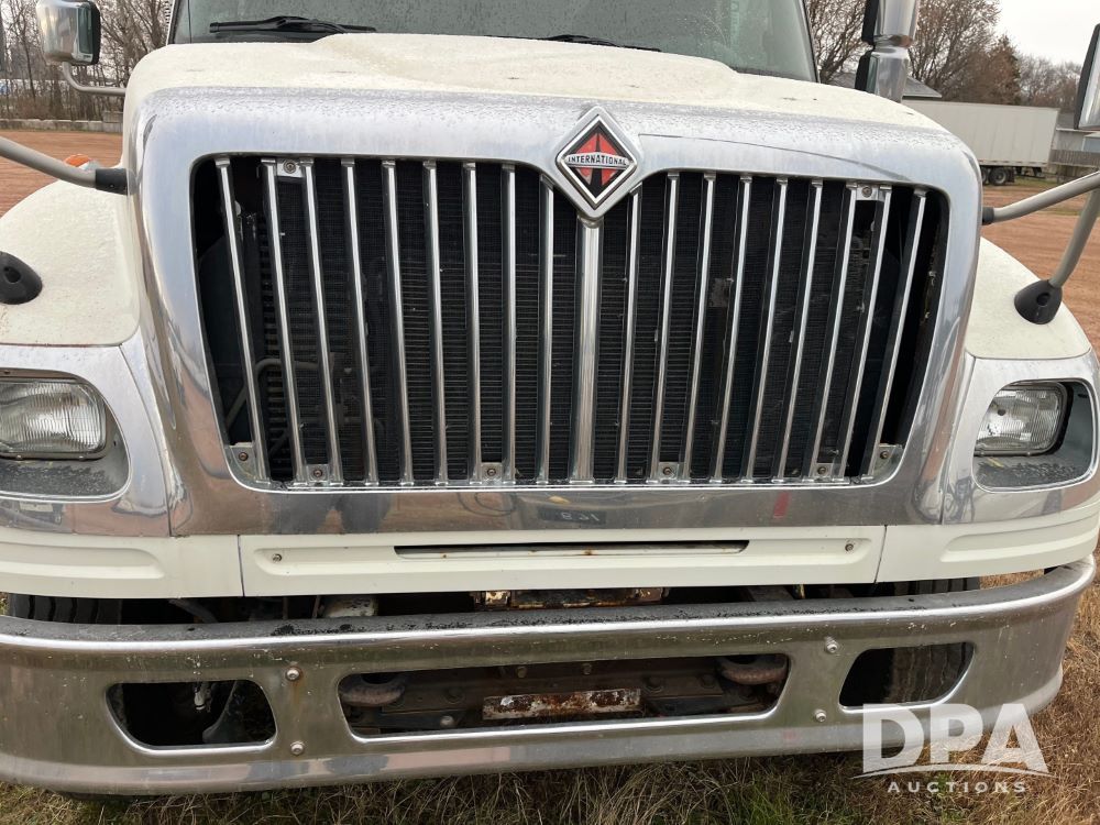 2005 International 7600 Feed Truck (JN3425, Unit 4003), diesel engine, Eaton Fuller manual transmission, heat, Am/Fm radio, tandem axle, air ride suspension, tag axle and pusher axle, feed body, 5 compartment, overhead auger, hydraulic, single fuel tank, single exhaust, engine heater, 315/80R22.5 front tires, 11R22.5 tandem tires.