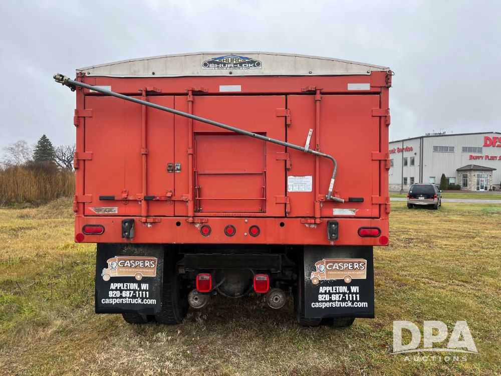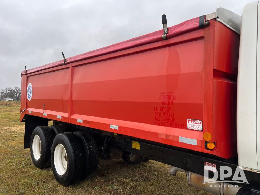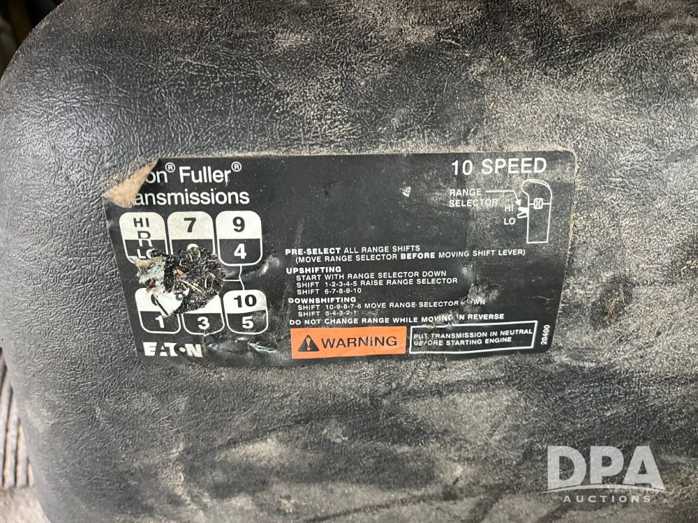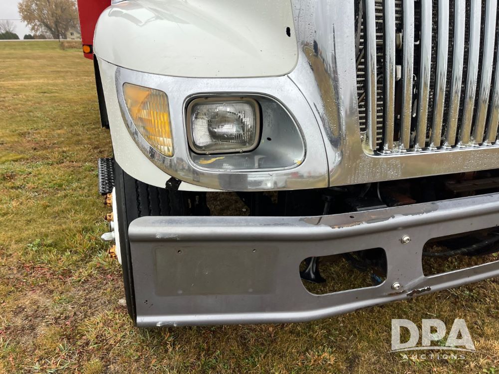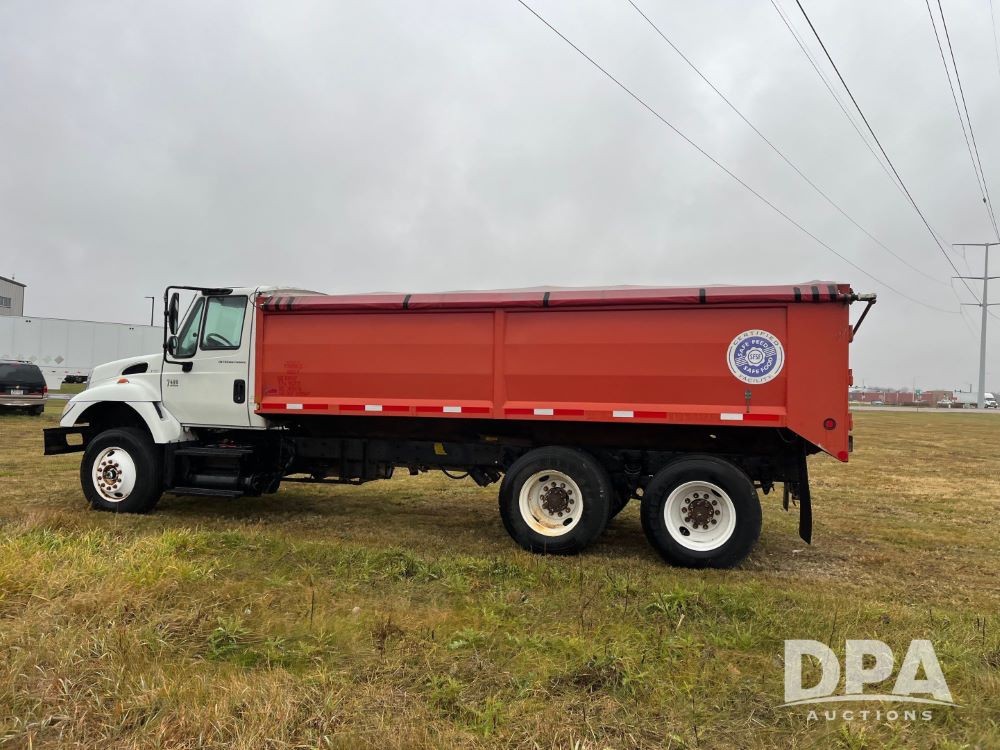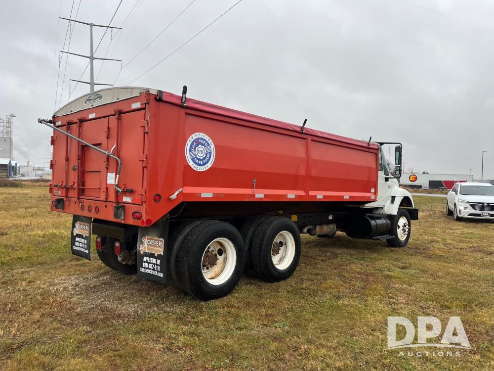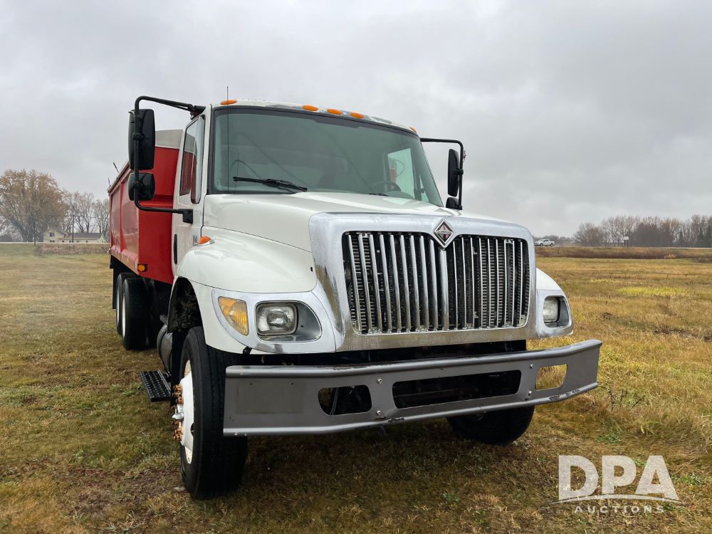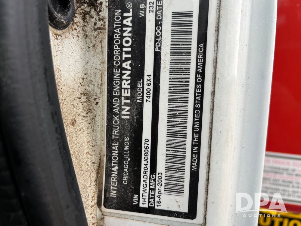 2004 International 7400 Feed Truck (JN3429, Unit 4021), DT530 diesel engine, Eaton Fuller 10 speed transmission, heat, Am/Fm radio, tandem axle, spring suspension, grain body, dual hoist, manual roll tarp, 275/80R22.5 front tires, 295/75R22.5 rear tires, shows 393,290 miles.