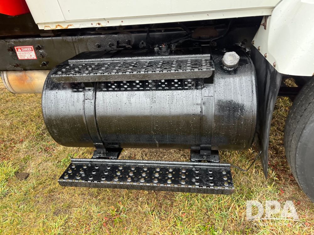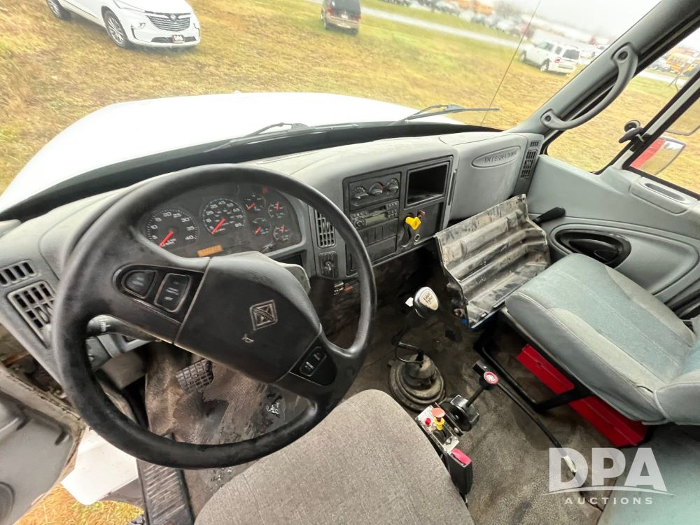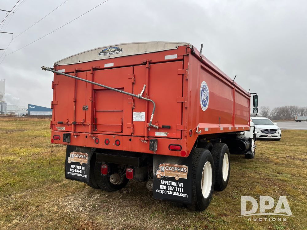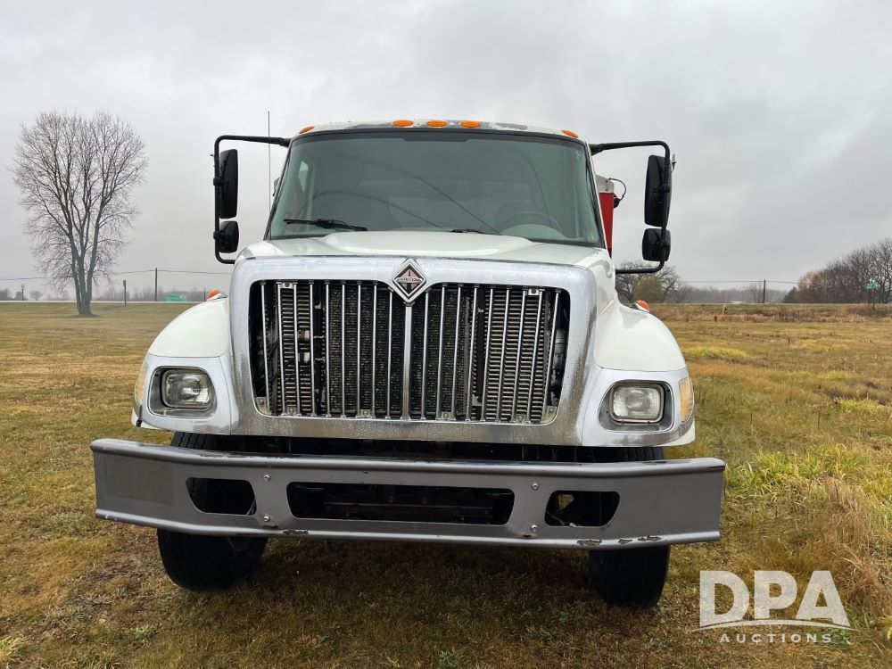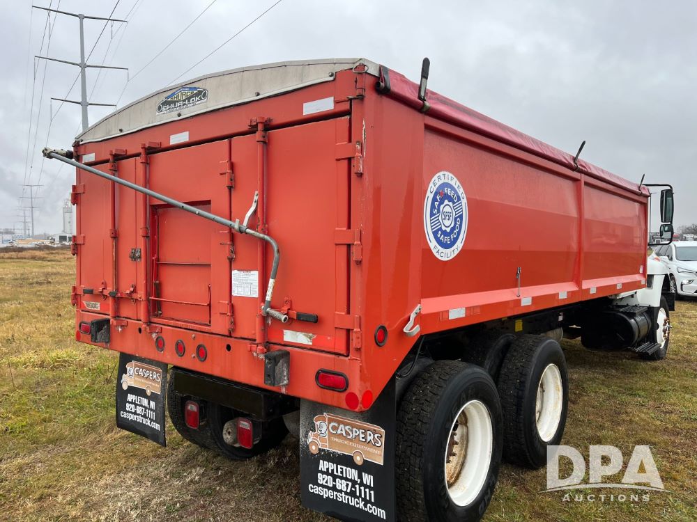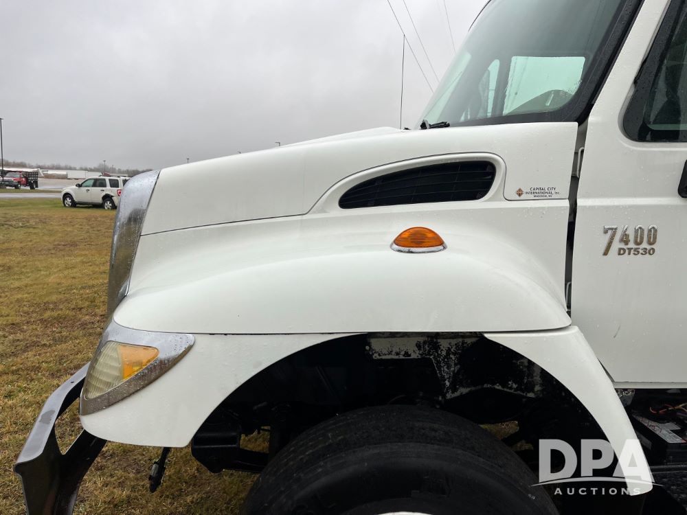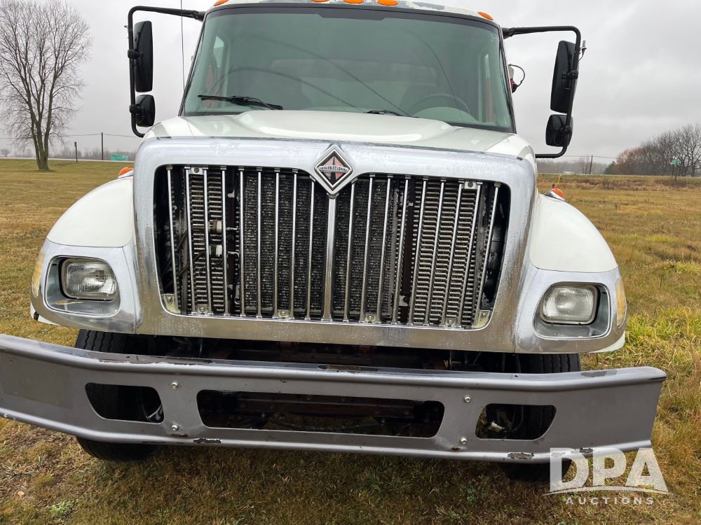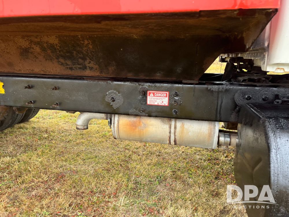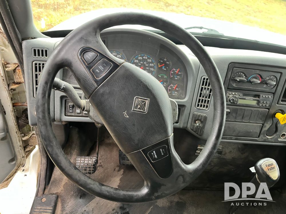 2004 International 7400 Feed Truck (JN3429, Unit 4021), DT530 diesel engine, Eaton Fuller 10 speed transmission, heat, Am/Fm radio, tandem axle, spring suspension, grain body, dual hoist, manual roll tarp, 275/80R22.5 front tires, 295/75R22.5 rear tires, shows 393,290 miles.