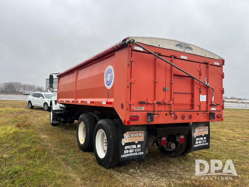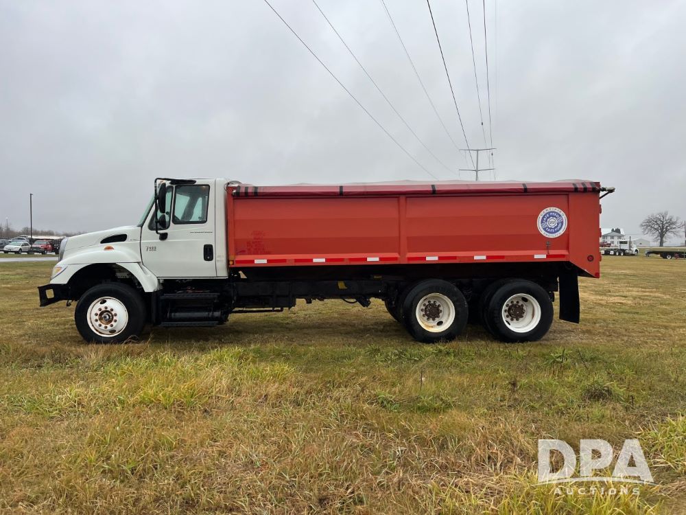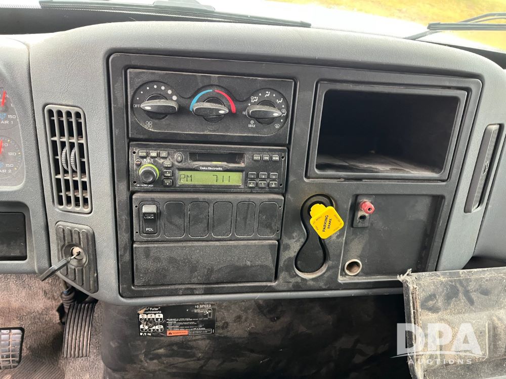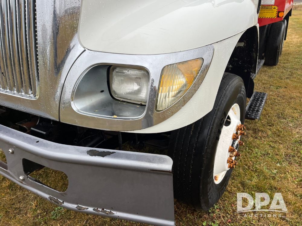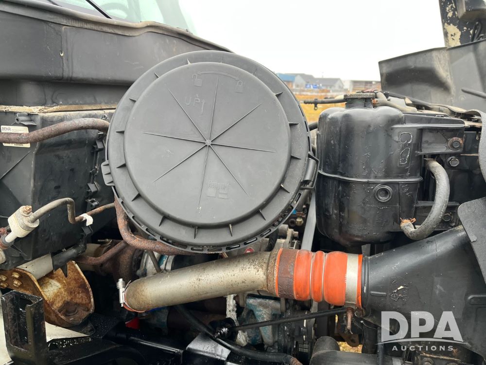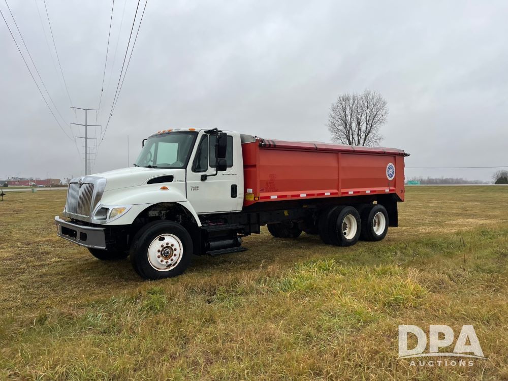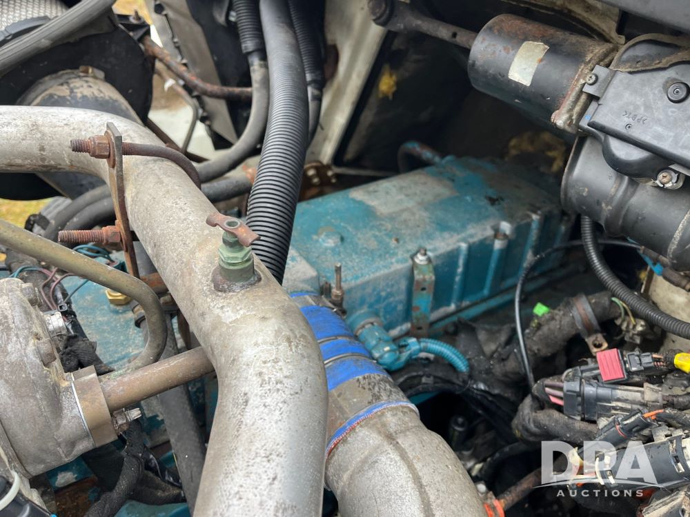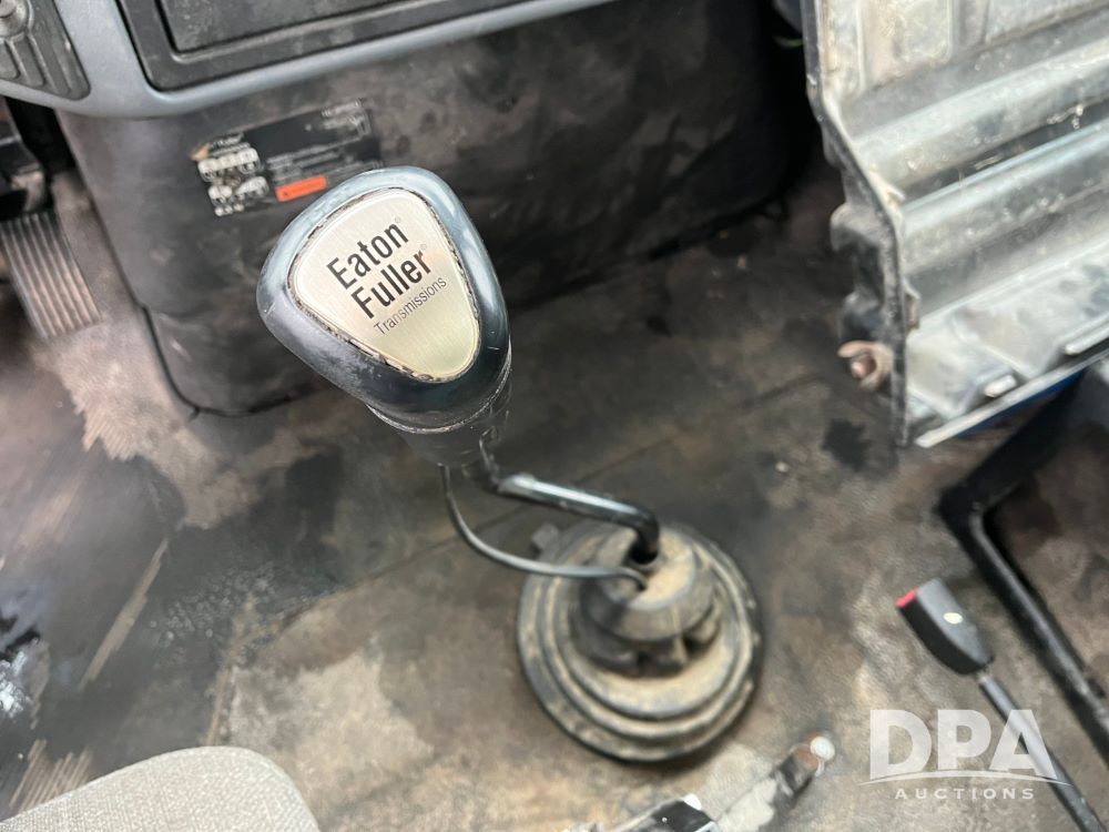 2004 International 7400 Feed Truck (JN3429, Unit 4021), DT530 diesel engine, Eaton Fuller 10 speed transmission, heat, Am/Fm radio, tandem axle, spring suspension, grain body, dual hoist, manual roll tarp, 275/80R22.5 front tires, 295/75R22.5 rear tires, shows 393,290 miles.