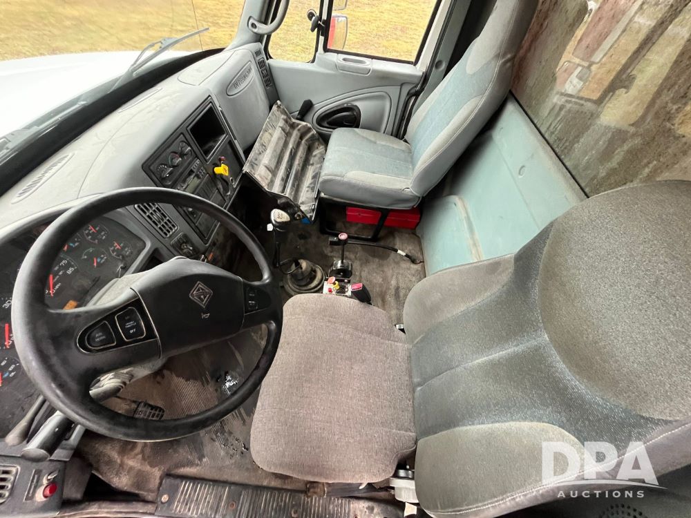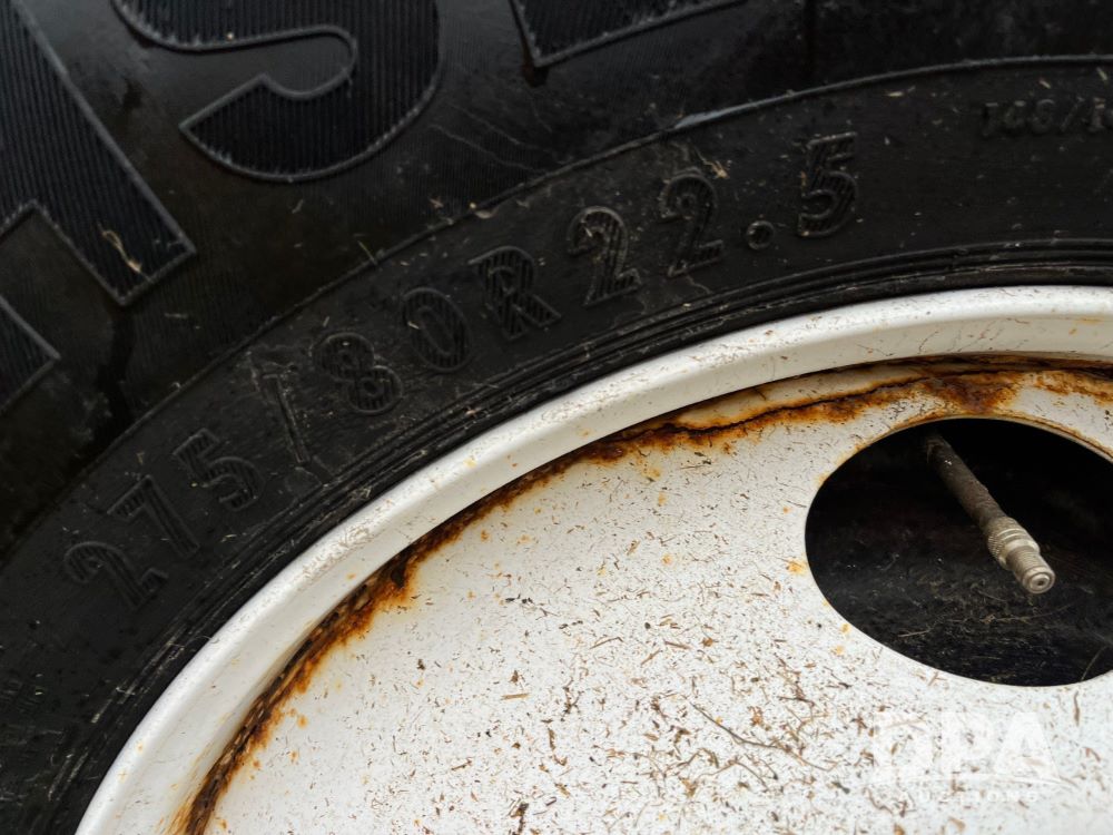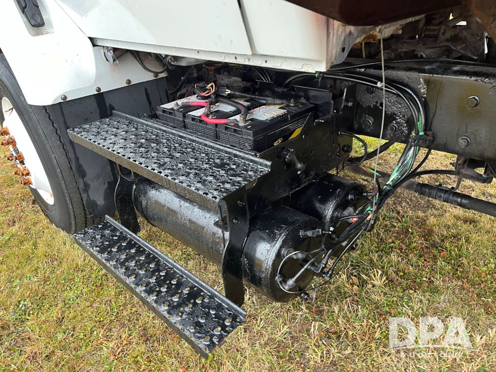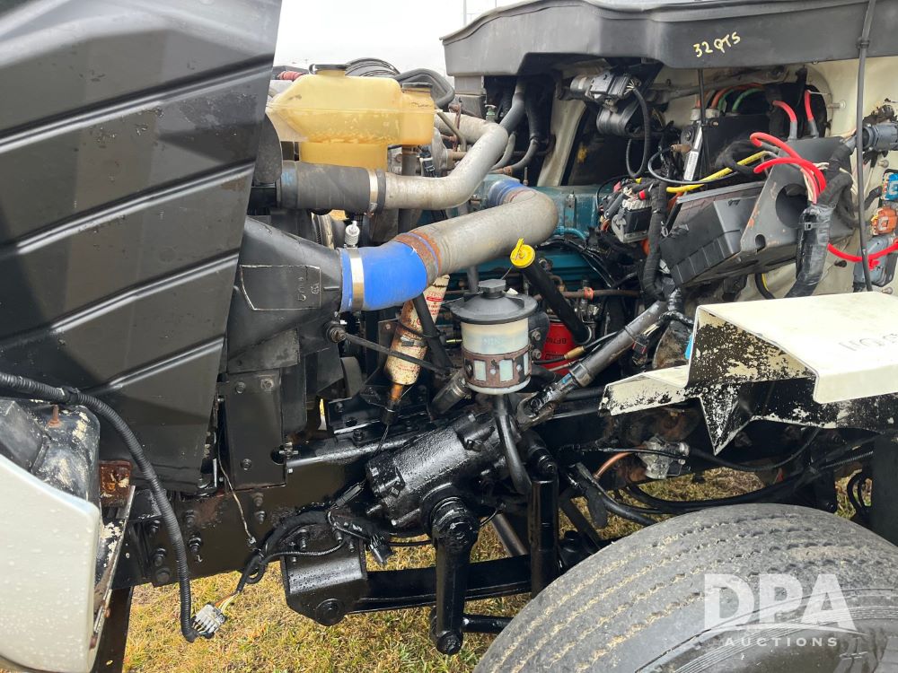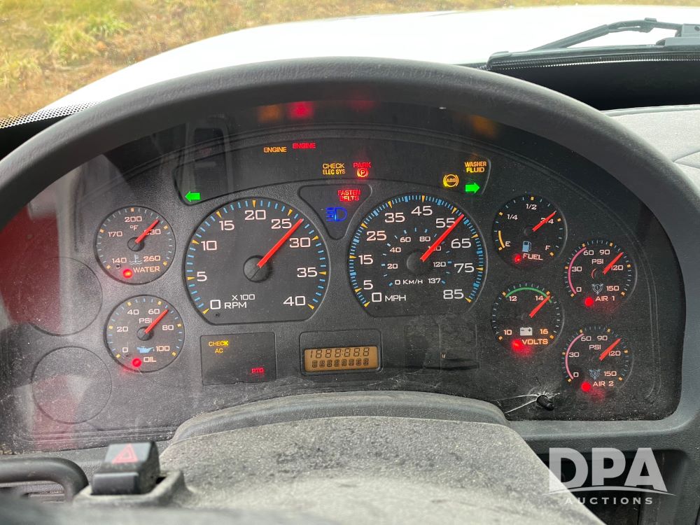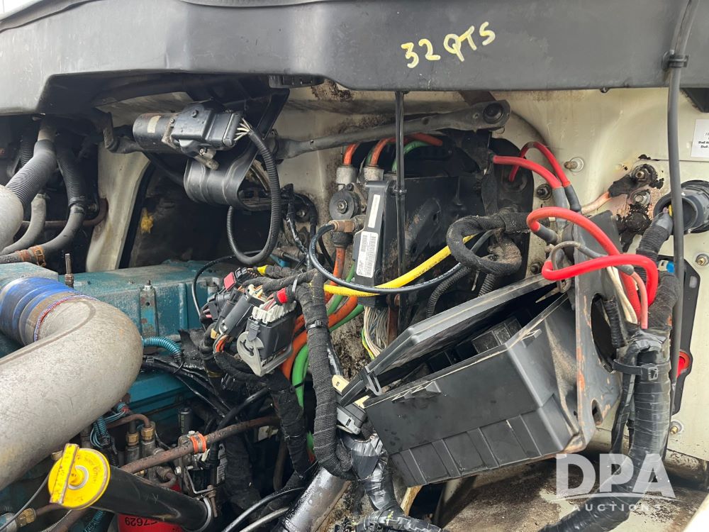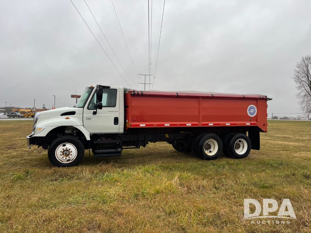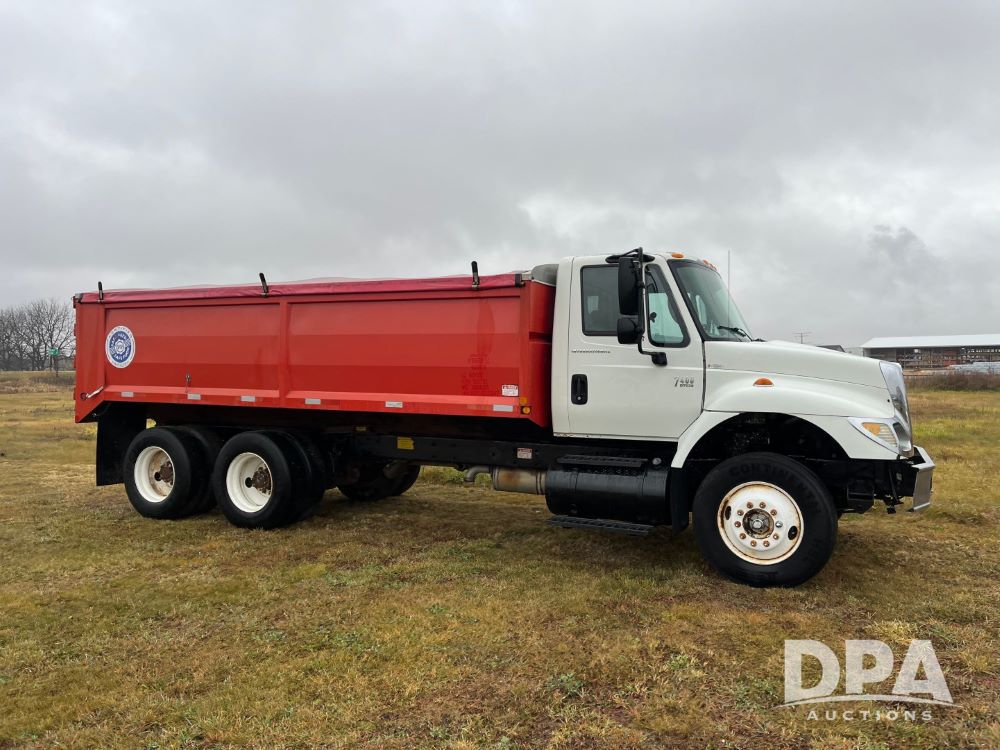 2004 International 7400 Feed Truck (JN3429, Unit 4021), DT530 diesel engine, Eaton Fuller 10 speed transmission, heat, Am/Fm radio, tandem axle, spring suspension, grain body, dual hoist, manual roll tarp, 275/80R22.5 front tires, 295/75R22.5 rear tires, shows 393,290 miles.