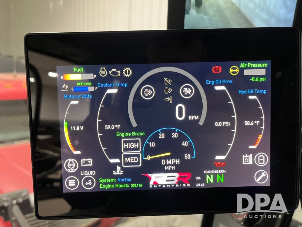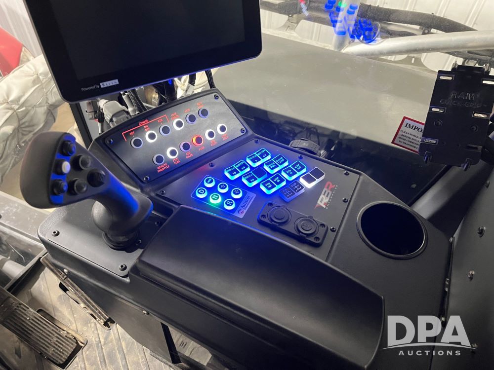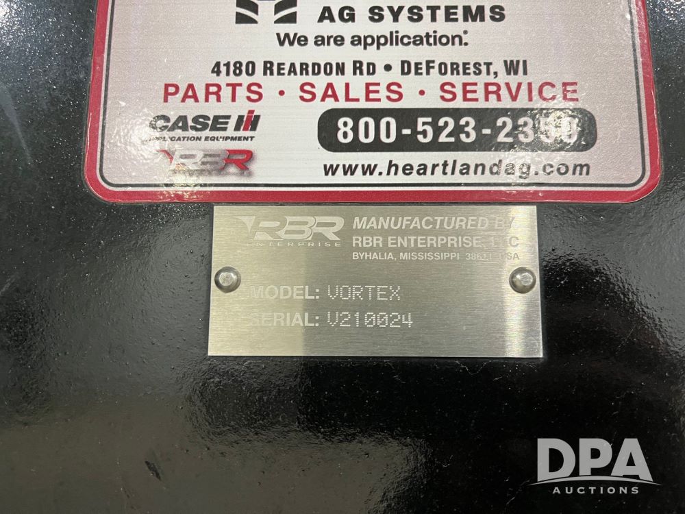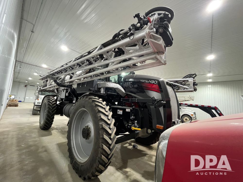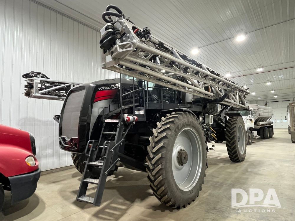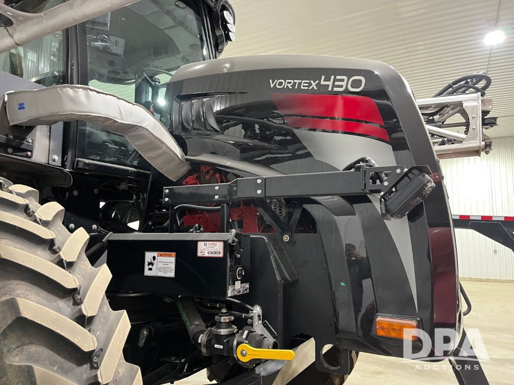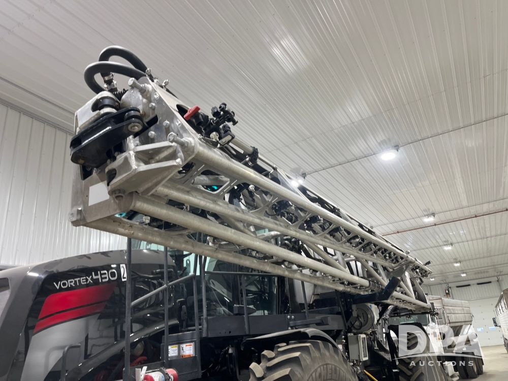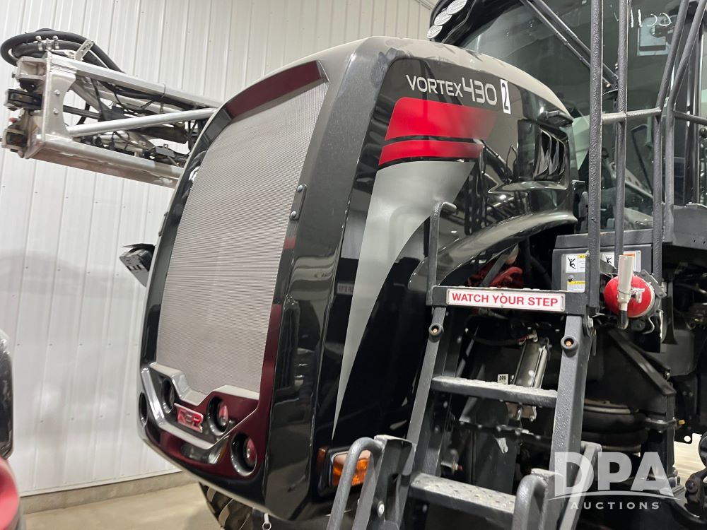 2022 RBR Enterprises Vector 430 4WD Liquid Machine (JN3426), Cummins diesel engine, Allison 3000 RDS automatic transmission, heat, air conditioning, Am/Fm radio, cruise control, buddy seat, Vortex sprayer system (S/N V210024), 2022 Mid-State 2,500 gallon stainless steel liquid tank, Millennium 120' aluminum boom, front fill option, Michelin 420/95R50 row crop tires, fenders, Raven VSN visual guidance camera system, CabCam backup camera, Raven GPS, Raven Viper 4 monitor, shows 300 hours.