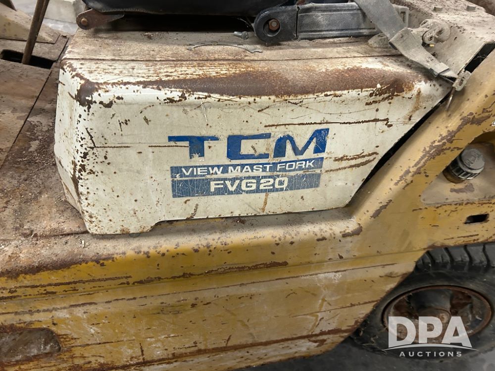 TCM FVG20 Forklift (CP1324, Unit 9944), TCM Model FVG20 forklift, gas, forks, tilt, rubber tire, hour meter missing.