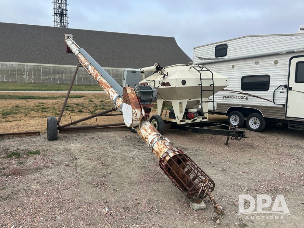Grain Auger (CP1327), portable grain auger, Siemens 20HP electric motor, 9.5L-15 flotation tires.