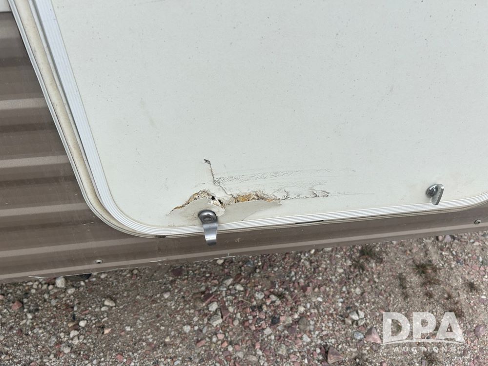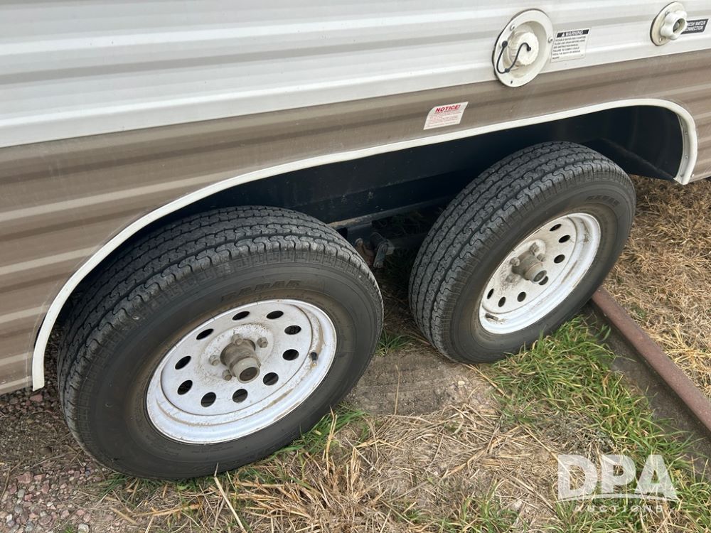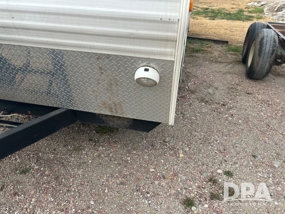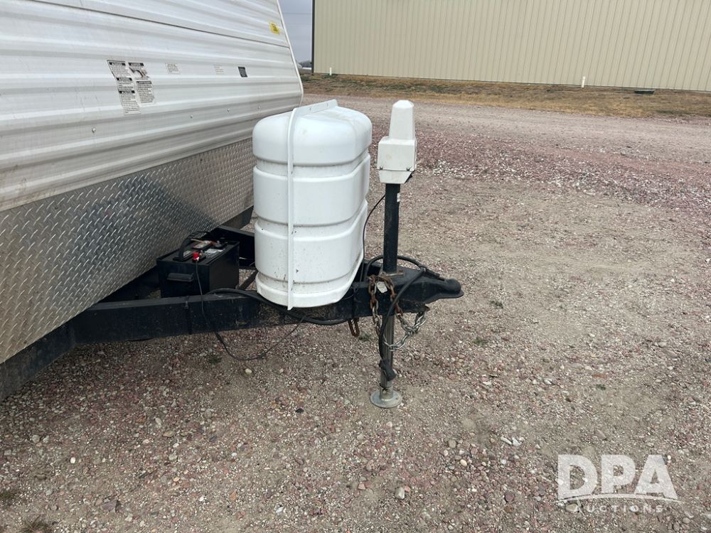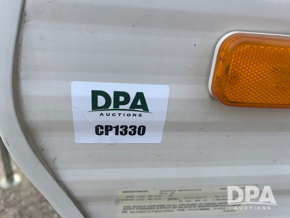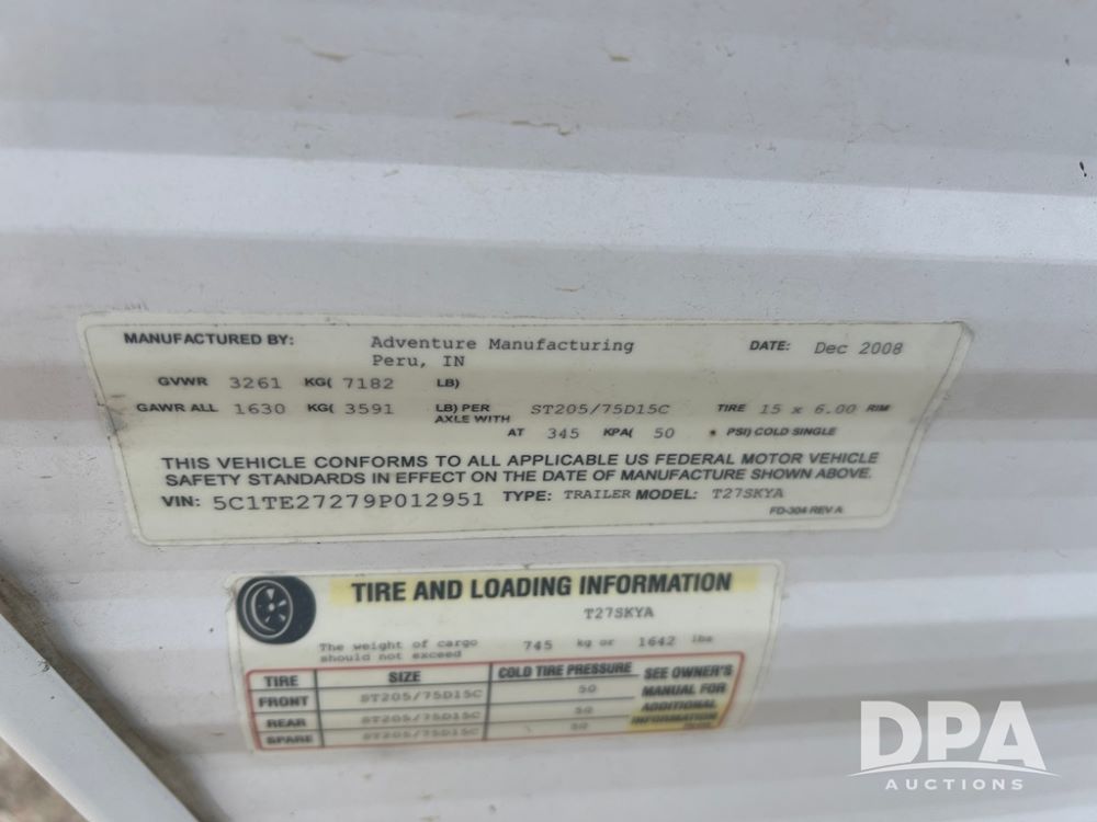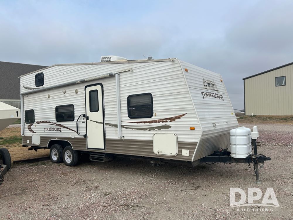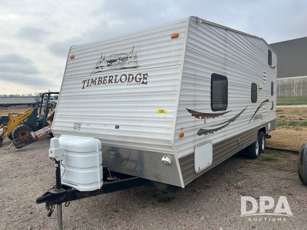2009 Timberlodge Camper (CP1330), Timberlodge Model T27SKYA camper, bumper hitch, tandem axle, air conditioner, stove, refrigerator, microwave, bathroom, awning is torn away, ST205/75R15 tires, electric stabilizers, GVWR 7,182 pounds.