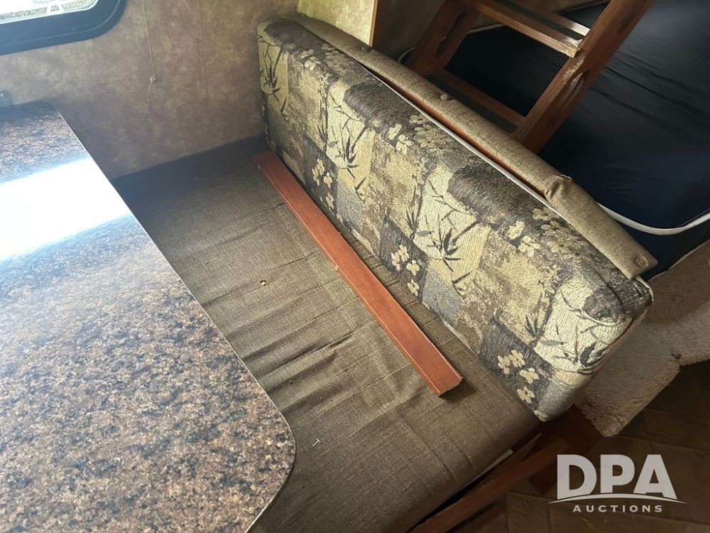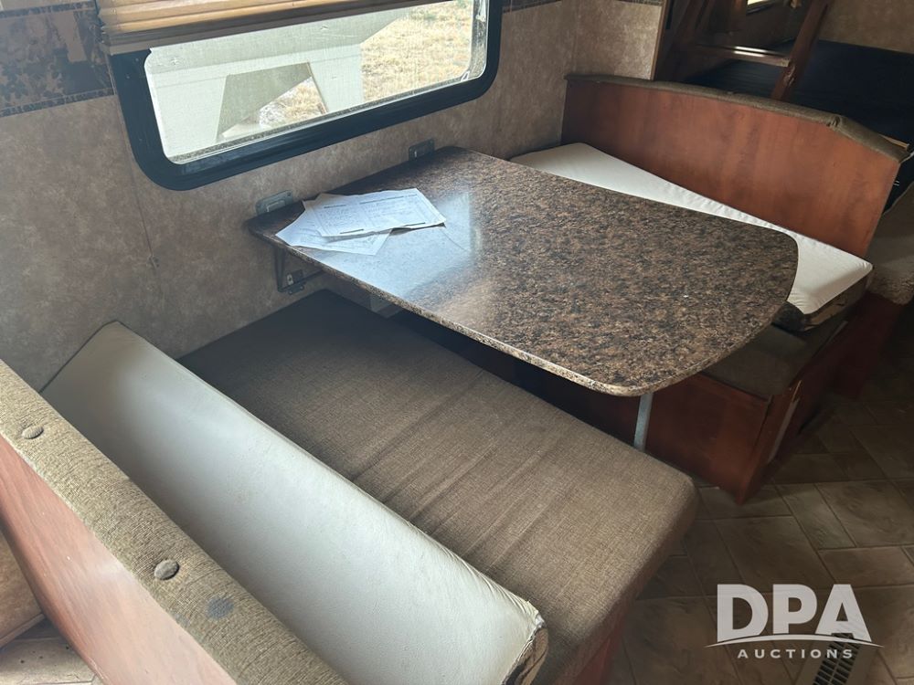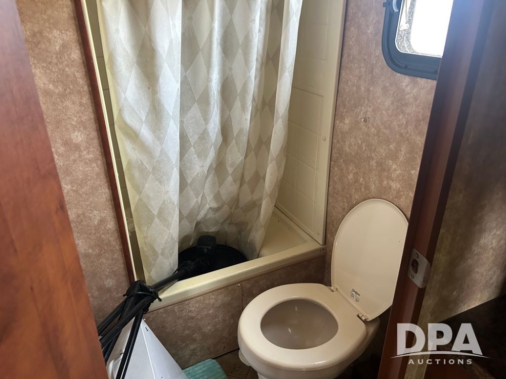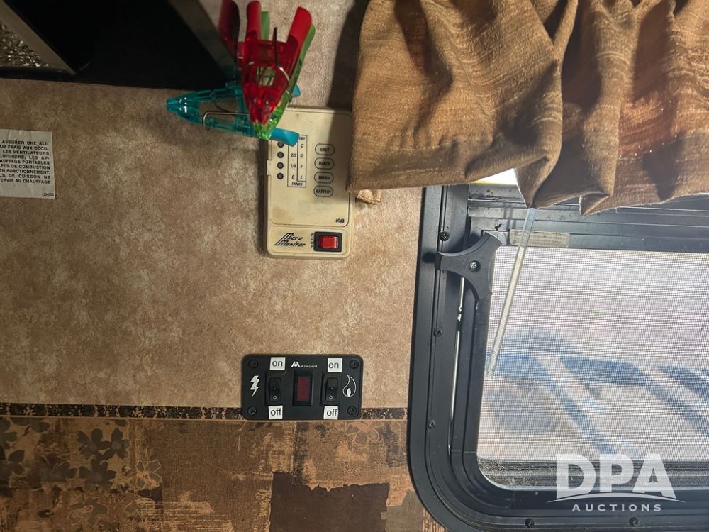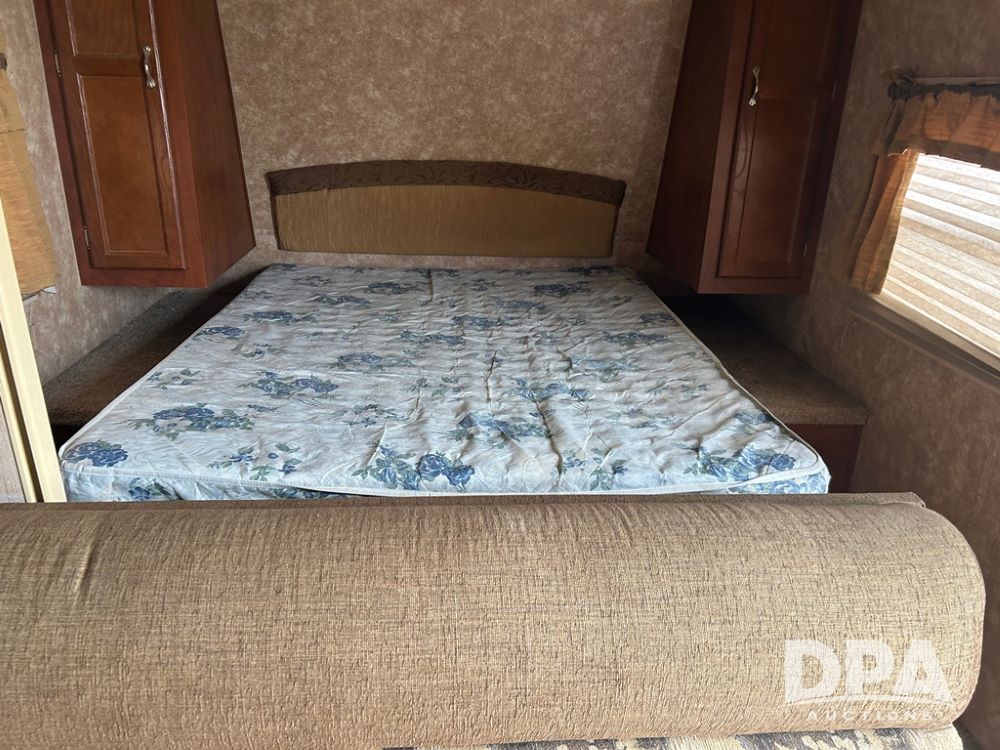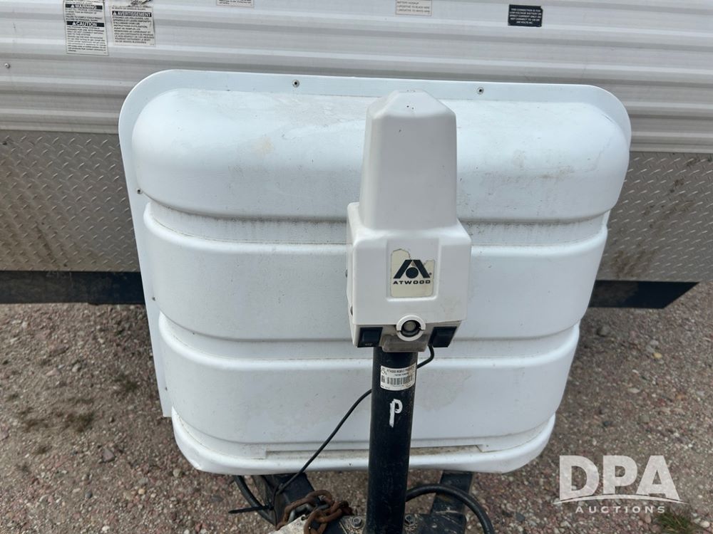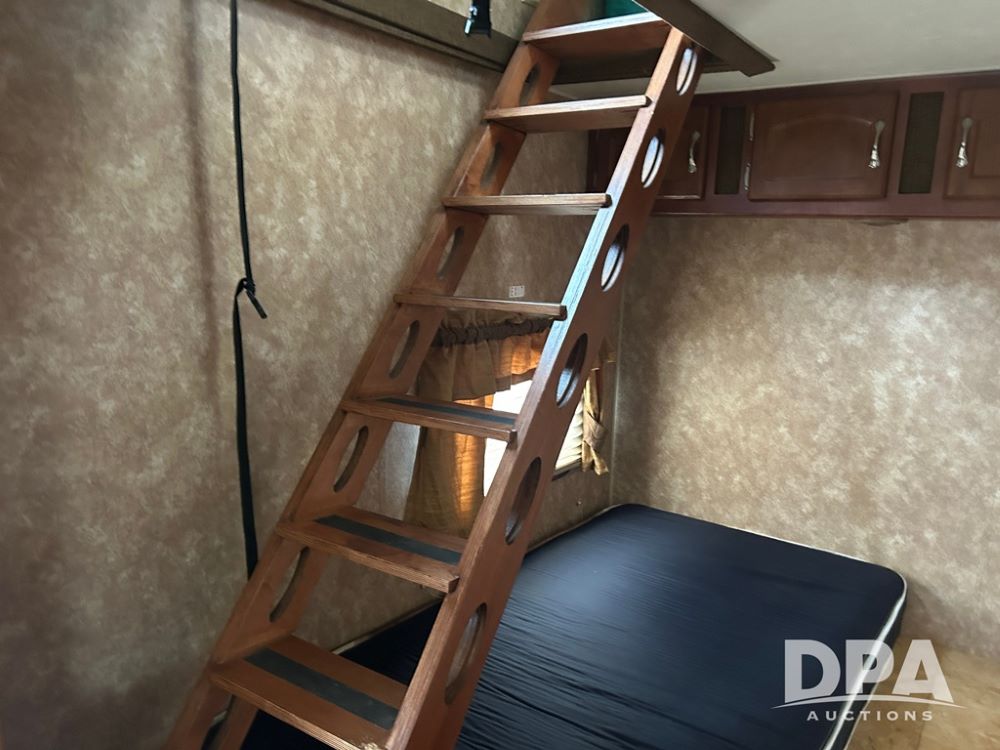 2009 Timberlodge Camper (CP1330), Timberlodge Model T27SKYA camper, bumper hitch, tandem axle, air conditioner, stove, refrigerator, microwave, bathroom, awning is torn away, ST205/75R15 tires, electric stabilizers, GVWR 7,182 pounds.