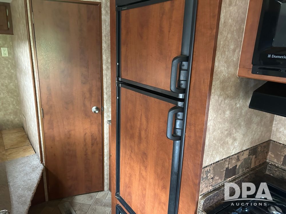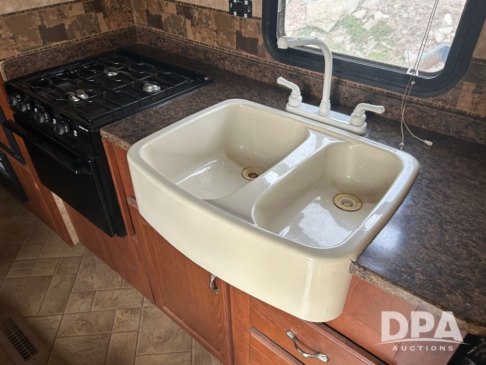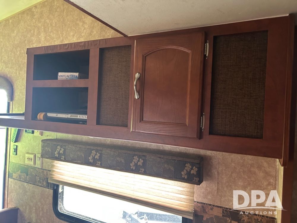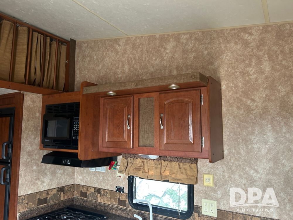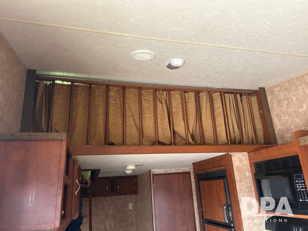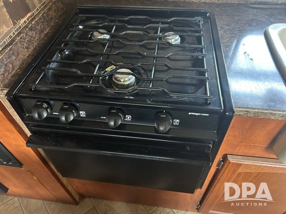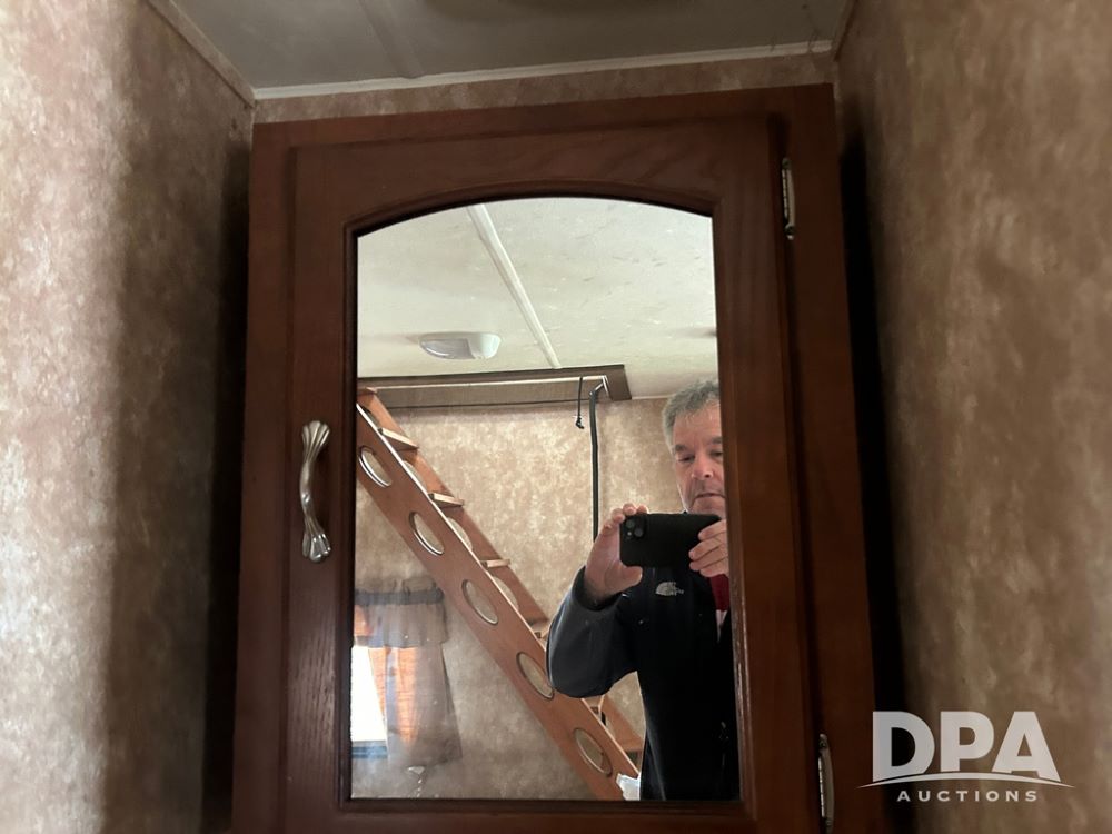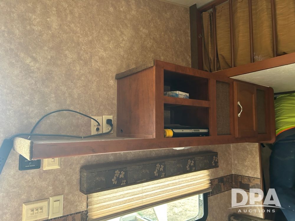 2009 Timberlodge Camper (CP1330), Timberlodge Model T27SKYA camper, bumper hitch, tandem axle, air conditioner, stove, refrigerator, microwave, bathroom, awning is torn away, ST205/75R15 tires, electric stabilizers, GVWR 7,182 pounds.