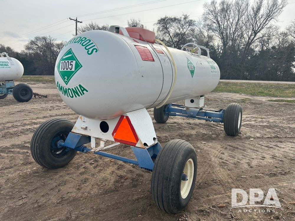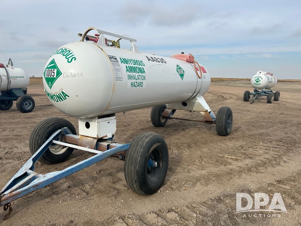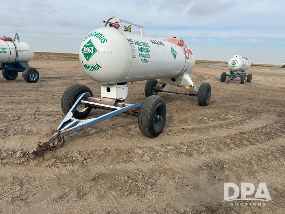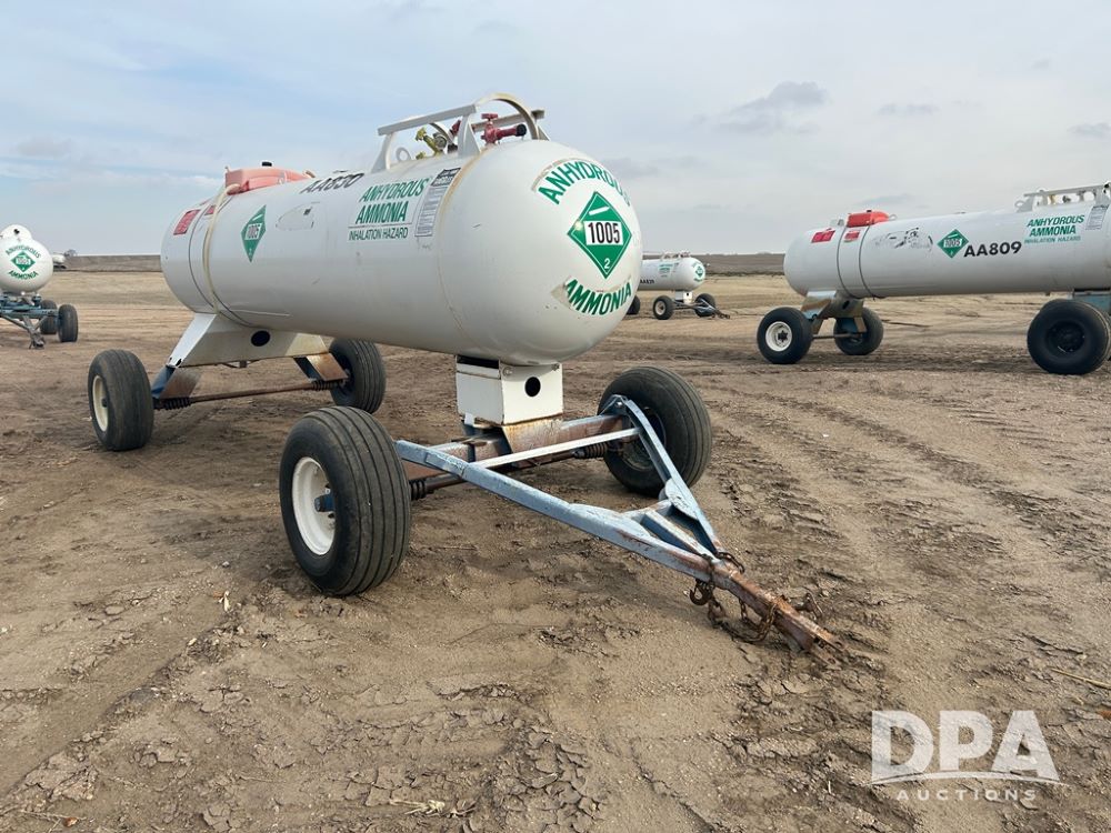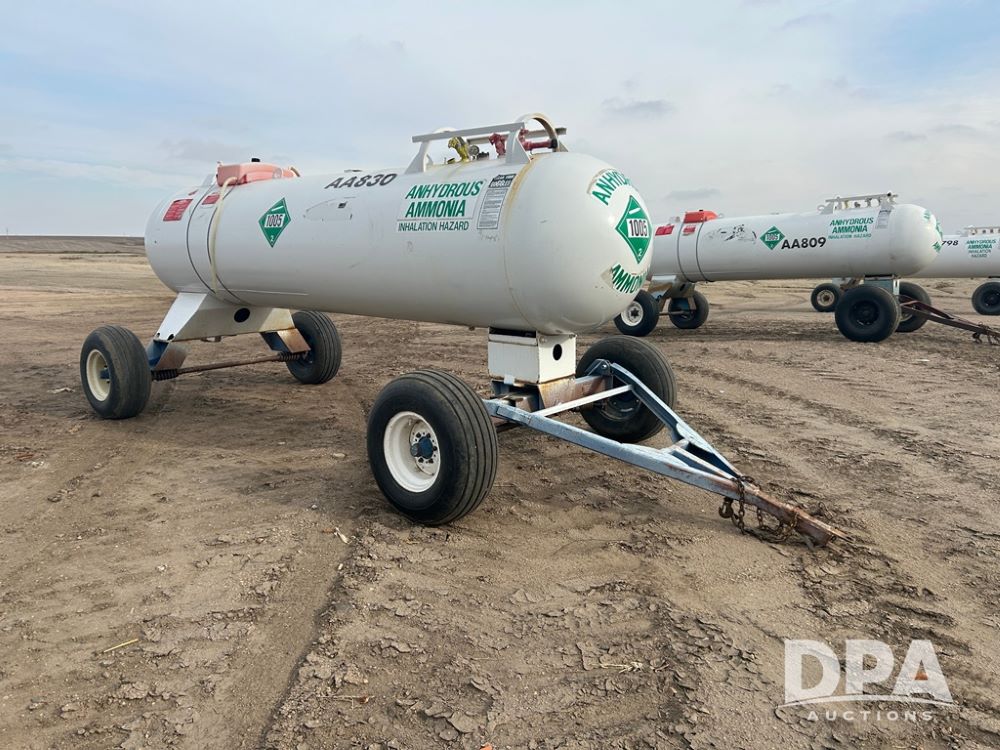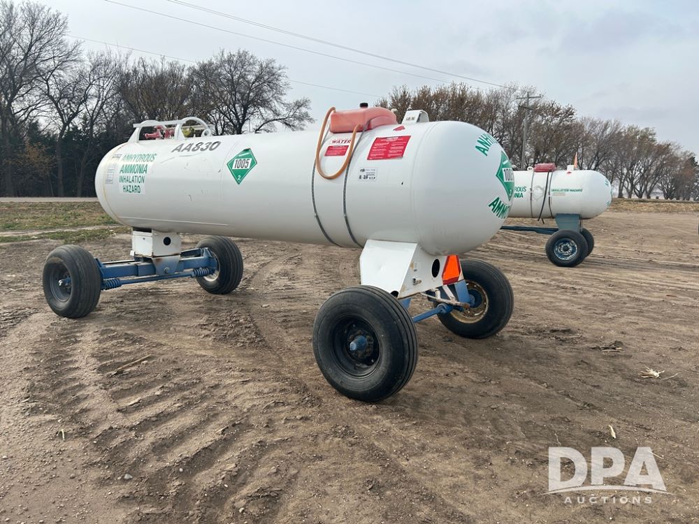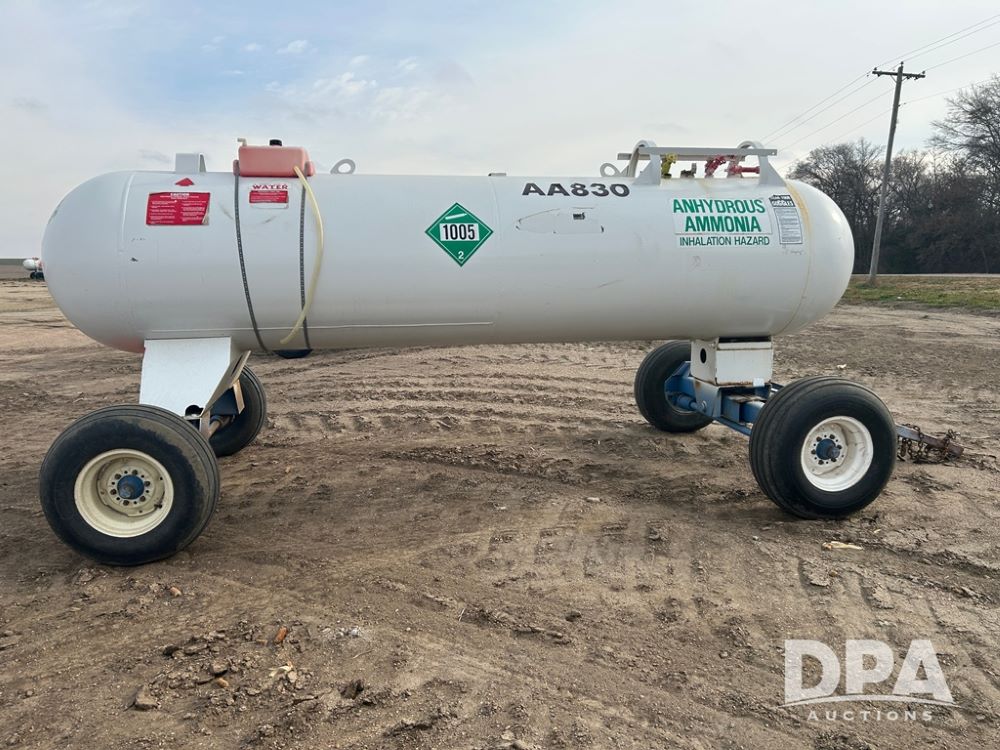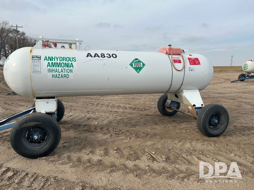 NH3 Nurse Tank (CP1333, Tank AA830), 1,000 gallon anhydrous nurse tank, top front fill, Pryor style gear, flotation tires, water tank, data plate.