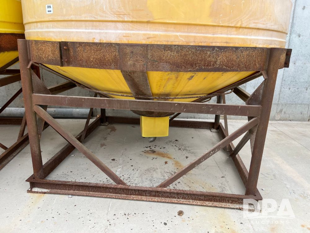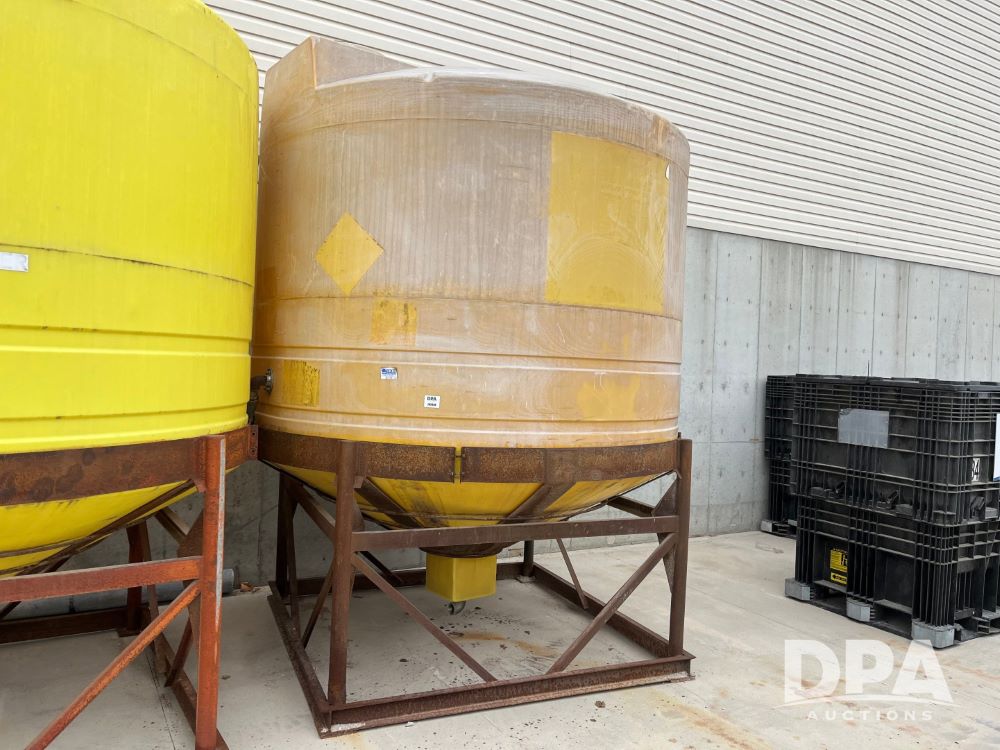 Poly Liquid Tank (JN3448), poly cone bottom liquid tank, approx. 2,300 gallon capacity, stand.
