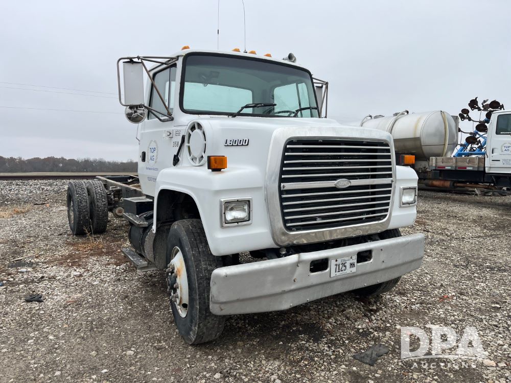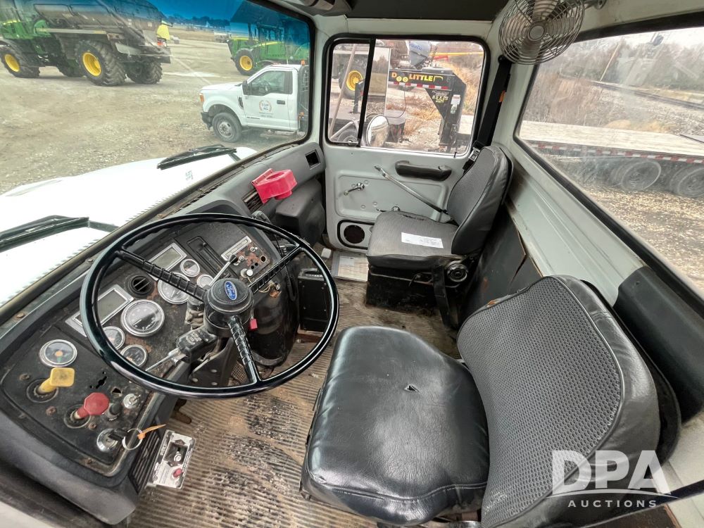 1995 Ford L8000 Cab/Chassis (JN3447, Unit 358), Cummins diesel engine, automatic transmission, heat, Am/Fm radio, single axle, spring suspension, 11R22.5 tires, shows 111,428 miles.
