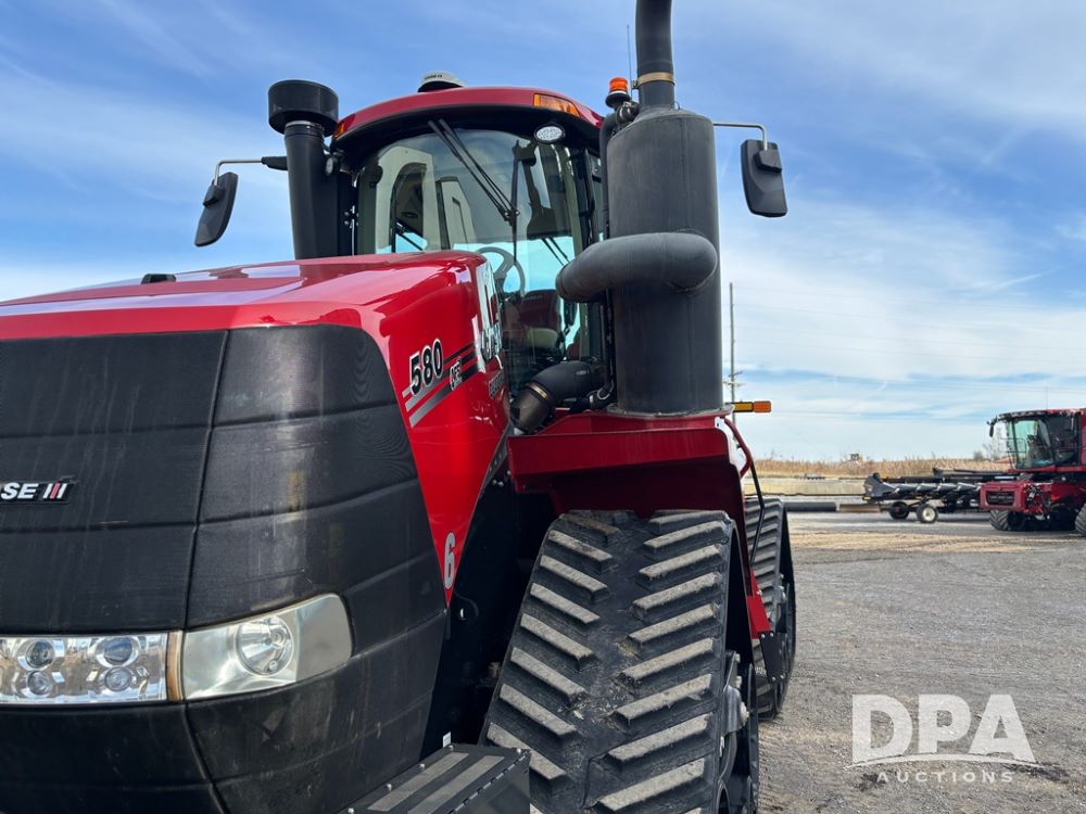 2022 Case IH 580 Quadtrac Tractor (JY1002), Case IH FPT 580 hp 2 staged turbo charged diesel engine, powershift transmission, 30 inch tracks, 1,000 PTO, 6 hydraulic remotes, high flow hydraulic pump, Ag drawbar with hammer strap, tow cable, suspended cab, luxury cab, leather heated seat, buddy seat, electric mirrors, LED lights, Pro 1200 guidance system, 372 receiver, shows 1,380 hours.