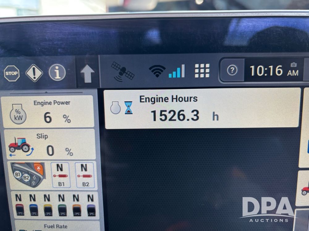 2022 Case IH 580 Quadtrac Tractor (JY1003), Case IH FPT 580 hp 2 staged turbo charged diesel engine, powershift transmission, 30 inch tracks, 1000 PTO, 6 hydraulic remotes, high flow hydraulic pump, Ag drawbar with hammer strap, tow cable, suspended cab, luxury cab, leather heated seat, buddy seat, electric mirrors, LED lights, Pro 1200 guidance system, 372 receiver, shows 1526 hours.