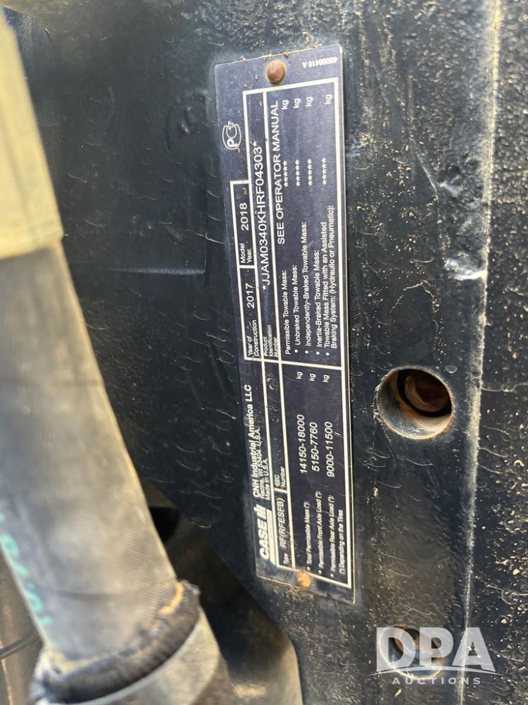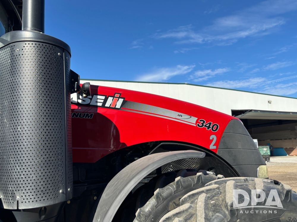 2018 Case IH 340 Magnum Tractor (JY1008), 340 hp diesel engine, 19 speed powershift transmission, differential lock, Agristar 380/80R30 front duals, Agribib 480/80R50 rear duals, wheel weights, 10 suitcase weights, suspended front axle, suspended cab, 1000 PTO, 6 hydraulic remotes, LED lights, Premium cab, heated and cooled leather seat, buddy seat, AFS connect, Pro 700 monitor, 372 receiver, RTK unlock, shows 1954.7 hours.