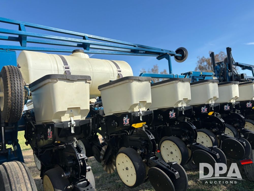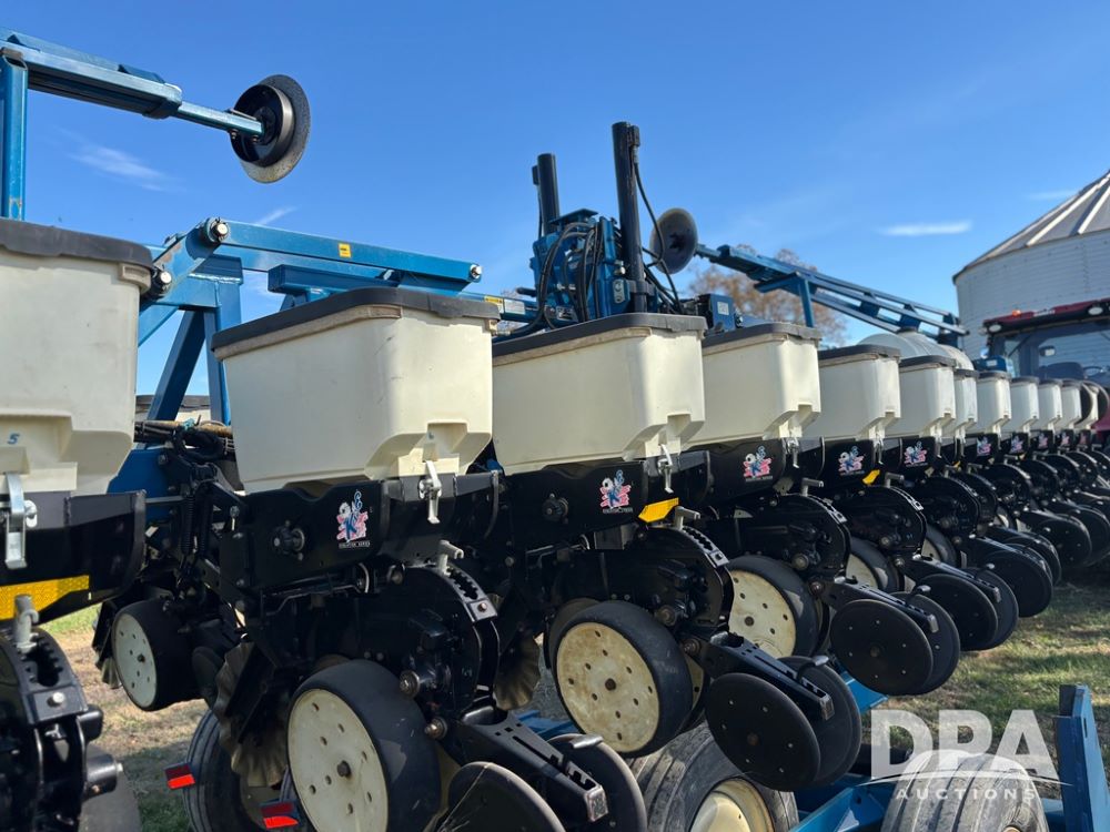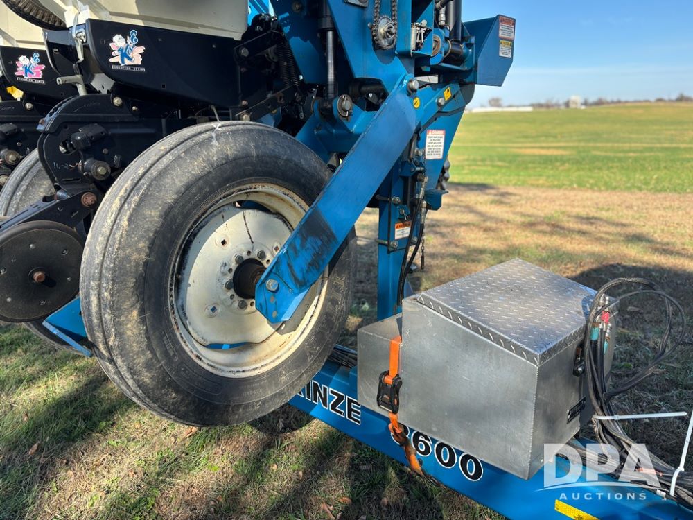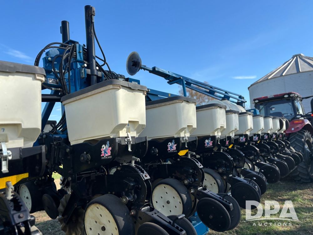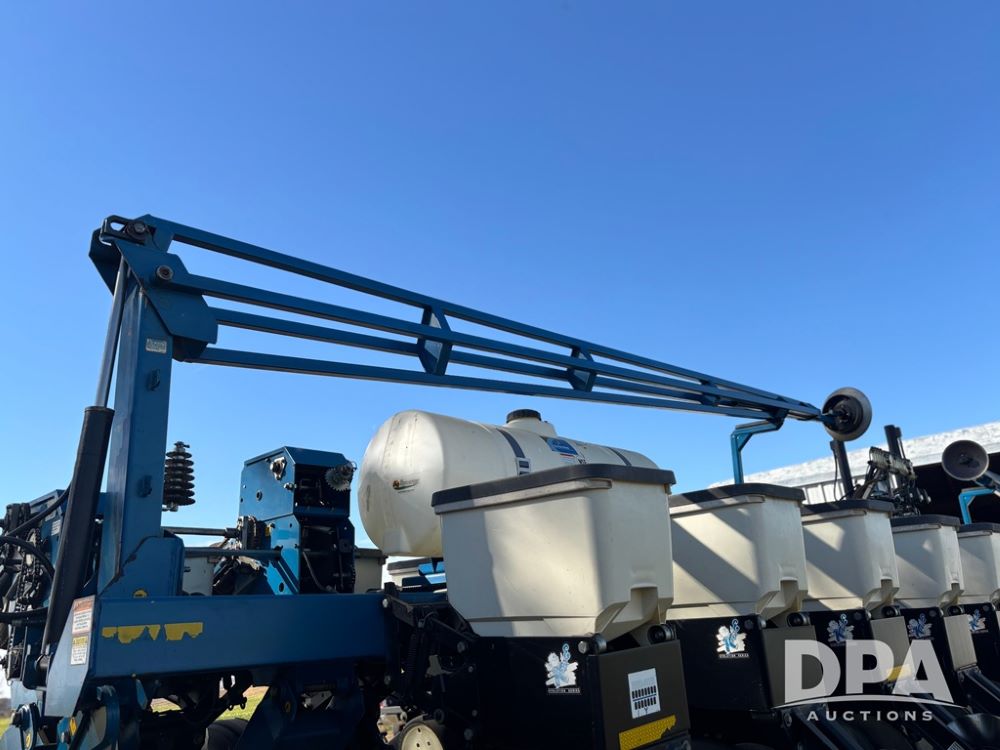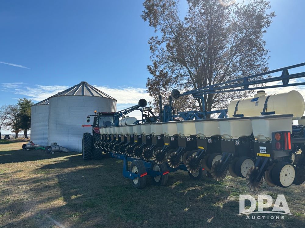 2022 Kinze 3600 Planter (JY1009), 16/31 rows, 30 inch/15 inch spacing, box fill, flex frame, no till coulters, hydraulic markers, ground drive, spring down pressure, section control, Kinze finger pickup corn meters, Kinze bean meters, In furrow liquid on 16 rows, electric drive pump.