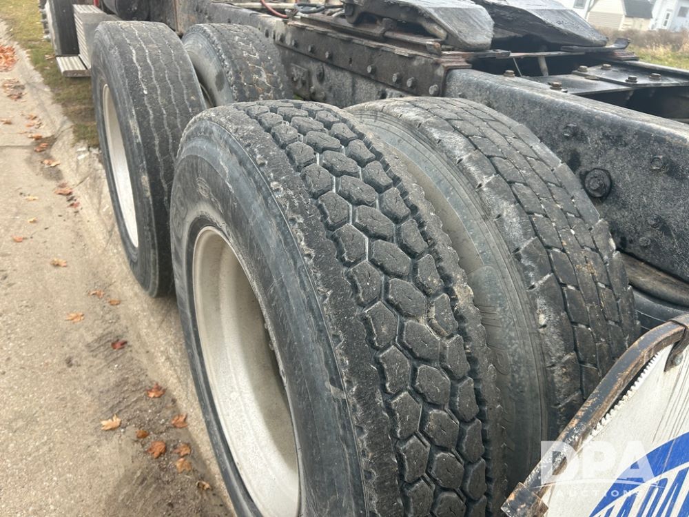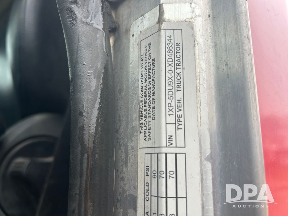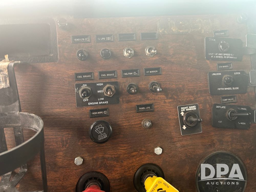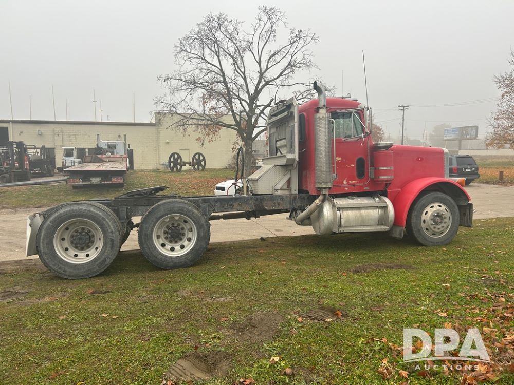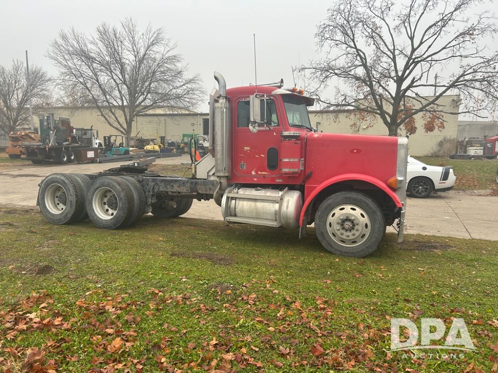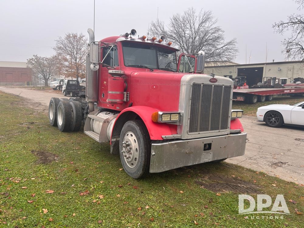 1999 Peterbilt 379 Day Cab Truck (CP1340), Cat C-12 diesel engine, Eaton 13 speed transmission, heat, Am/Fm radio, tandem axle, air ride suspension, 5th wheel plate, headache rack, 285/75R24.5 tires, engine brake, 3.90 rear ratio, approx. 210" wheel base, GVWR 50,000 pounds, shows 386,405 miles.