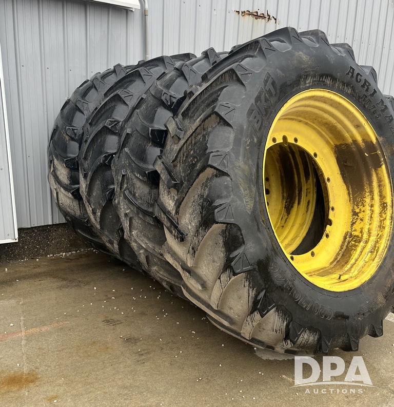 (4) Agri Max Float Tires (ED5314), Set of 4 Agri Max tires and rims size 620/70 R46, came off for John Deere 4940.
