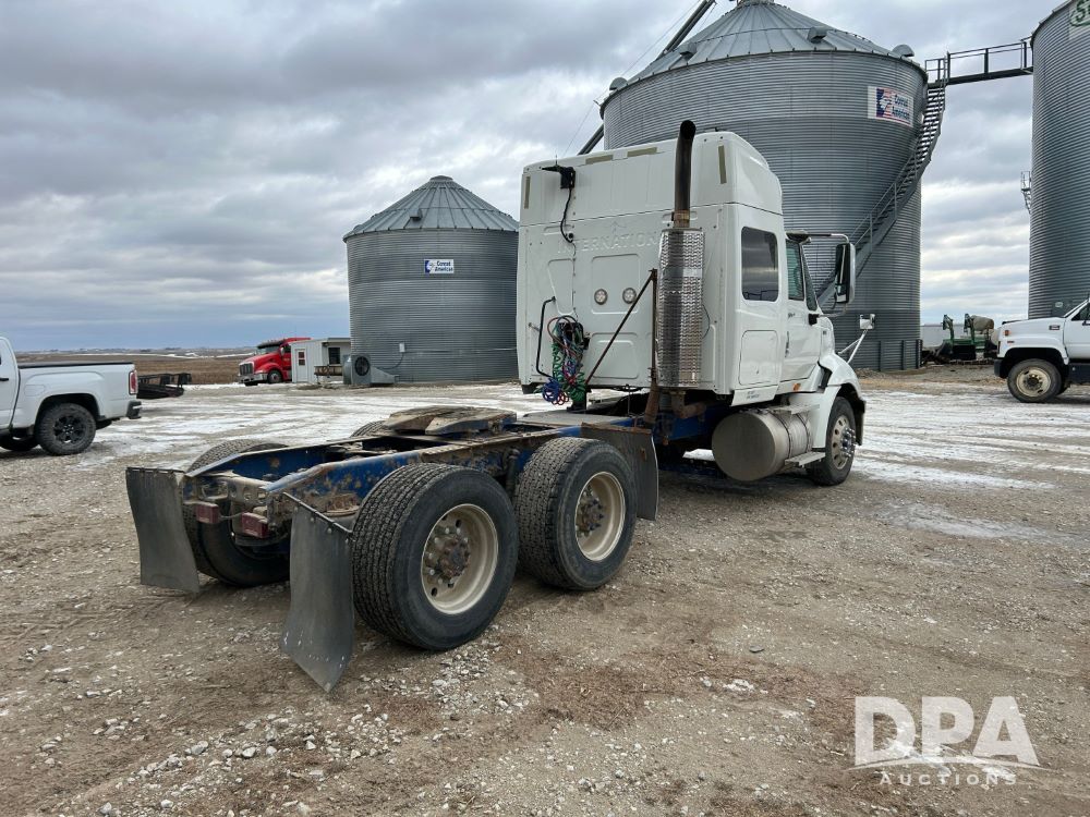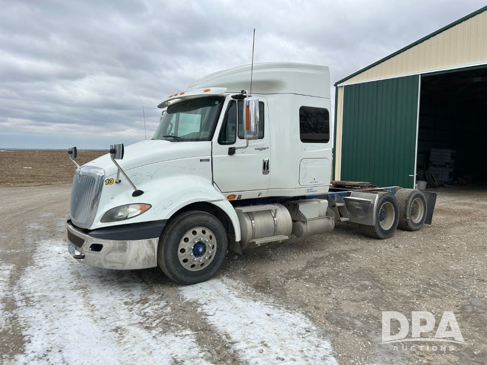 2013 International Prostar+ 113 Semi (LS0174), 13L Maxx Force engine, Eaton Fuller manual transmission, super single axles, power windows, heat/AC AM/FM Radio, heated mirrors, cloth seats, sleeper, BF Goodrich 275/80R22.5 front tires, Michelin 445/50R22.5 rear tires, shows 520,405 miles.
