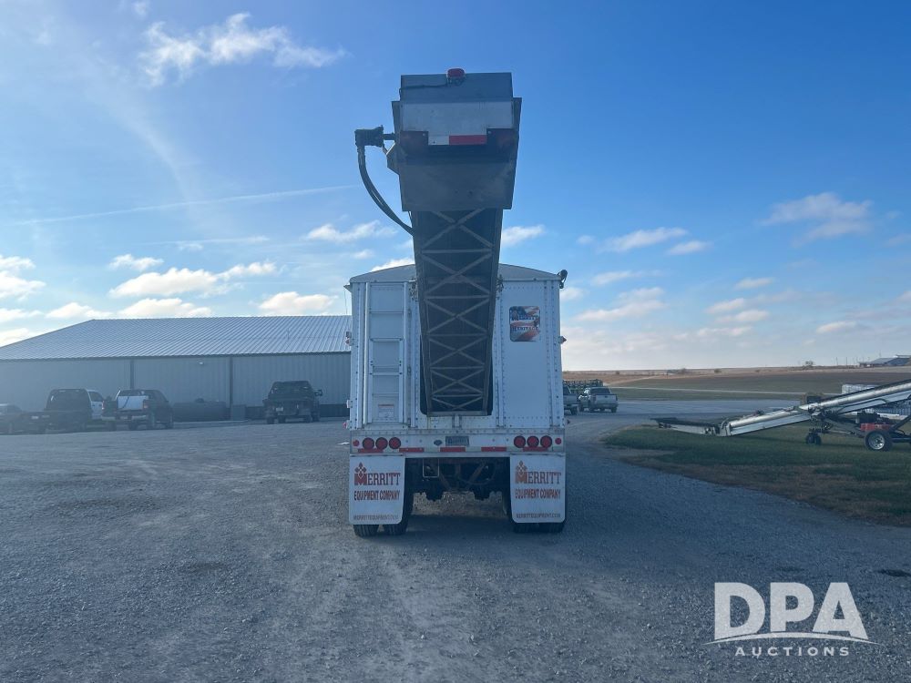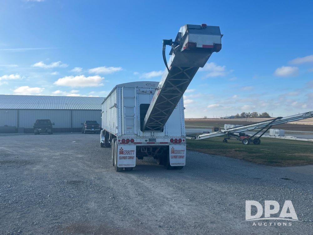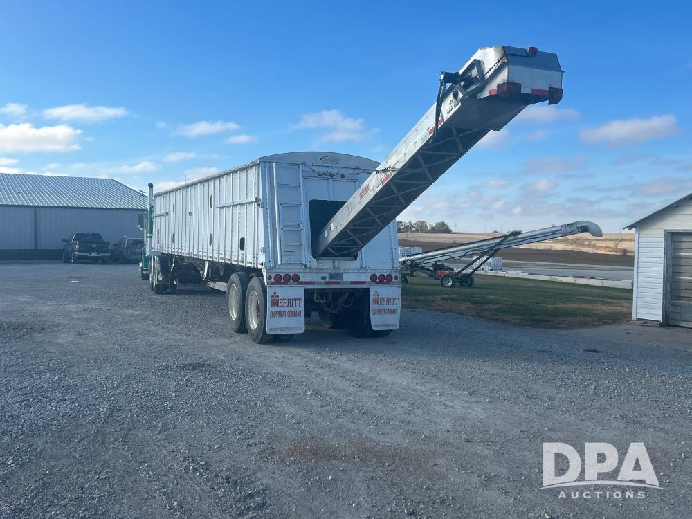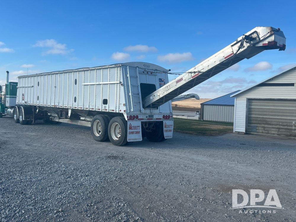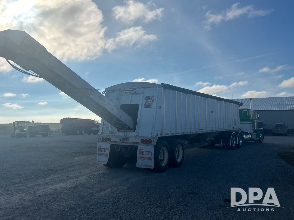 2011 Merritt Quickveyor Tender Trailer (LS0490), 38.5 ft tender trailer, tandem axle, spring suspension, rear hydraulic conveyor discharge, outer controls, under hopper conveyor, autolock electric tarp, 11r24.5 tires.