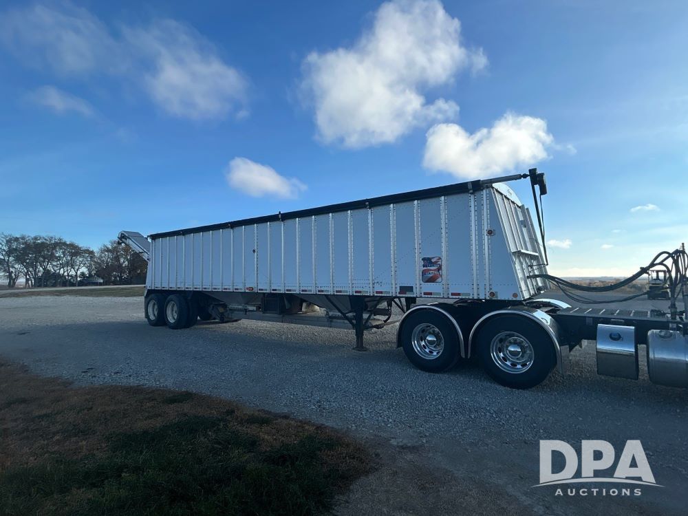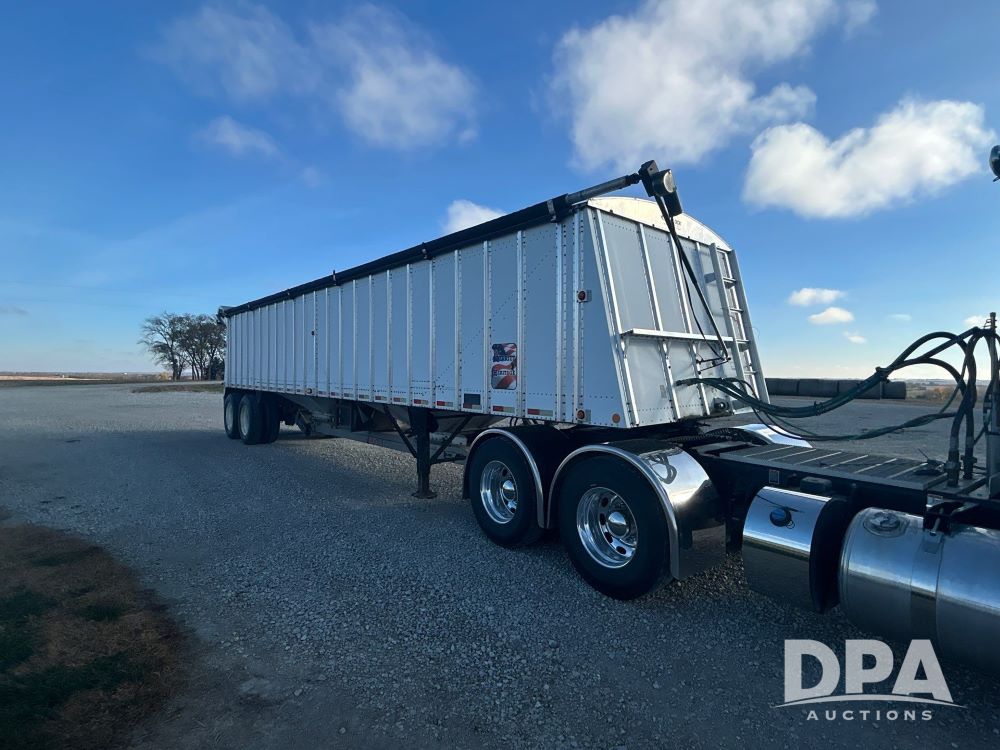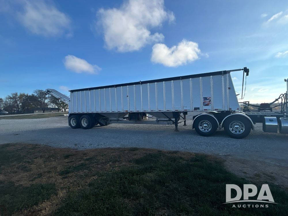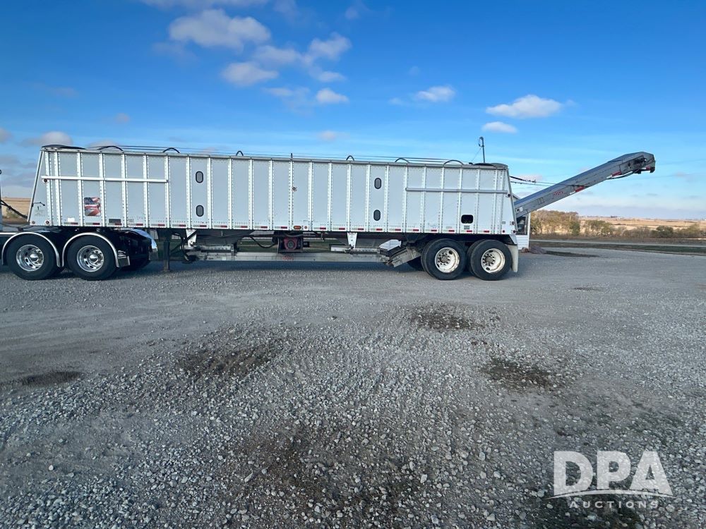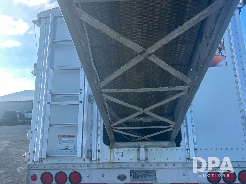 2011 Merritt Quickveyor Tender Trailer (LS0490), 38.5 ft tender trailer, tandem axle, spring suspension, rear hydraulic conveyor discharge, outer controls, under hopper conveyor, autolock electric tarp, 11r24.5 tires.