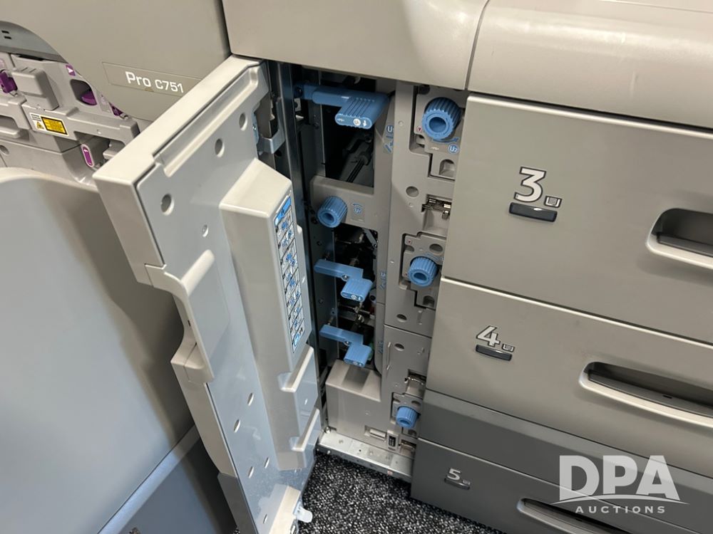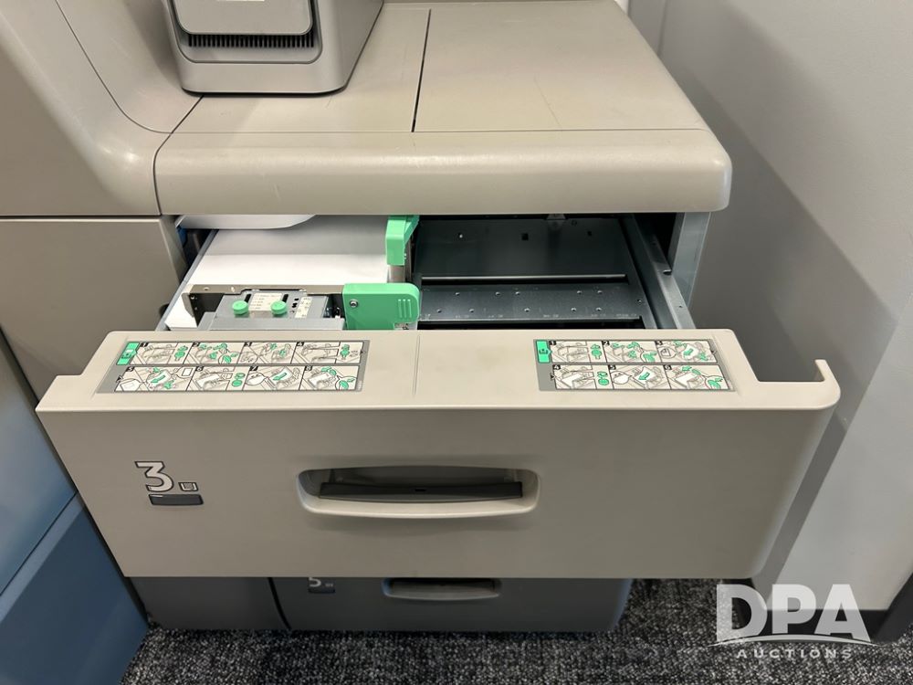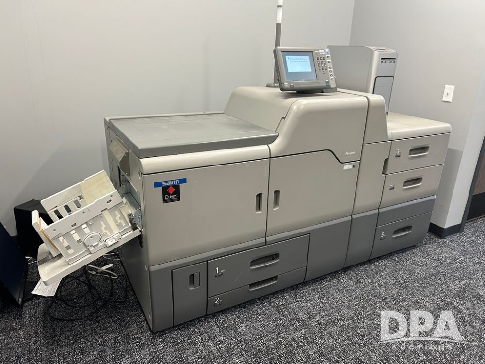 Savin Pro C751 Commercial Printer (TR00021), Description: 5-Tray Professional Printer/Copier, Fully operational and serviced Savin Pro C751 color printer/copier. About 15 years old but still performs great with sharp, consistent print quality. Equipped with five paper trays and multiple output options for high-volume printing and copying. Heavy-duty, reliable unit — ideal for offices, print shops, or anyone needing a dependable workhorse. Details: • Serial Number: S9831000010 • Black & White Count: 3,942,380 copies • Color Copy Count: 12,013 copies • Condition: Used, well-maintained, normal cosmetic wear Ready to plug in and use — a solid commercial machine at a great value.
