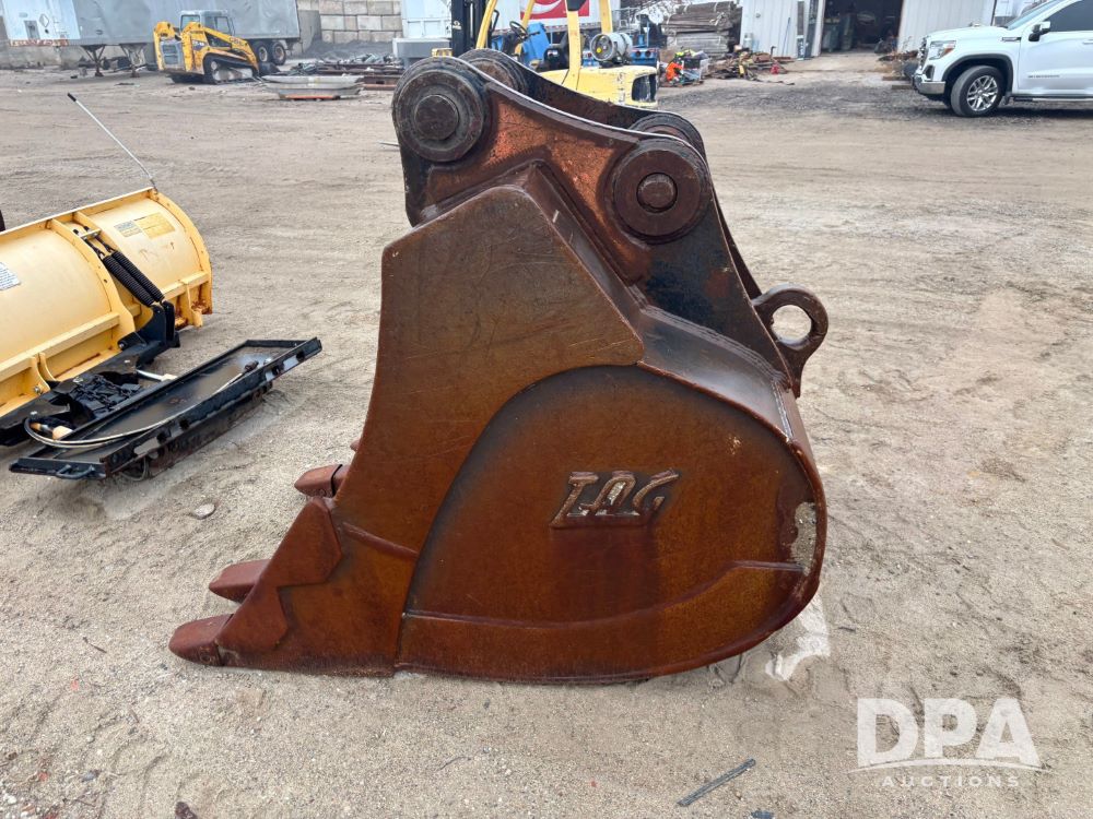 TAG Excavator Bucket/Leveling Beam (GP12119), TAG excavator bucket, approx. 4' width, CAP 2,100, planning/leveling beam.
