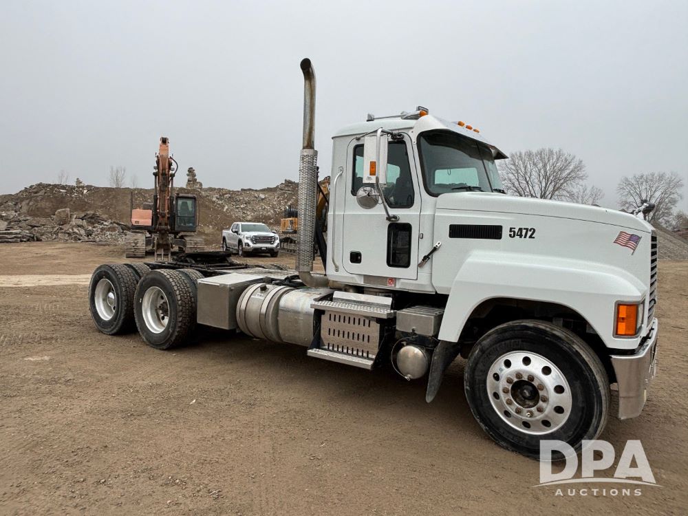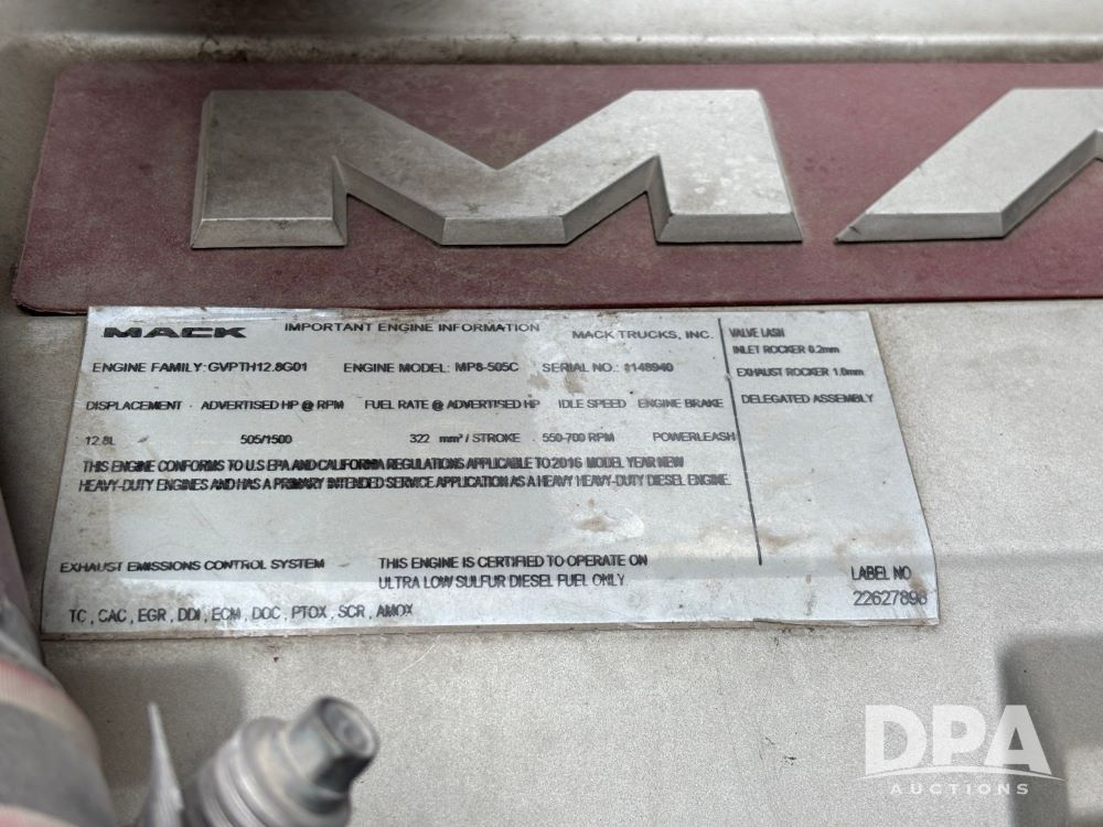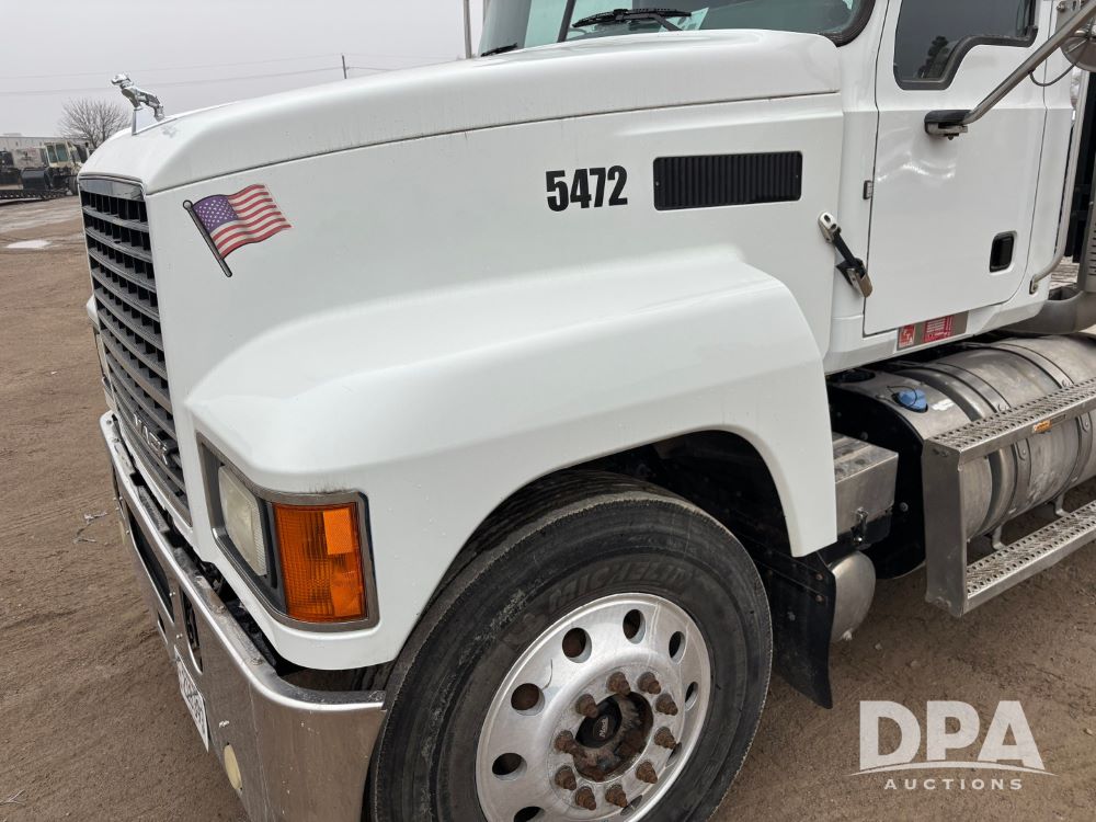 2017 Mack CHU613 Day Cab Truck (GP12125, Unit 5472), Mack MP8-505C - 12.8L diesel engine (505 HP), Eaton Fuller 18 speed transmission, heat, air conditioning, Am/Fm radio, cruise control, power windows and locks, tandem axle, air ride suspension, 5th wheel plate, wet kit, 11R24.5 tires, aluminum wheels, shows 298,175 miles.