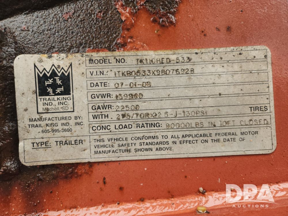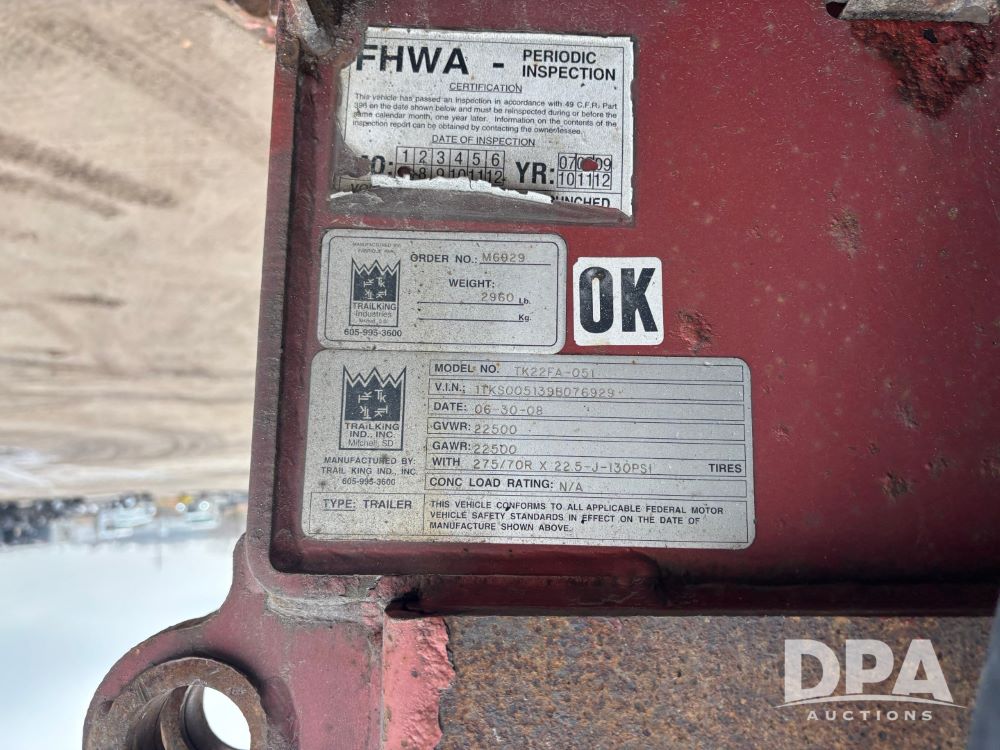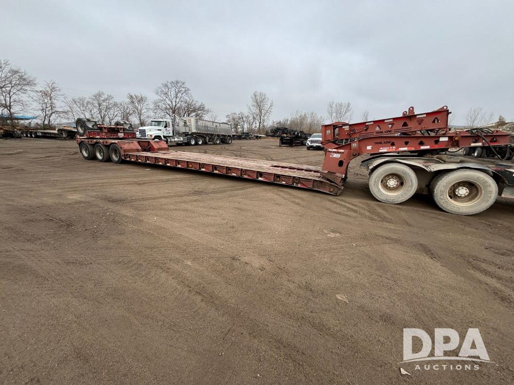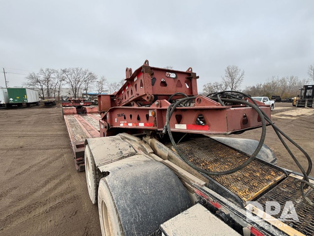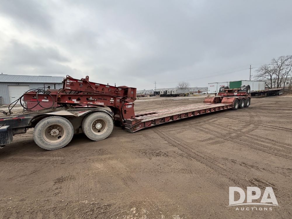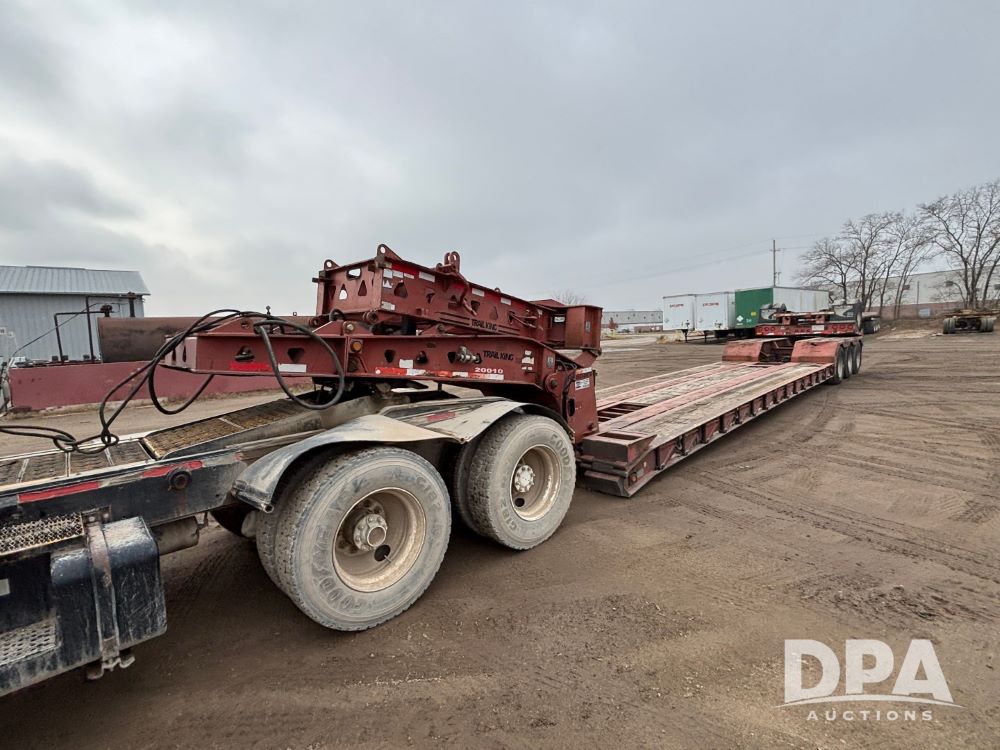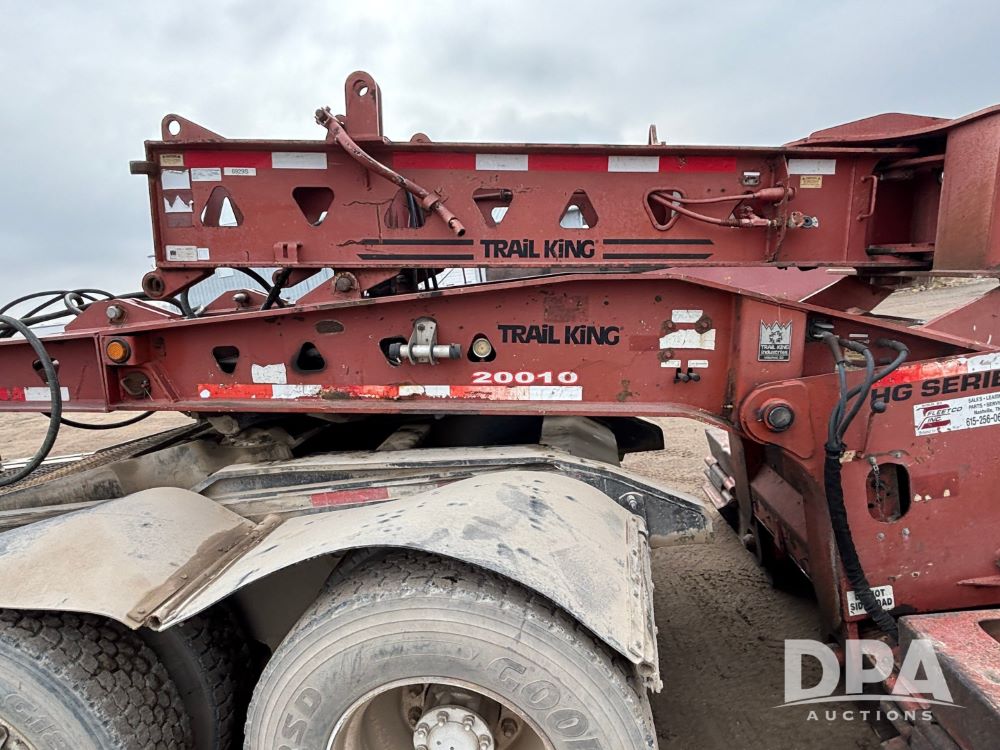 2009 Trail King HG Series Extendable Lowboy Trailer (GP12128, Unit 20010), 2009 Trail King HG Series Model TK110HED-533 extendable lowboy trailer, CONC LOAD RATING: 90,000 lbs in 10 FT CLOSED, triple axle w/ Trai King Model TK22FA-051 flip up 4th axle (S/N 1TKS005139B076929), air ride suspension, pony motor, 275/70R22.5 tires, aluminum wheels, GVWR 139,960.
