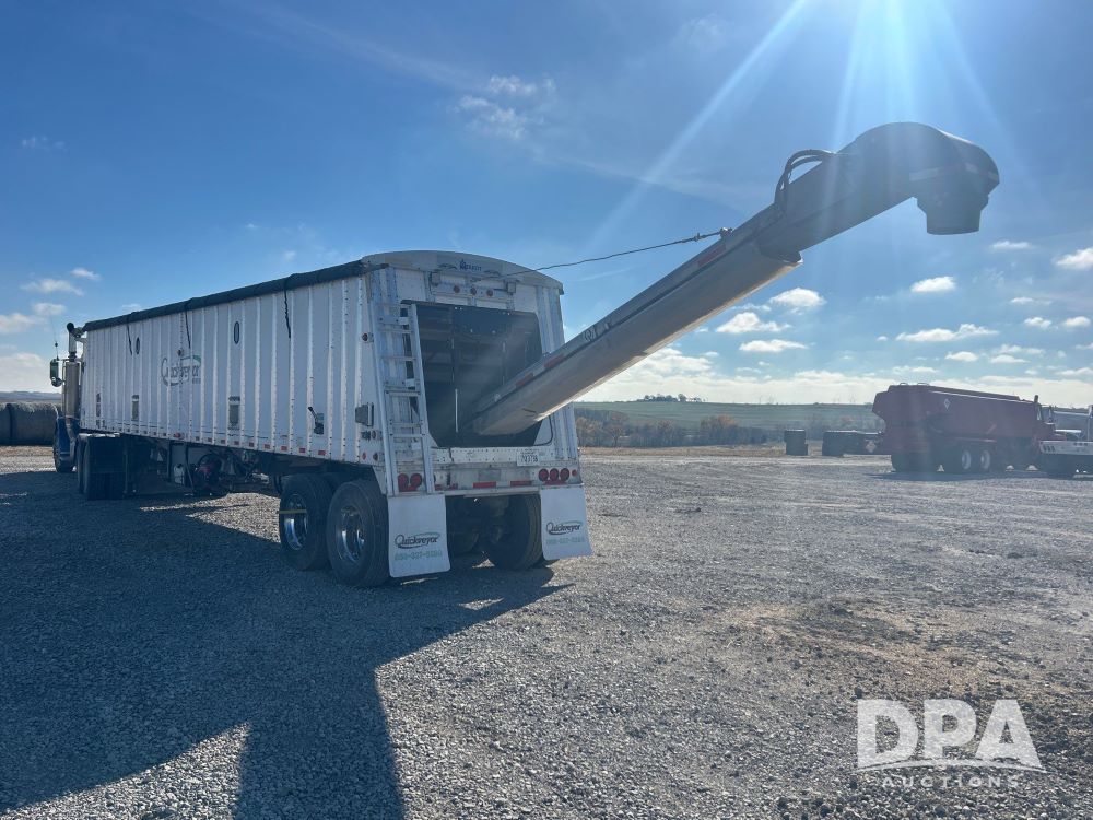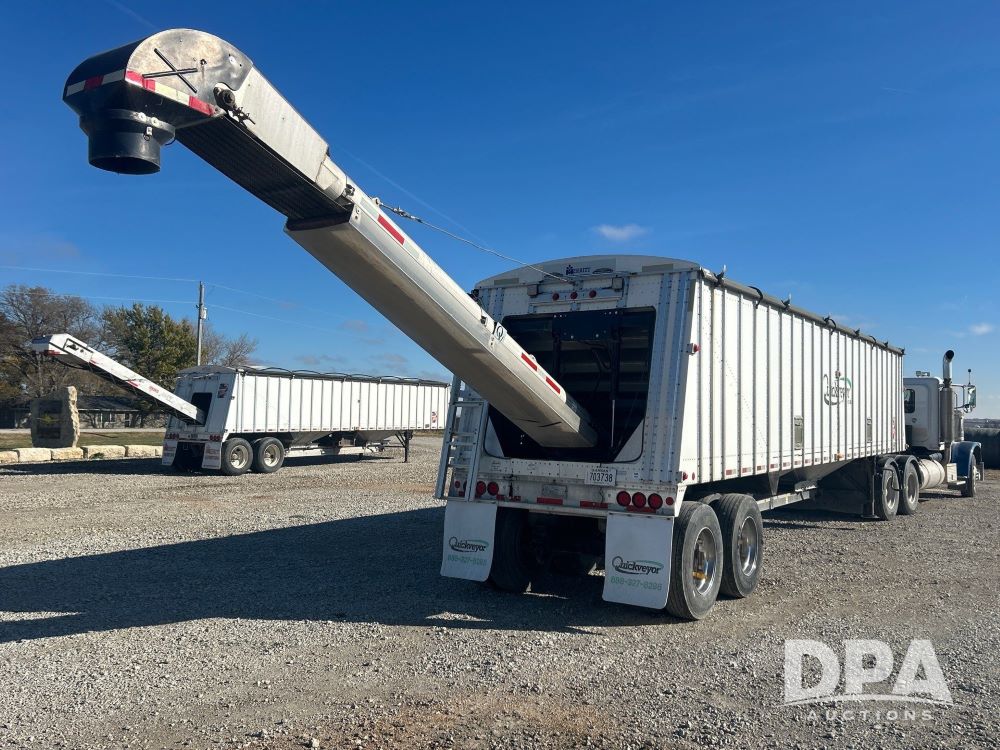2016 Merritt Quickveyor Tender Trailer (LS0497), 38.5ft tender trailer, tandem axle, air ride suspension, rear hydraulic conveyor discharge, outer controls, under hopper conveyor, Honda GX, engine, automatic roll tarp, 11r22.5 tires, comes with two spare hydraulic motors.