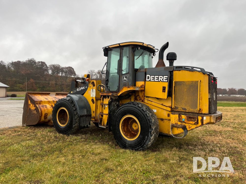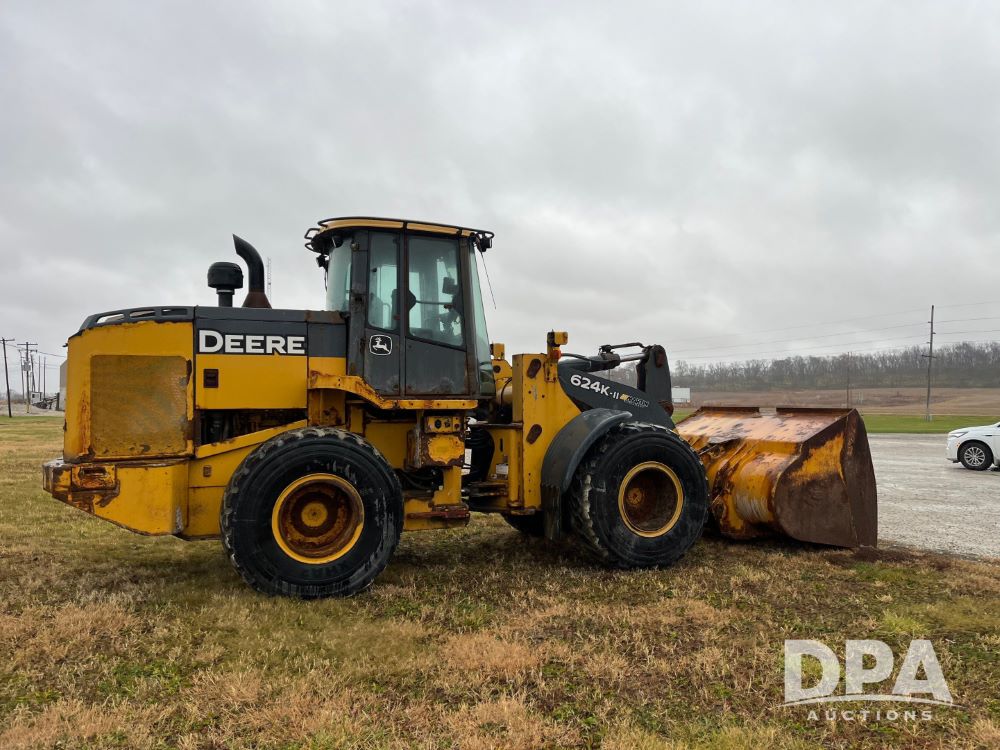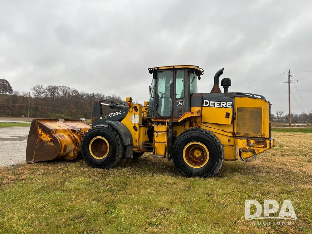 2017 John Deere 624K Wheel Loader (JN3499, Unit 99300), EROPS, John Deere diesel engine, heat, Am/Fm radio, approx. 104" bucket, Michelin 20.5R25 tires, Loadrite L2180 weighing system indicator, shows 4,760 hours.
