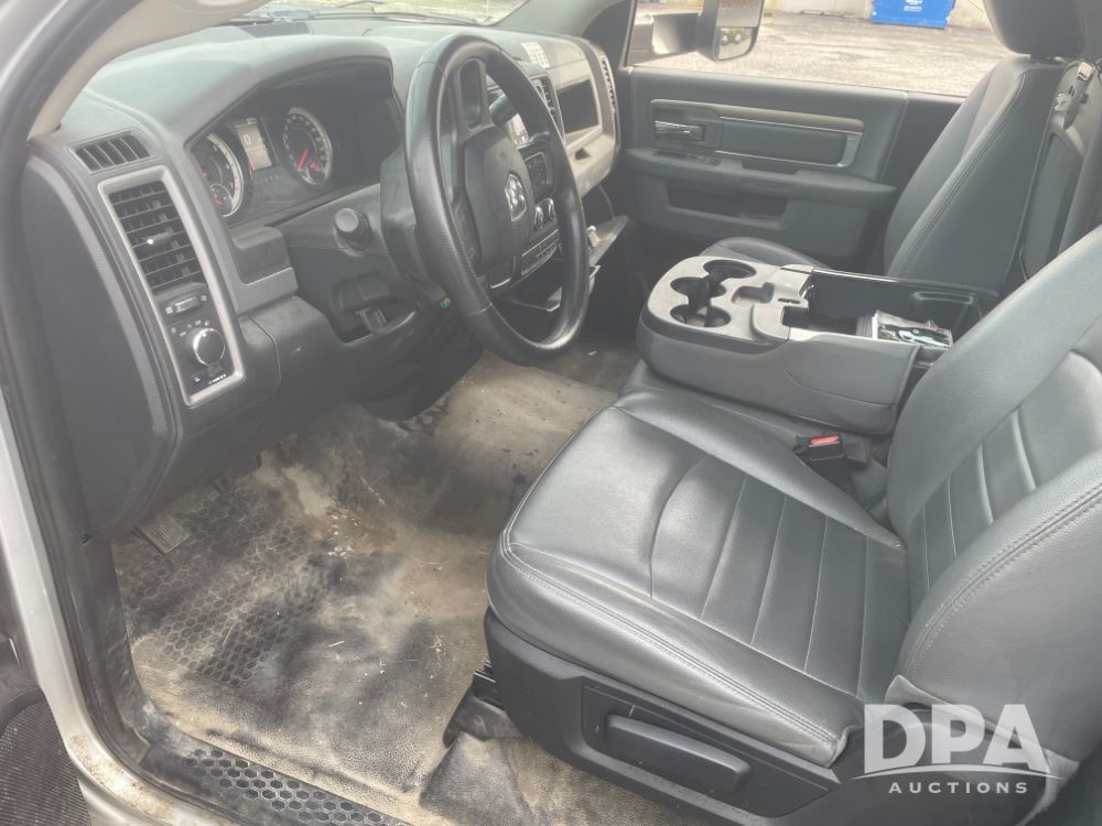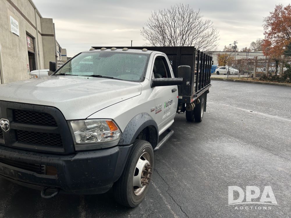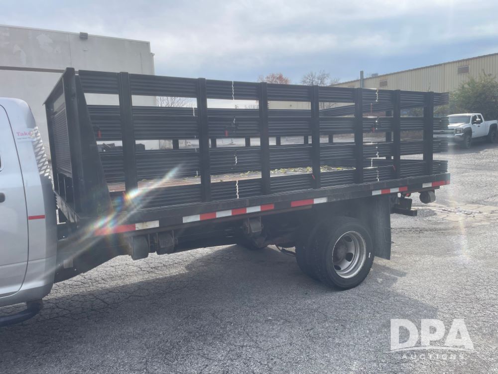 2017 Dodge Ram 5500 Heavy Duty Flatbed (PZ14211, Unit 98346), Hemi 6.4L gas engine, automatic transmission, air conditioning, heat, Am/Fm radio, cruise control, power windows & locks, dually, steel flatbed, headache rack, sides, winches, rear hitch, shows 159,303 miles.