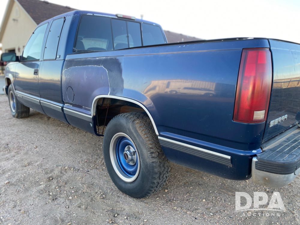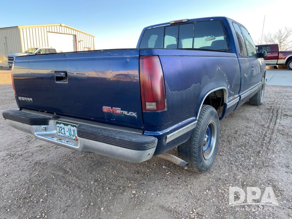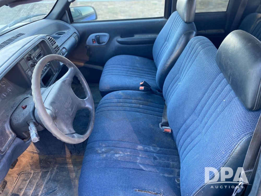 1996 GMC 1500 Pickup (DR12786), gas engine, manual transmission, quad cab, spray bed liner, heat/air conditioning, 215/75R16 tires, odometer reads 243,415 miles.