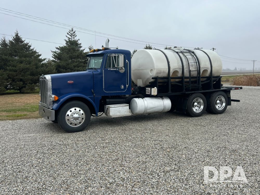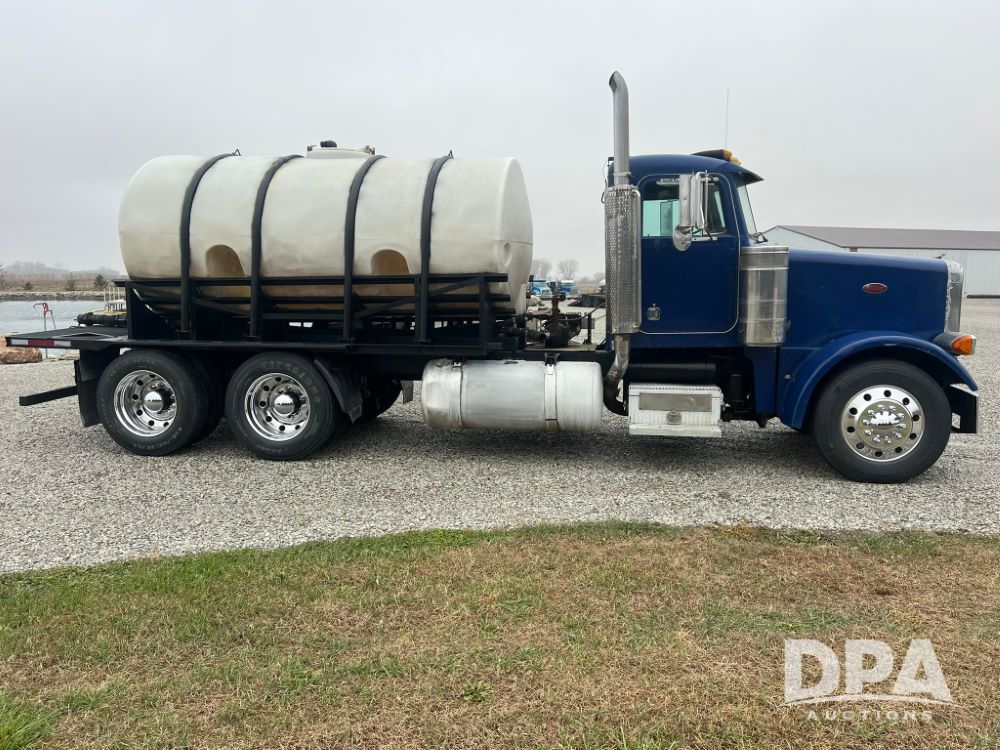 1989 Peterbilt 378 Tank Truck (LLD1521), Cat 3406B diesel engine, 10 speed transmission, engine brakes, air ride, 3,000 gallon poly tank with baffles, gas pumps, dual fuel tanks, heat, air conditioning, shows 710,911 miles.