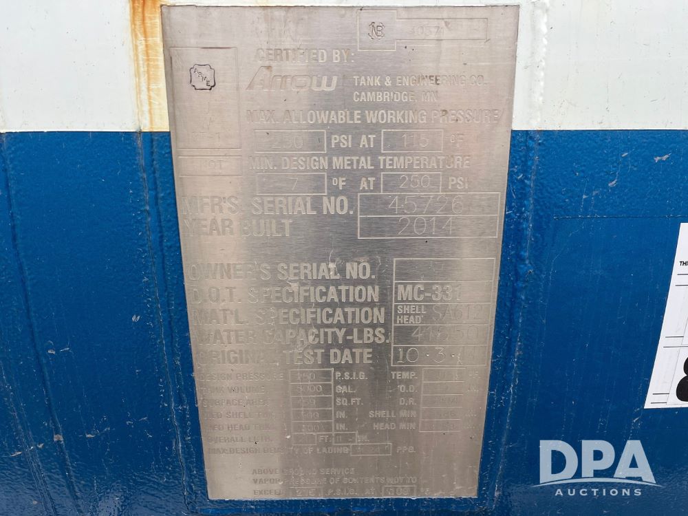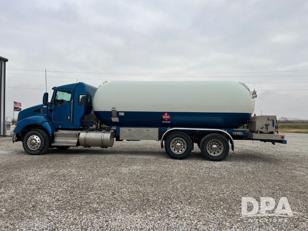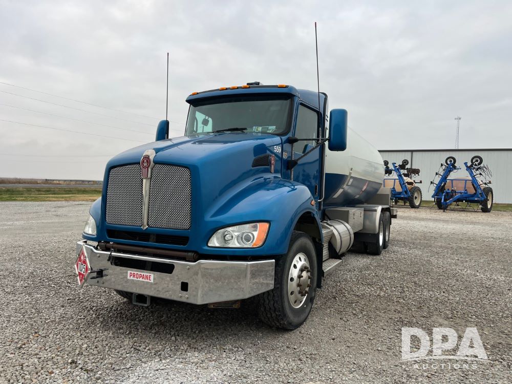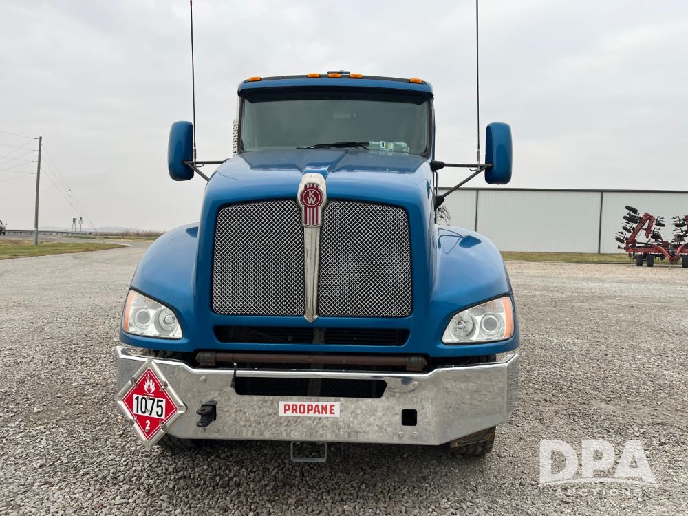 2015 Kenworth T440 LP Truck (JN3440, Unit 559), Paccar PX-9 diesel engine, Allison 4000 Series automatic transmission, air conditioning, heat, Am/Fm CD radio, cruise control, engine brake, power windows & locks, tandem axle, full screw, air ride suspension, 16,000 lb front axle, 40,000 lb rear axles, 2014 Arrow 5,000 gallon LP tank, National Board #40571, S/N 45726, Shell THK. .500", Head THK. .300", O.D. 80", D.R. HEMI, Master tank volume gauge, LectroCount LCR-II meter, electric hose reel with 150' hose, spring return vapor reel, dual reload ports, tank pumpout plumbing, Base remote shutdown, 315/80R22.5 front tires, aluminum rims, 11R22.5 rear tires, aluminum rims, shows 234,326 miles, 13,532 hours.