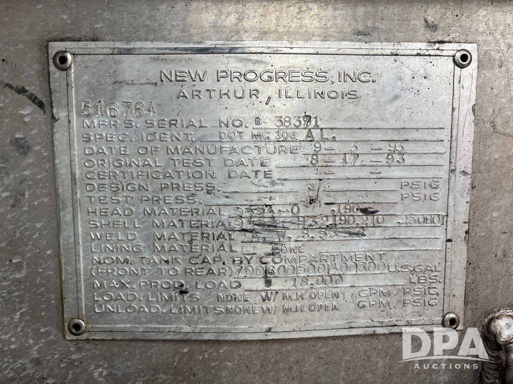 1993 New Progress Petroleum Body (JN3442), 1993 New Progress 2500 gallon 5 compartment (700-600-500-400-300), aluminum petroleum body, S/N 38371, 2 - LectroCount LCR-II meters, 2 - electric hose reels with hose.