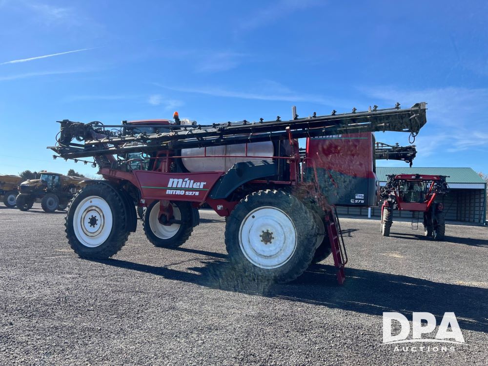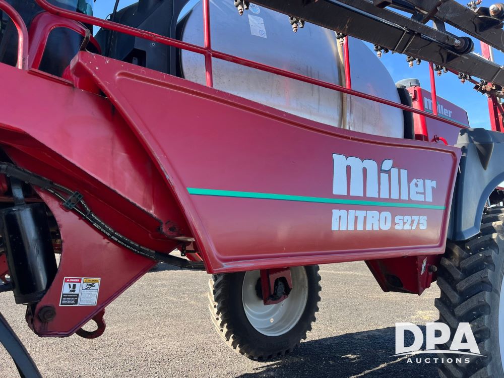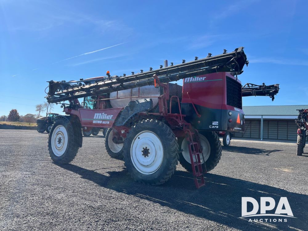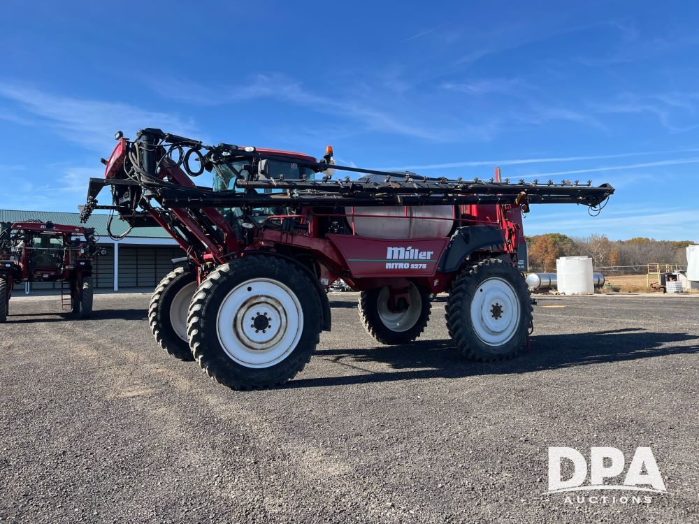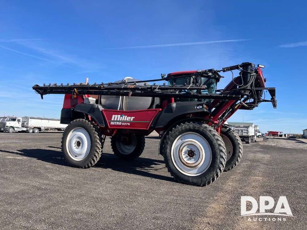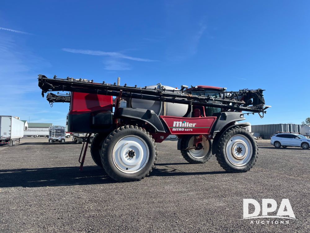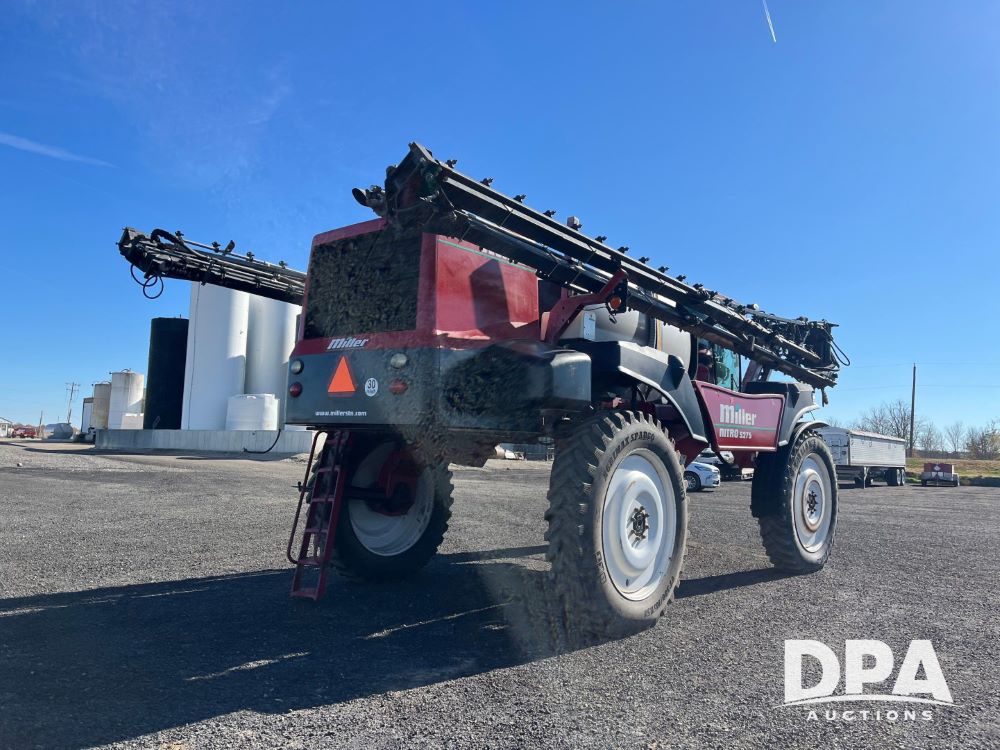 2014 Miller Nitro 5275 Sprayer (NP6219), Cummins 275 hp diesel engine, hydrostatic transmission, heat, air conditioning, Delphi AM/FM radio, buddy seat, 1,600 gallon stainless steel liquid system, 120 foot boom, 3 way nozzle bodies, reversible fan, chemical inductor, Michelin 380/90R46 tires, Raven Viper 4 monitor, shows 3,618 hours.