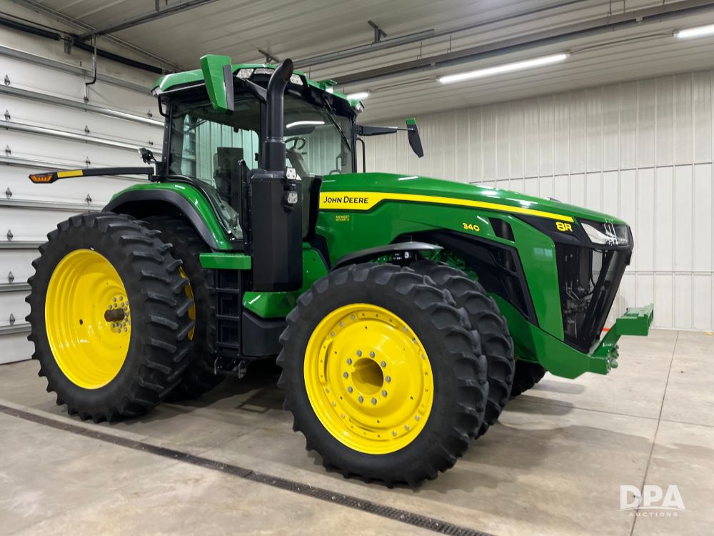 2022 John Deere 8r340 Tractor (JN3505), John Deere turbocharged diesel engine, IVT transmission, ILS front suspension, 5 hydraulics, signature package, leather seats, 3 point with quick hitch, 1000 PTO, 480/85R34 front duals, 480/80R50 rear duals, shows 1098 hours.