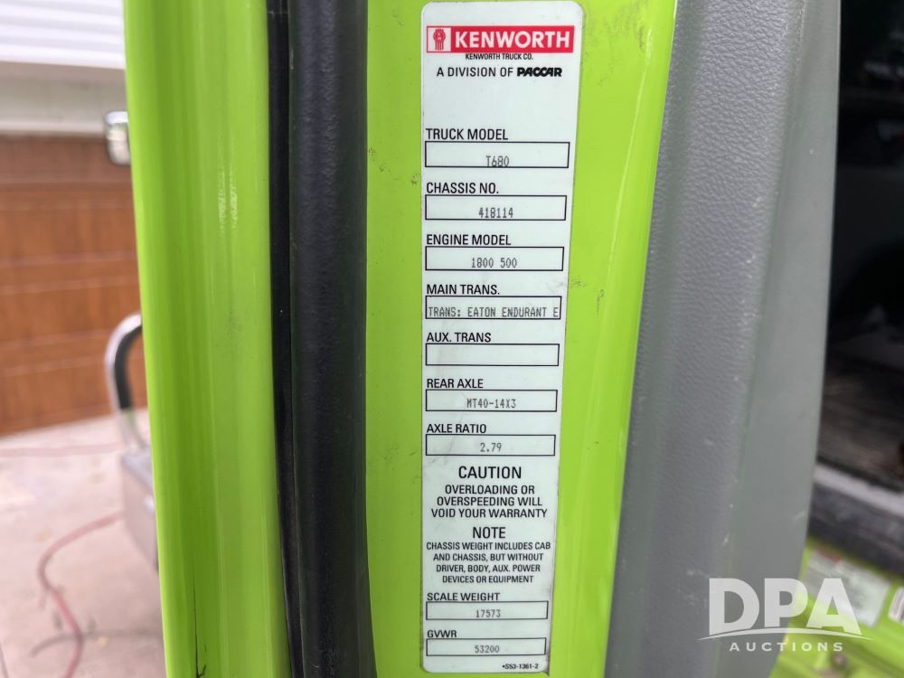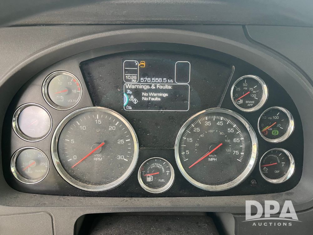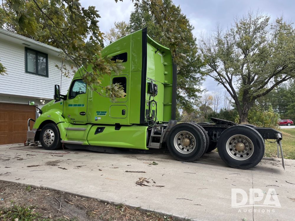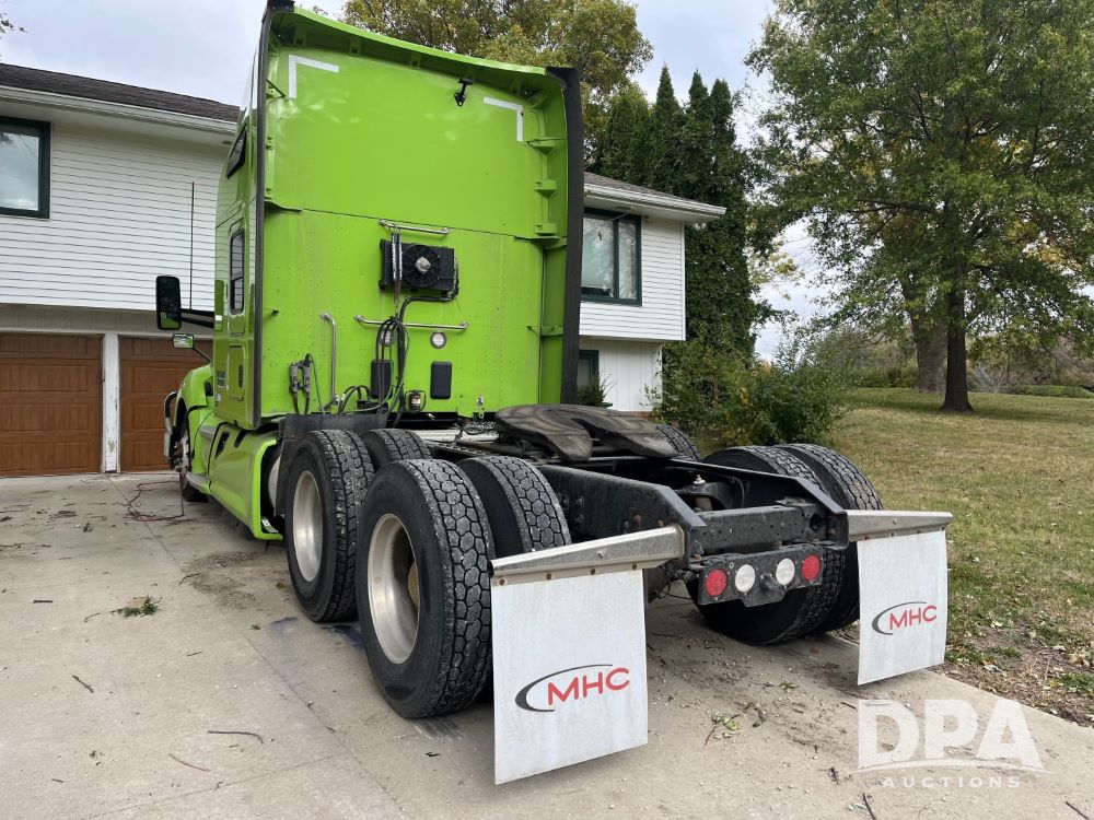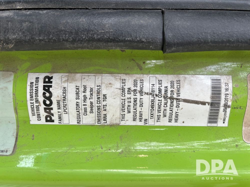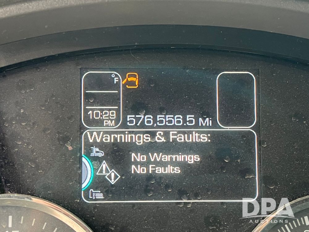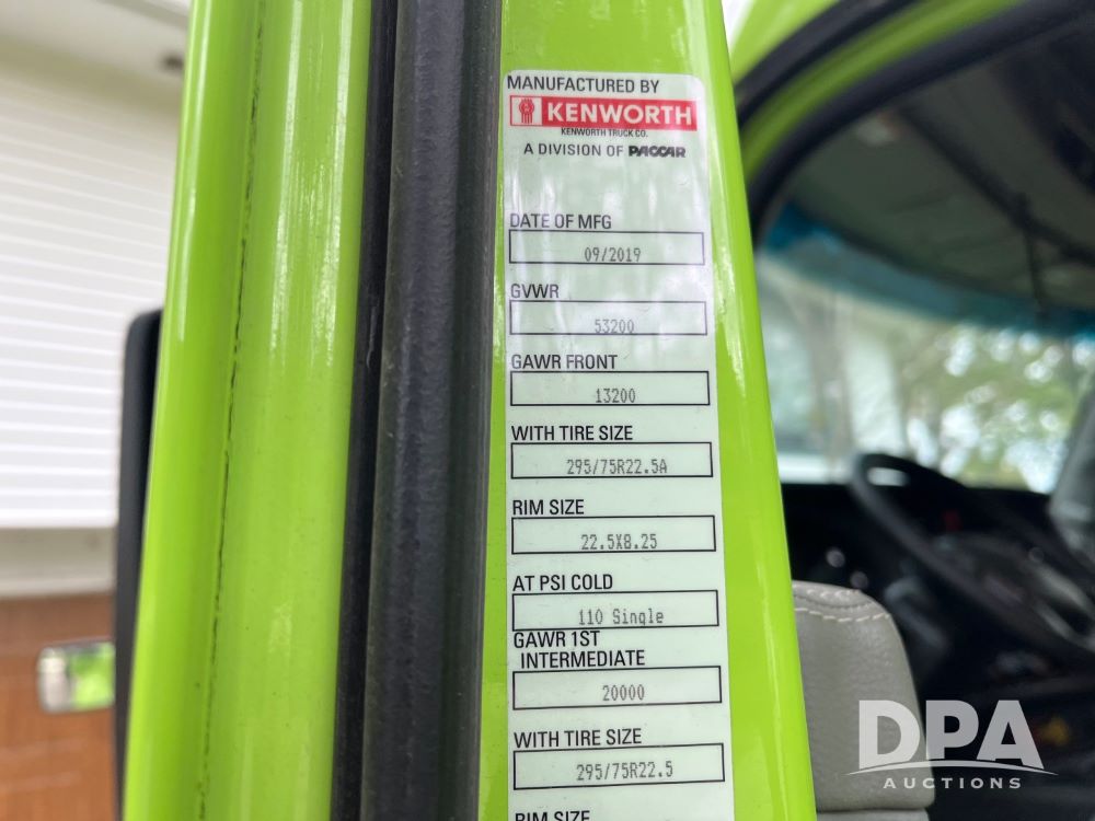 2020 Kenworth T680 (JN3261), Cummins engine, automatic transmission, heat, air conditioning, upgraded Kenworth radio, APU, 295/75R22.5 tires, shows 576,556 miles.