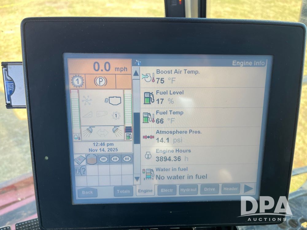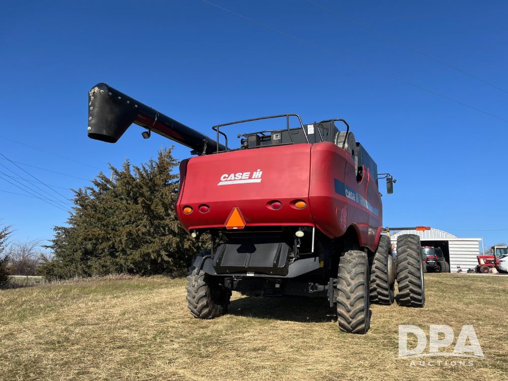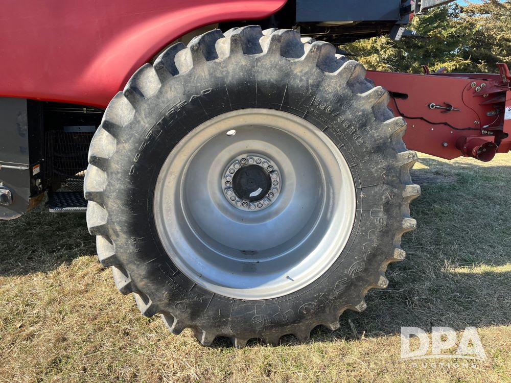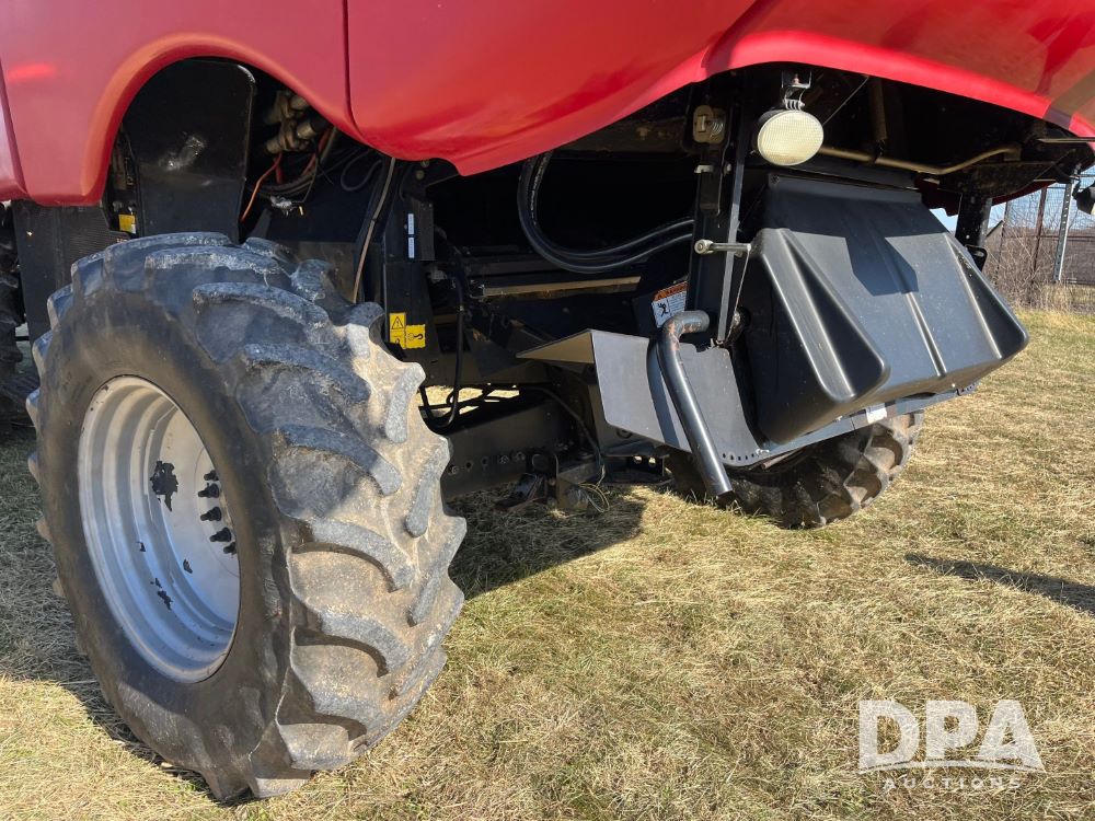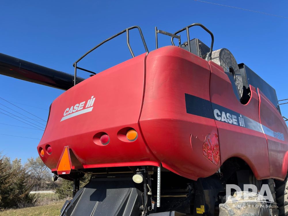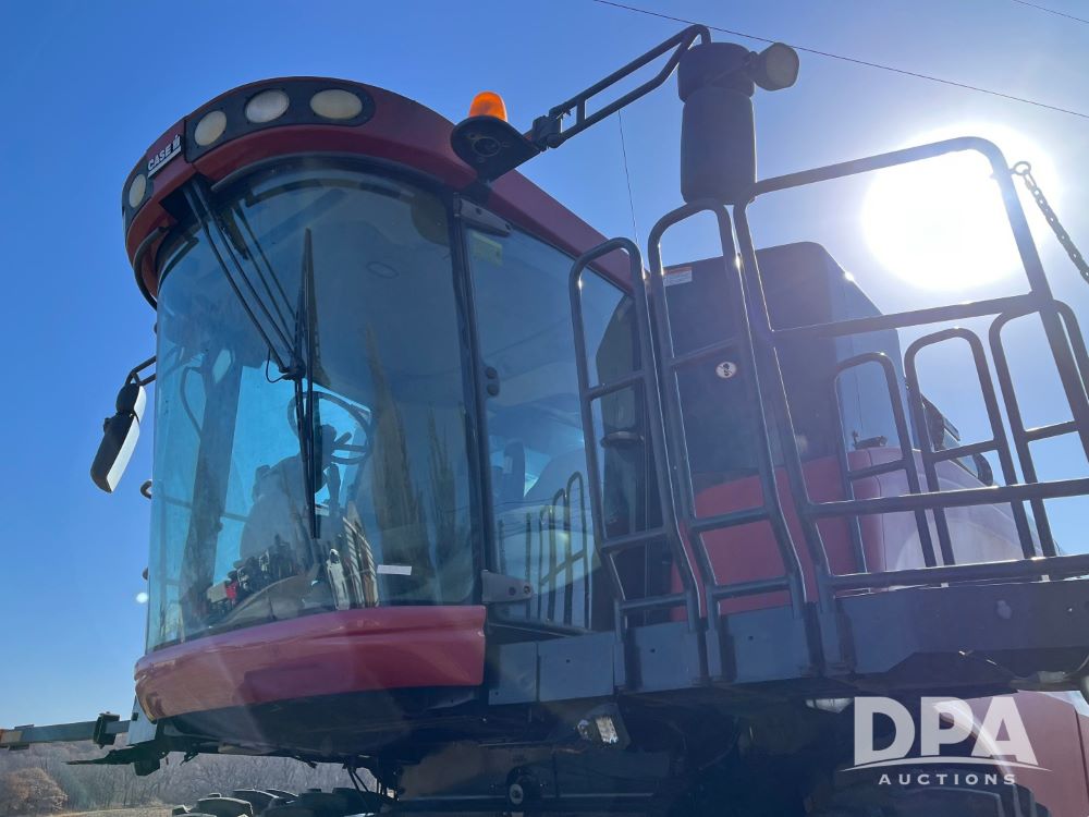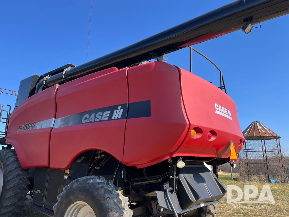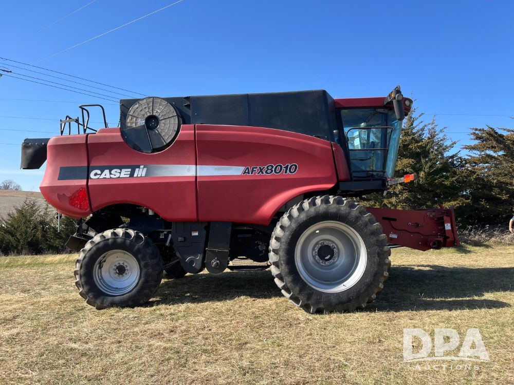 2004 Case IH AFX8010 Combine (JN3404), 10.3 Iveco engine, 400HP, Ag Leader yield and mapping monitor, rock trap, lateral tilt, rotor separator, chopper/spreader, fold down hopper, 330 bushel grain tank, 20.8R42 duals on drive axle, header cart tow hitch, shows 3,894 engine hours and 2,658 thresh hours.