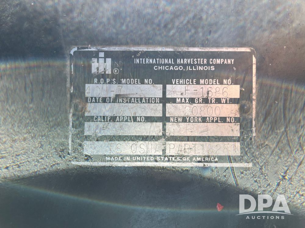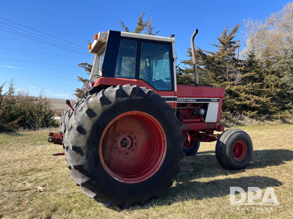 1980 IH 1586 Tractor (JN3412), diesel engine, 140HP, 2WD, 3 point hitch, 2 remotes, heat, ac, 20.8/38 rear duals, shows 8,768 hrs.