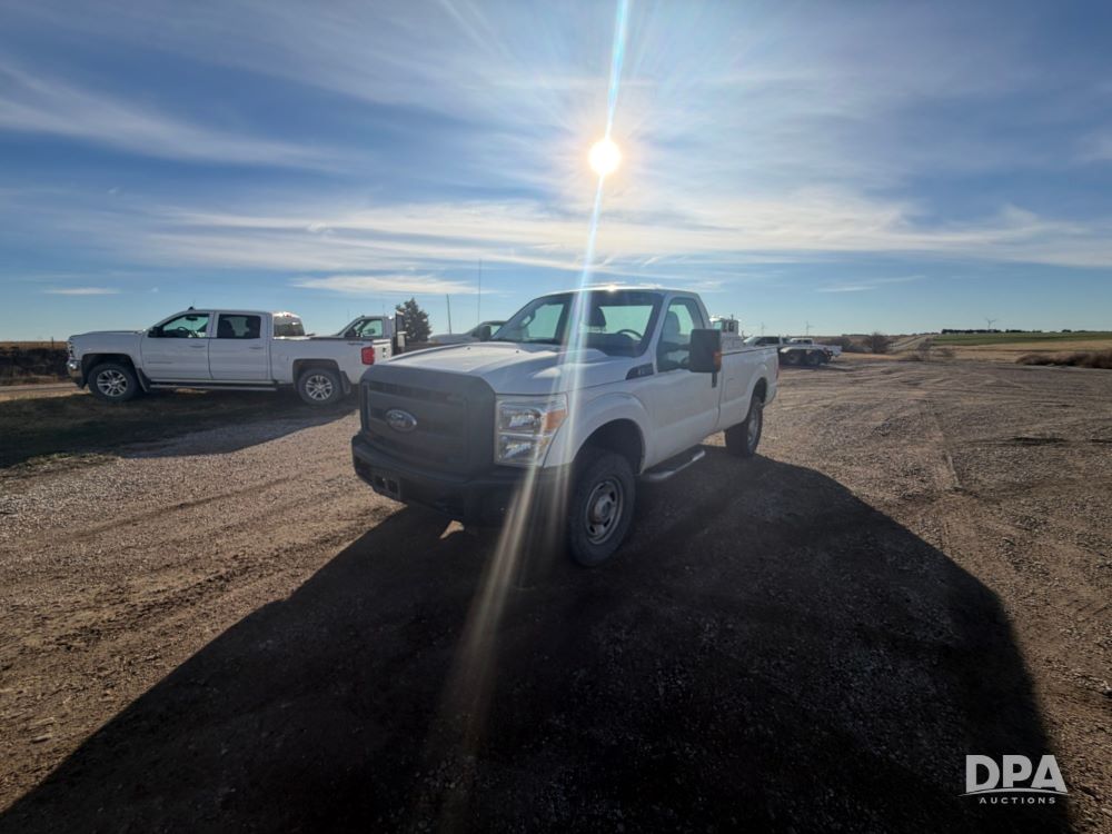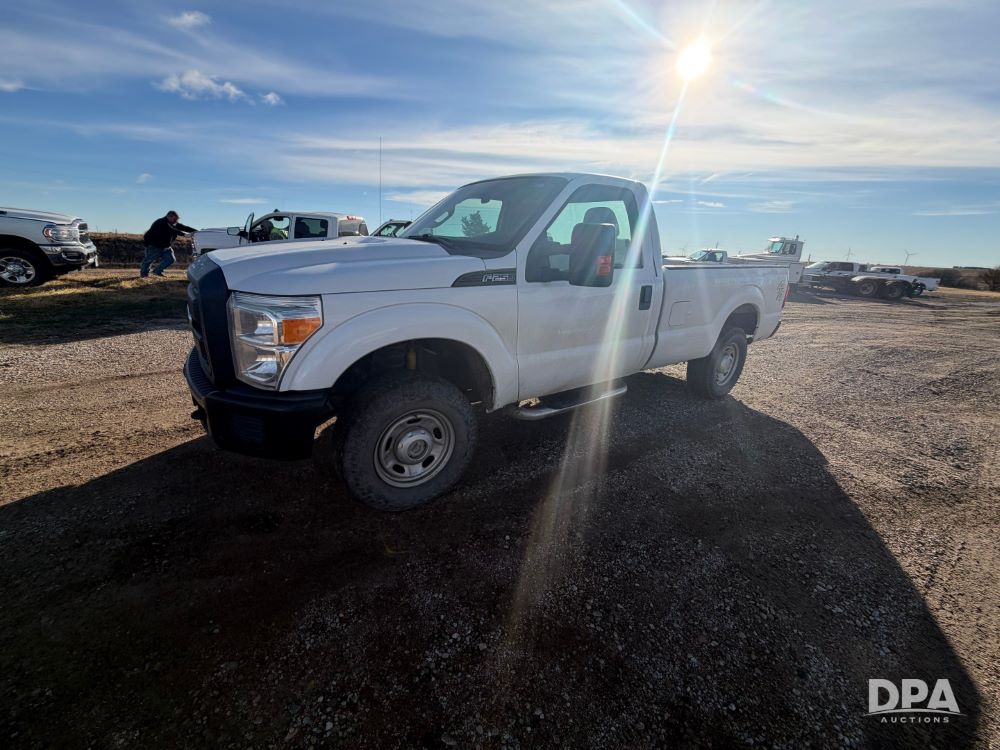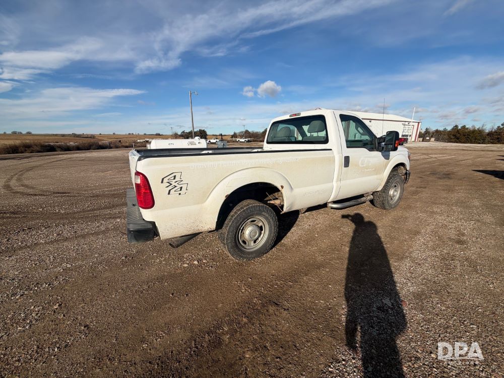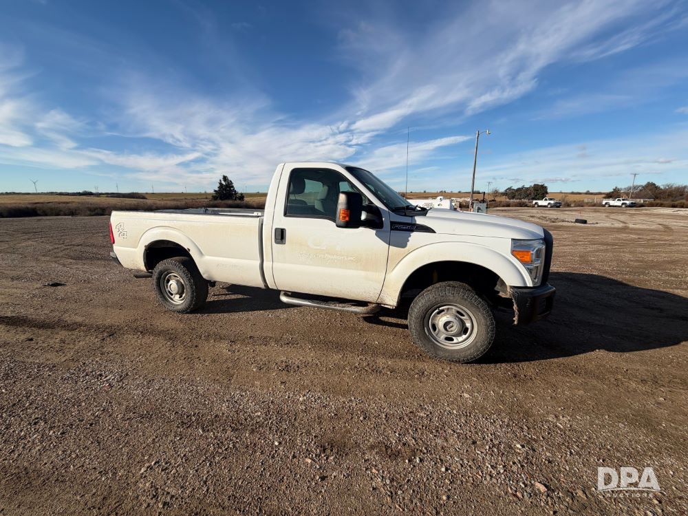 2013 Ford F-250 Super Duty Pickup (RR0571, Unit AC7), 6.2L gas Flex fuel, 4X4 with lockouts, regular cab, automatic transmission, long box, electric windows and locks, cruise, AM/FM radio, cloth interior, B&W Gooseneck 5th wheel, tow hooks, chrome running boards, LT255/70R17 tires.