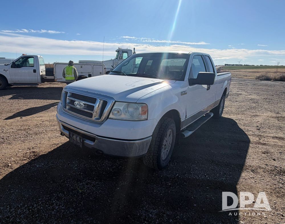 2008 Ford F-150 Crew Cab Pickup (RR0583, Unit S06), 5.4L Triton gas Flex fuel engine, electric windows and locks, receiver hitch, aluminum rims, overdrive option, cloth interior, AM/FM/CD/MP3 radio, AC, heat, cruise, trailer brake, chrome running boards, LT265/70R17 tires, shows 251,591 miles.