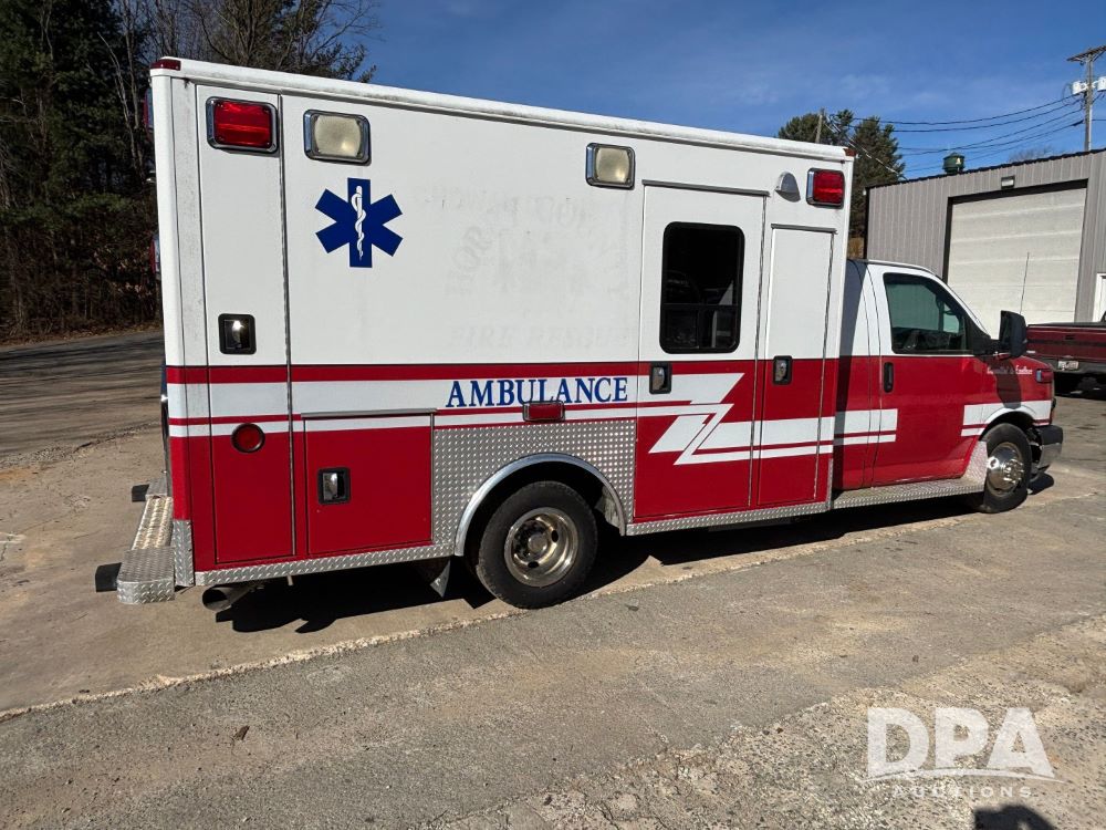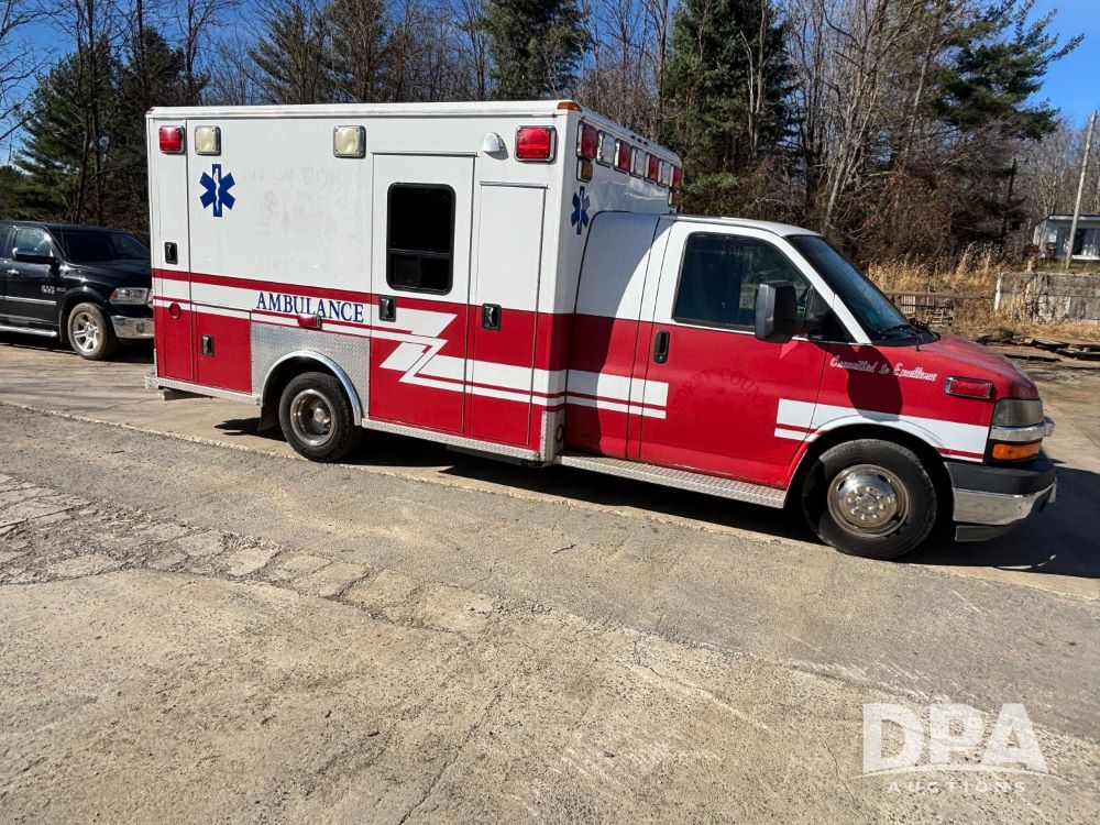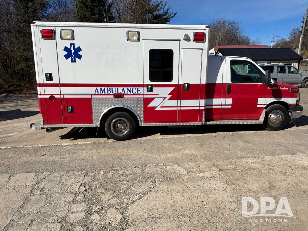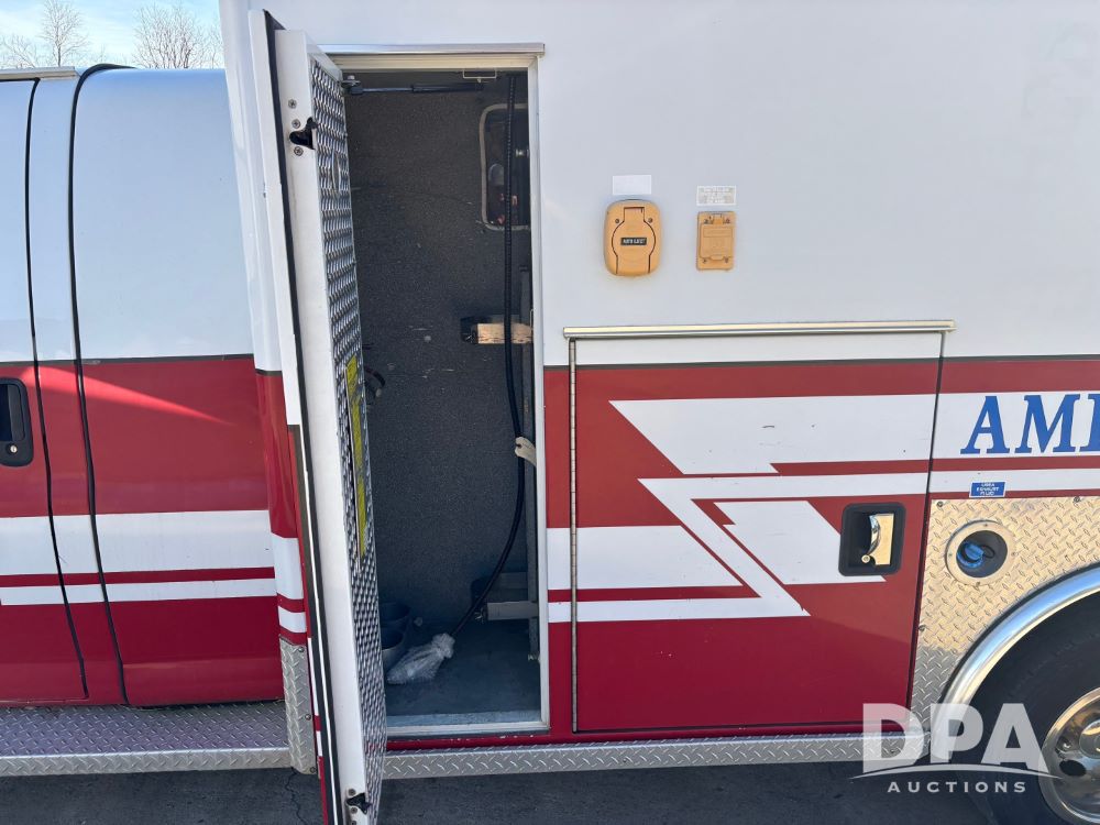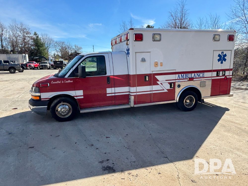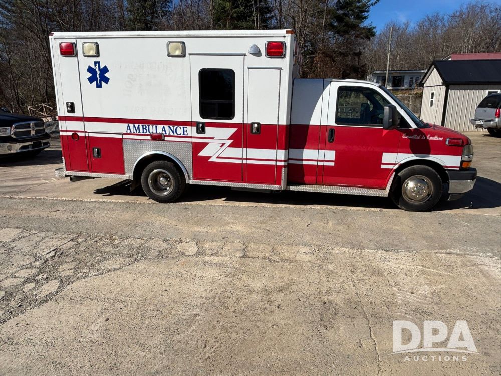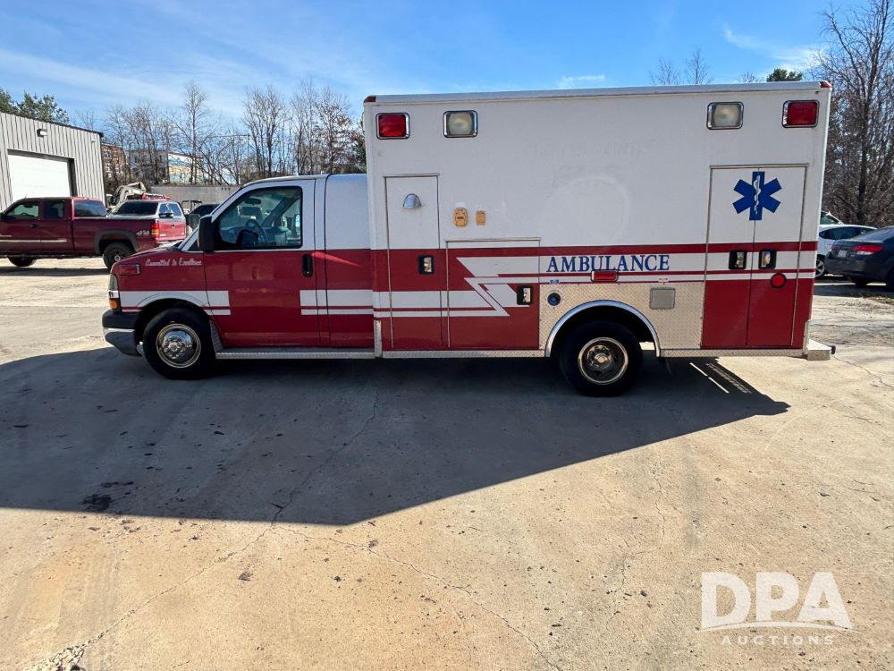 2014 Chevy G4500 Ambulance (GP12154), 6,6L Duramax diesel engine, 4 X 2, automatic transmission, towing capacity of 9200 pounds, Type III vehicle, LED emergency lighting, air conditioning, heat, specialized storage and seating, ample cabinet space, large compartments for equipment storage, shows 218,843 miles.