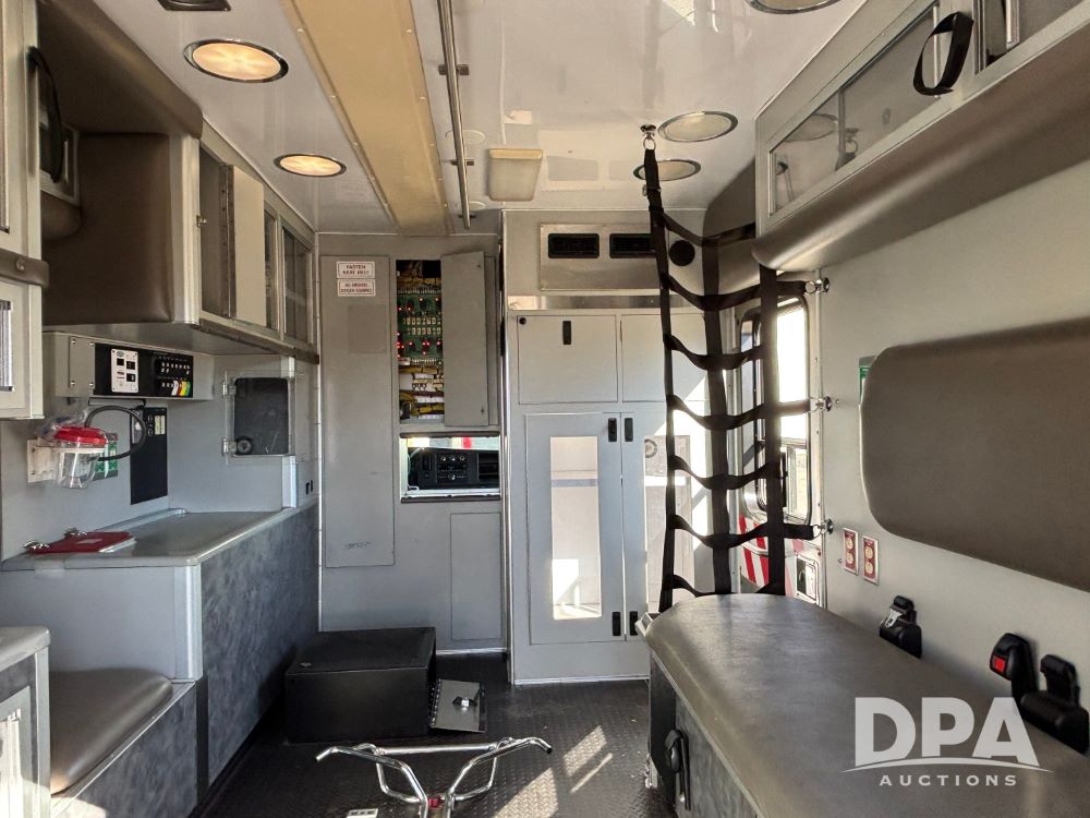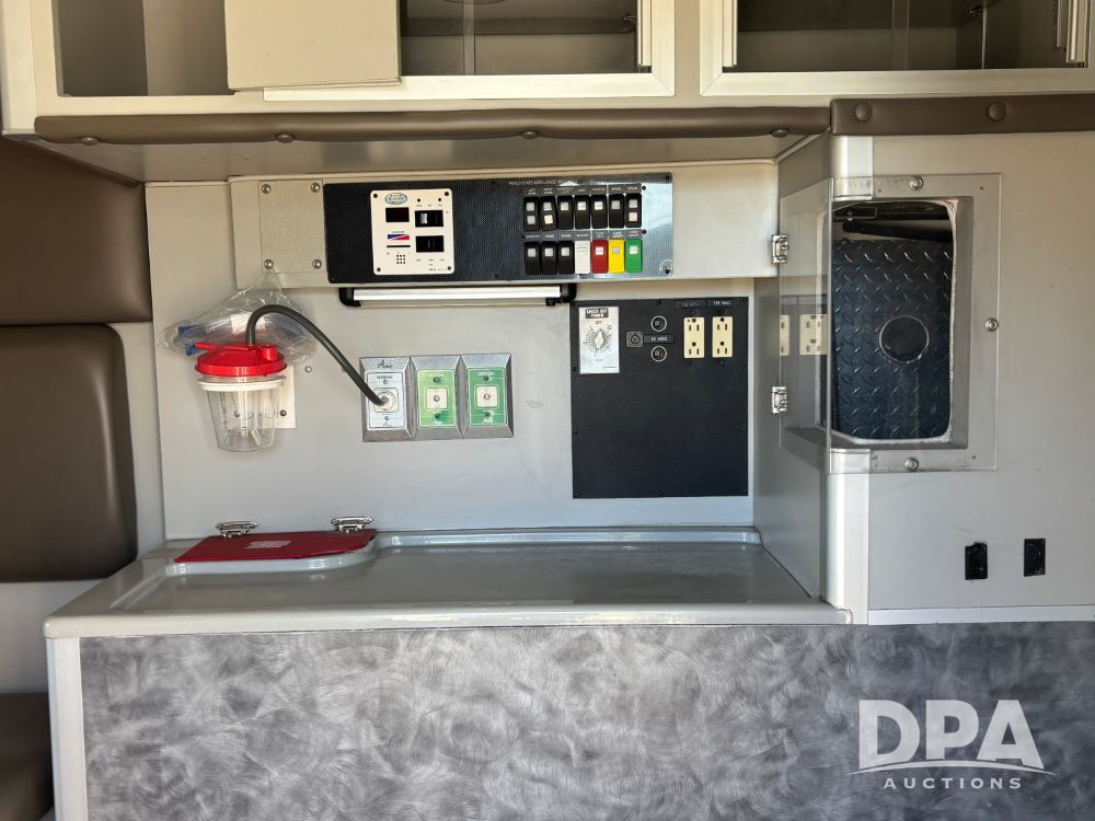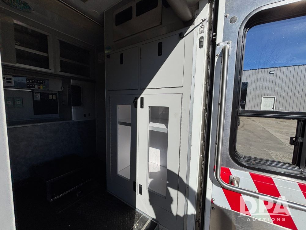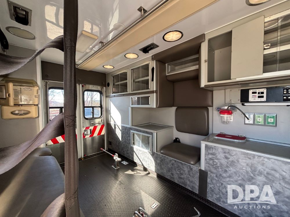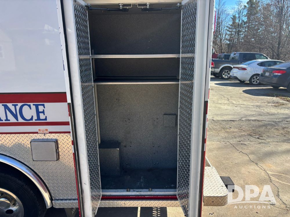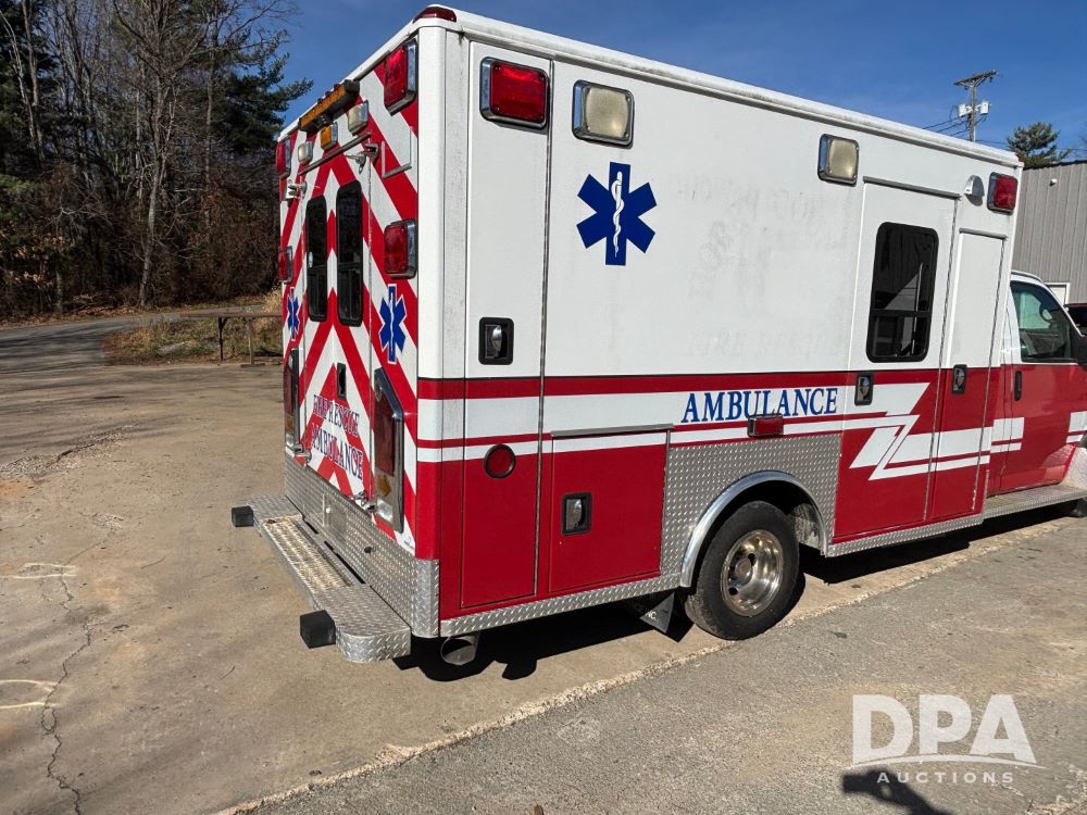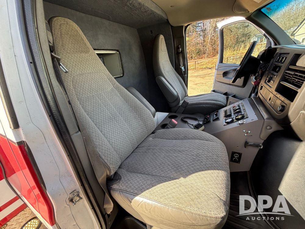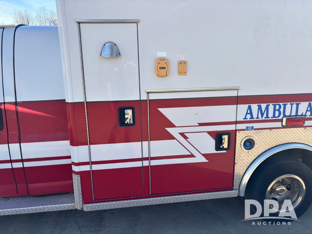 2014 Chevy G4500 Ambulance (GP12154), 6,6L Duramax diesel engine, 4 X 2, automatic transmission, towing capacity of 9200 pounds, Type III vehicle, LED emergency lighting, air conditioning, heat, specialized storage and seating, ample cabinet space, large compartments for equipment storage, shows 218,843 miles.