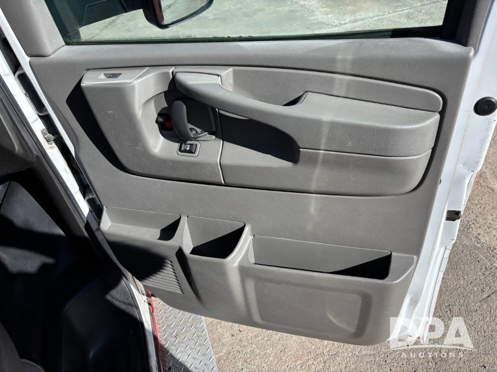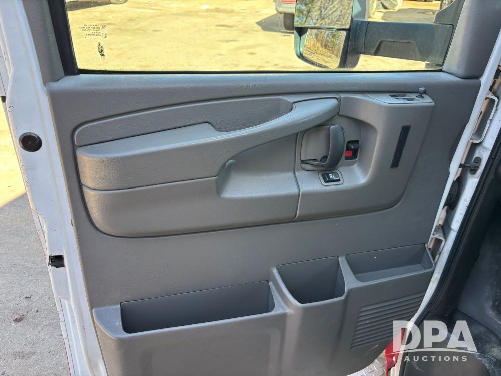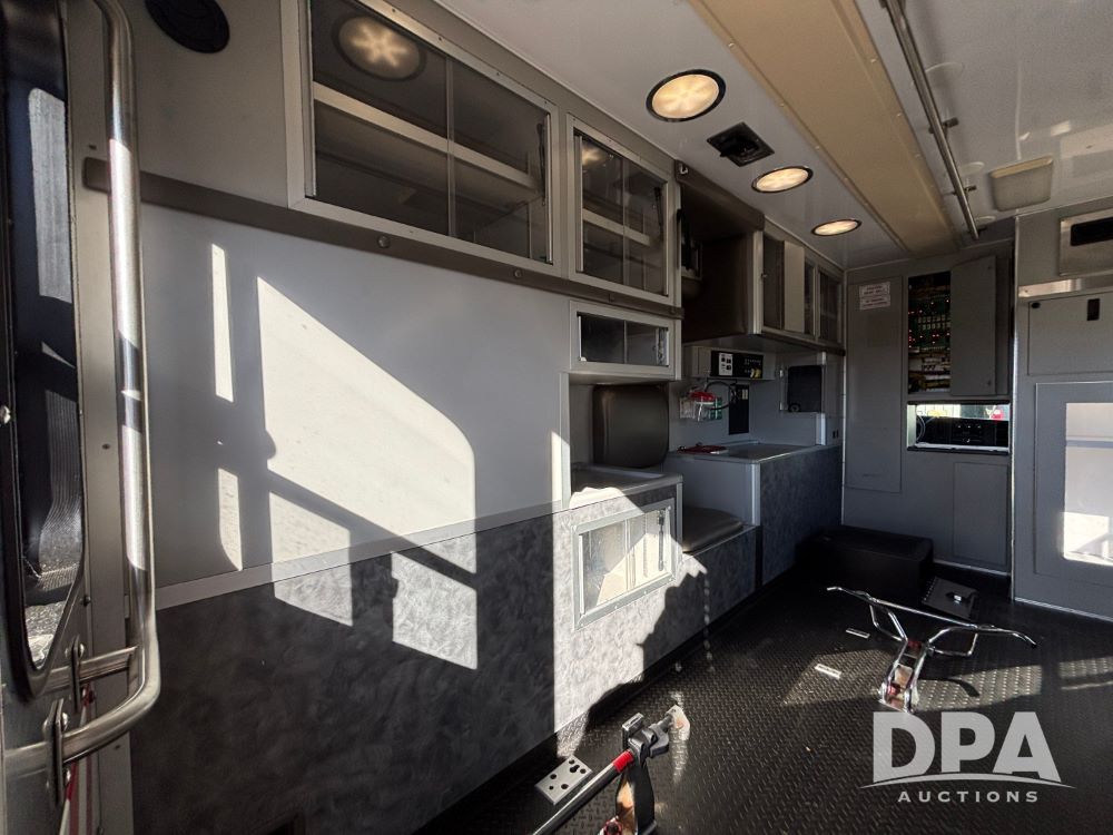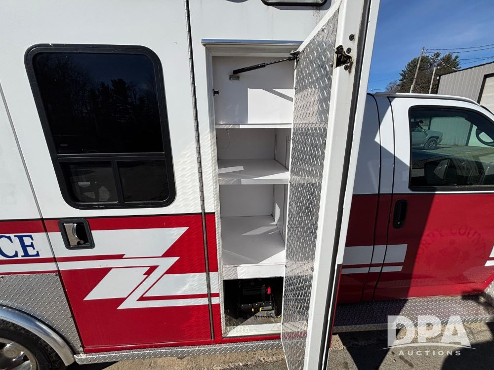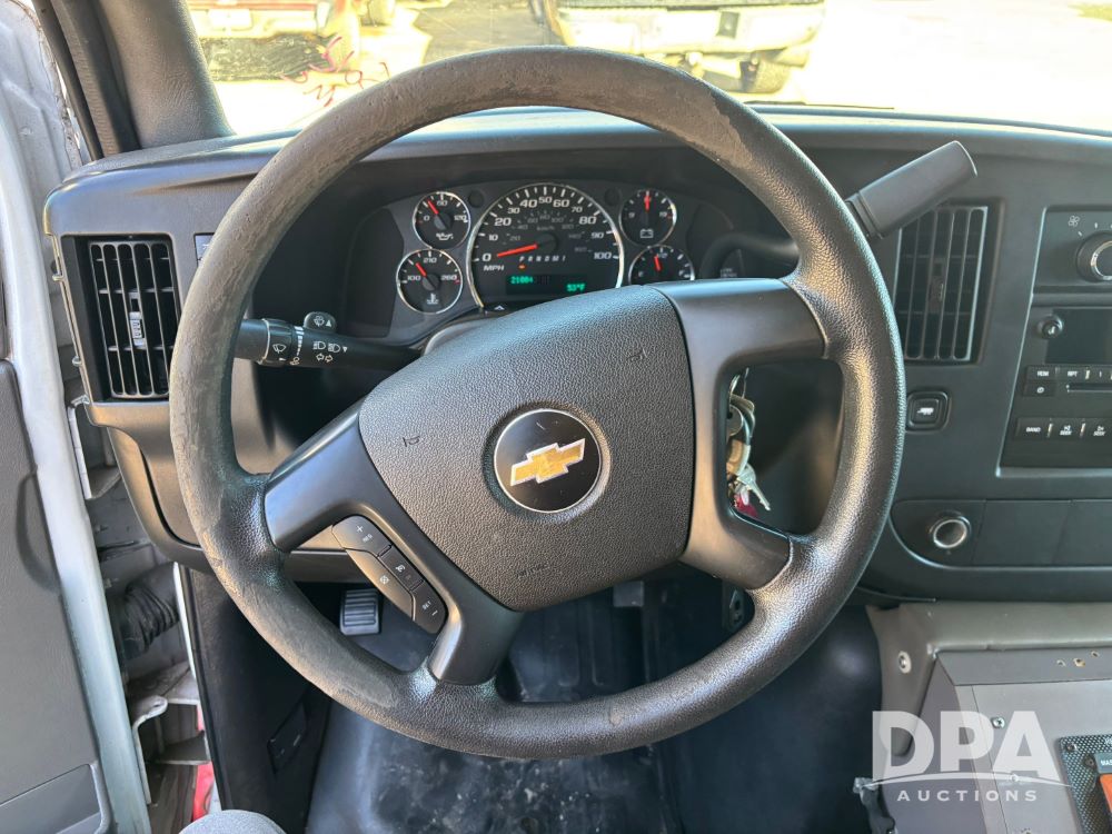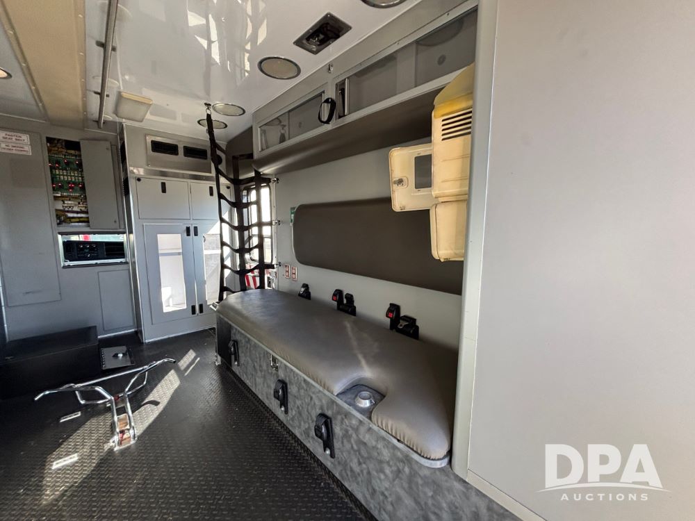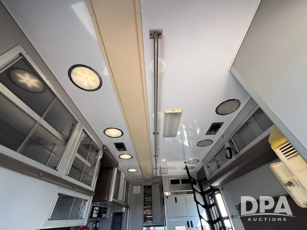 2014 Chevy G4500 Ambulance (GP12154), 6,6L Duramax diesel engine, 4 X 2, automatic transmission, towing capacity of 9200 pounds, Type III vehicle, LED emergency lighting, air conditioning, heat, specialized storage and seating, ample cabinet space, large compartments for equipment storage, shows 218,843 miles.