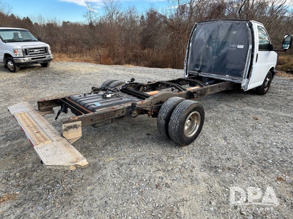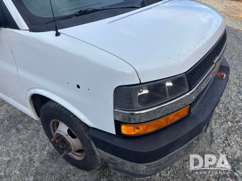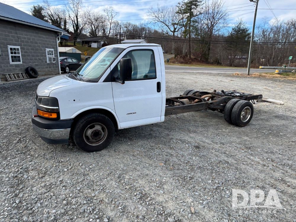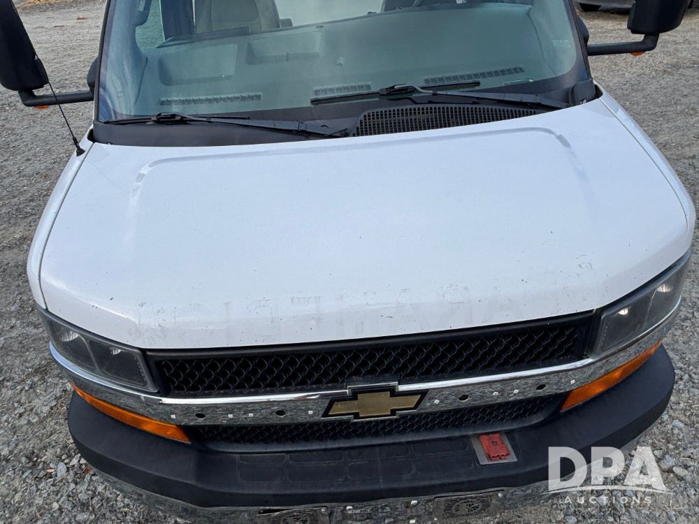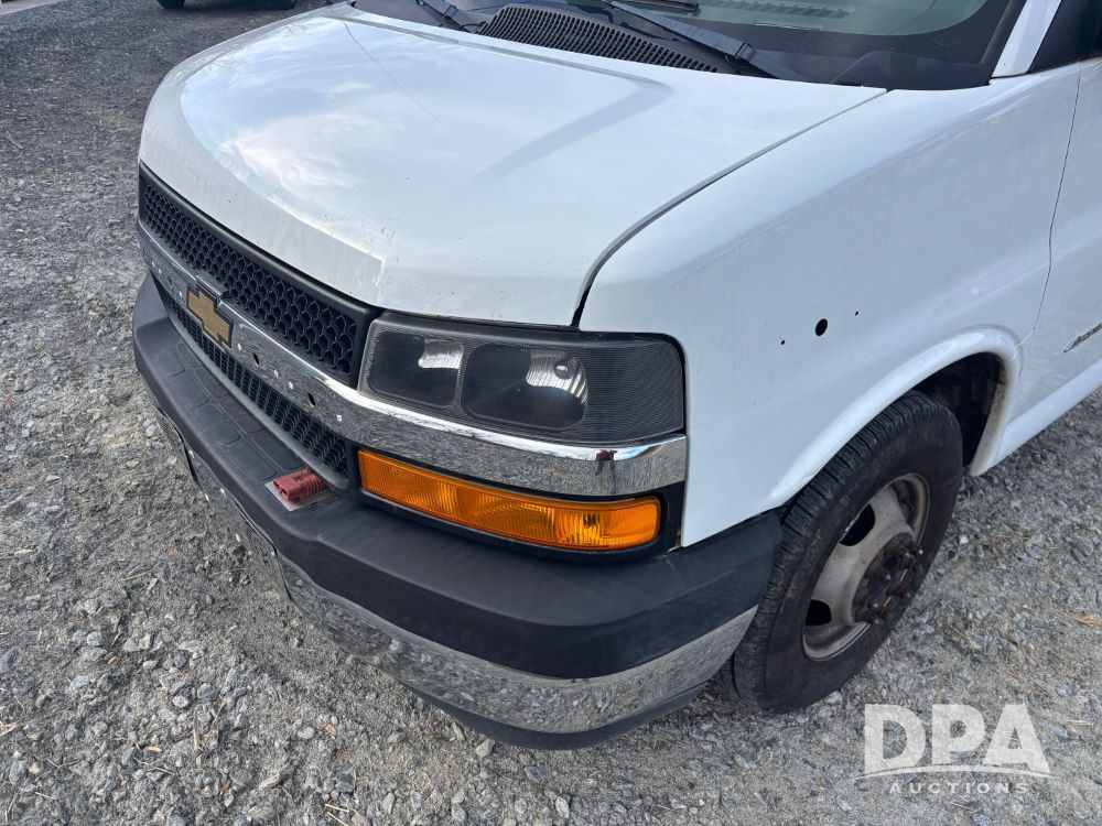 2018 Chevy 4500 Chassis (GP12132), Vortec 6.0L V8 engine, automatic transmission, air conditioning, heat, am/FM radio, shows 309,833 miles.